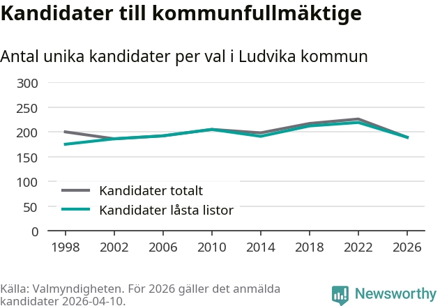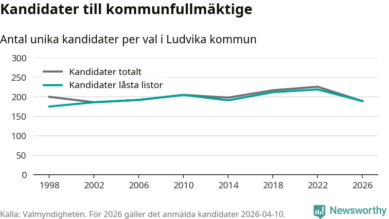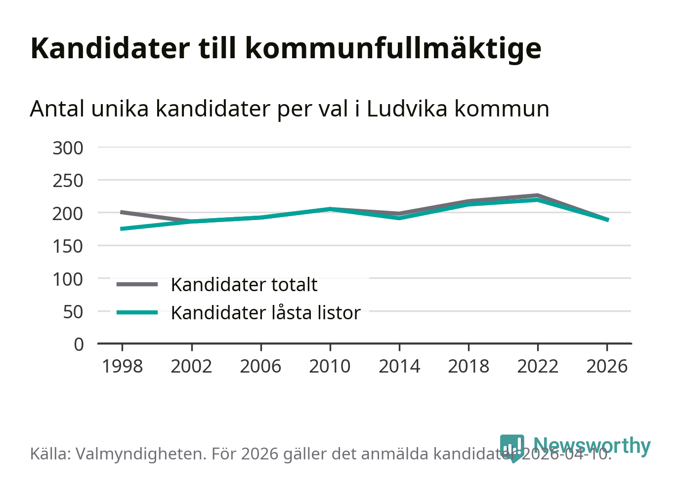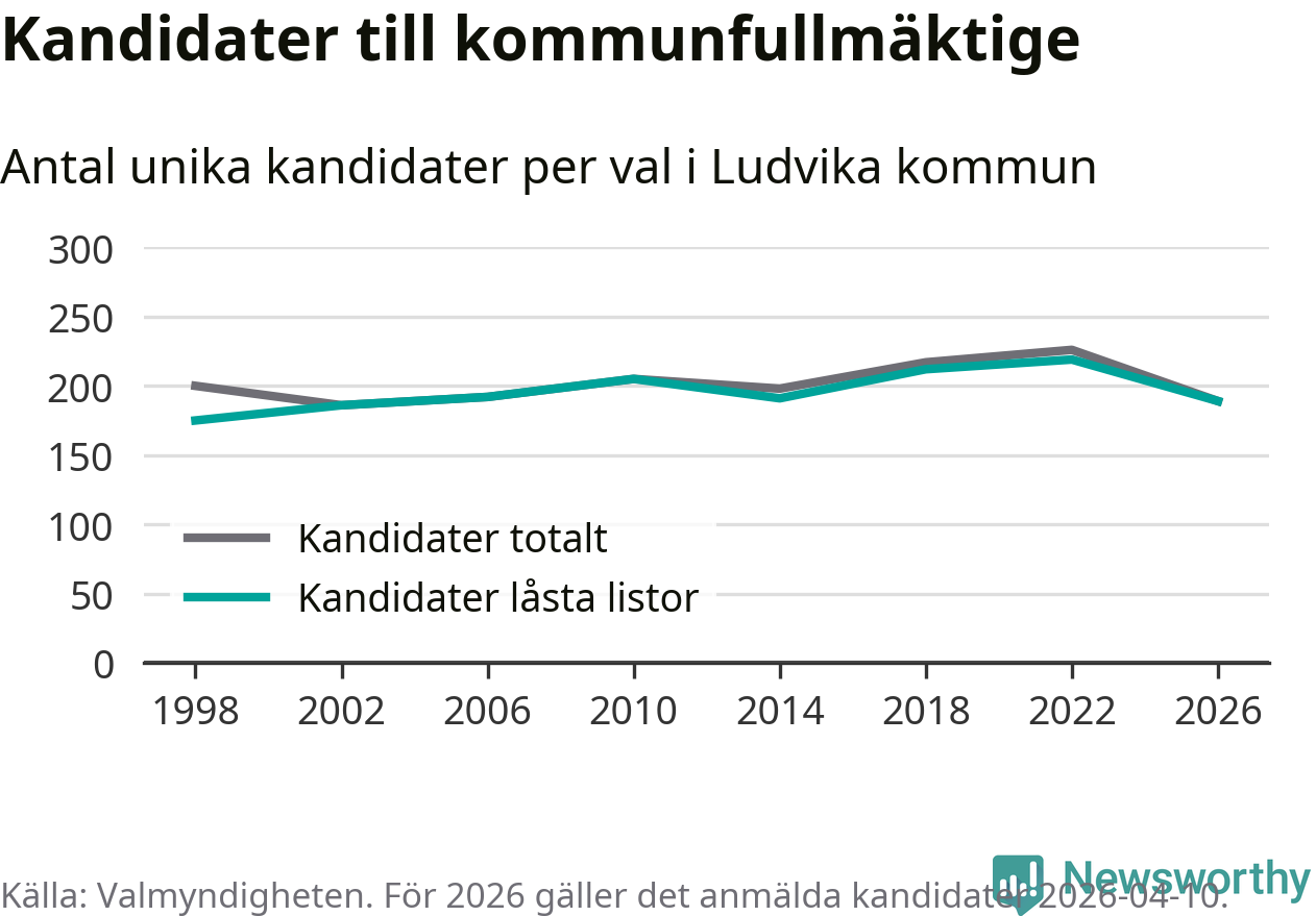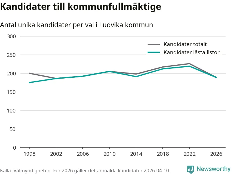 På torsdagen var det deadline för partier med låsta listor att registrera sina kandidater inför höstens val. Till valet till kommunfullmäktige i Ludvika är 189 kandidater anmälda på sådana listor, vilket är 30 färre än i valet 2022.