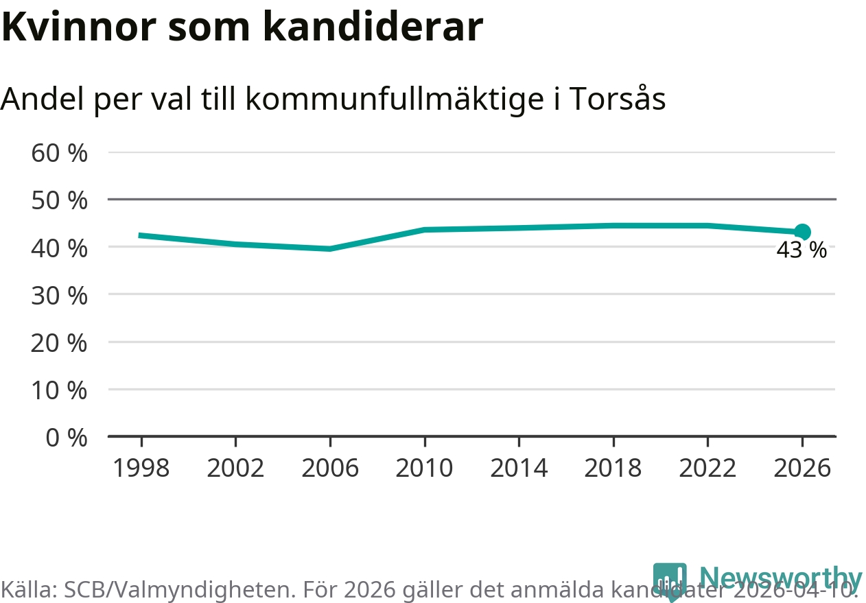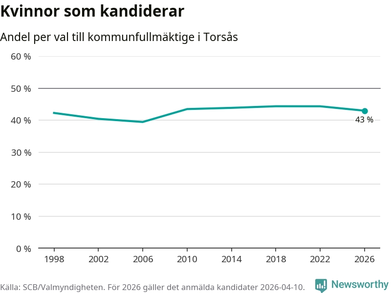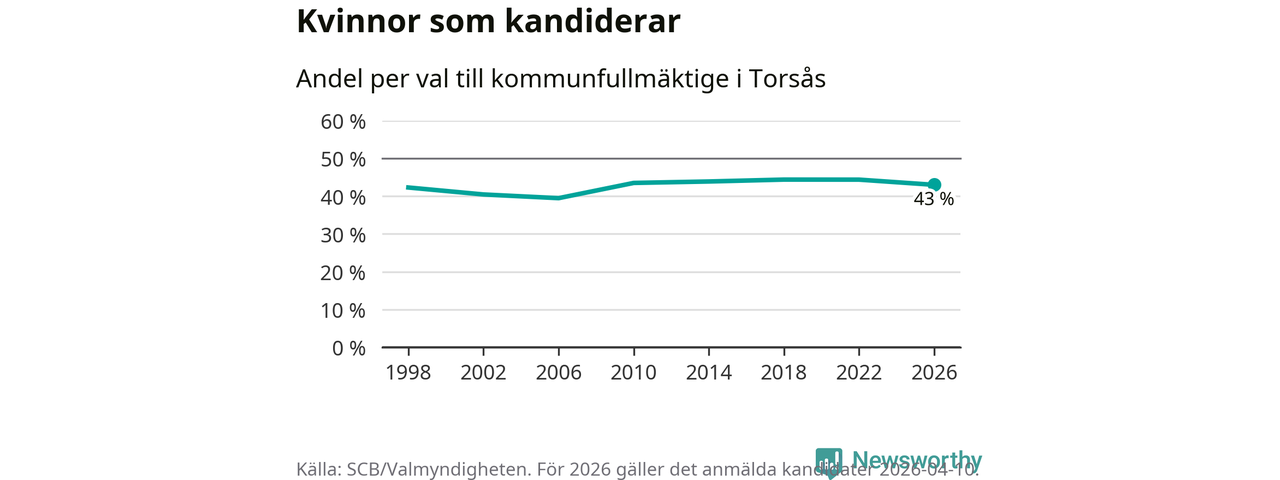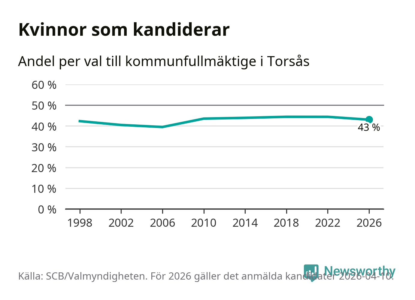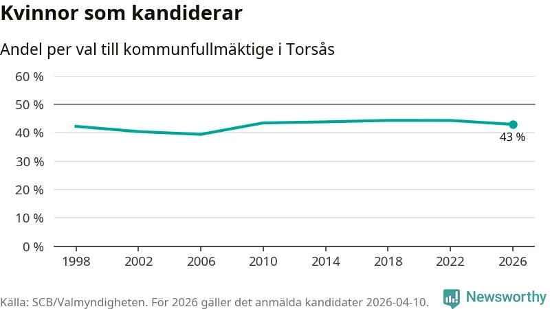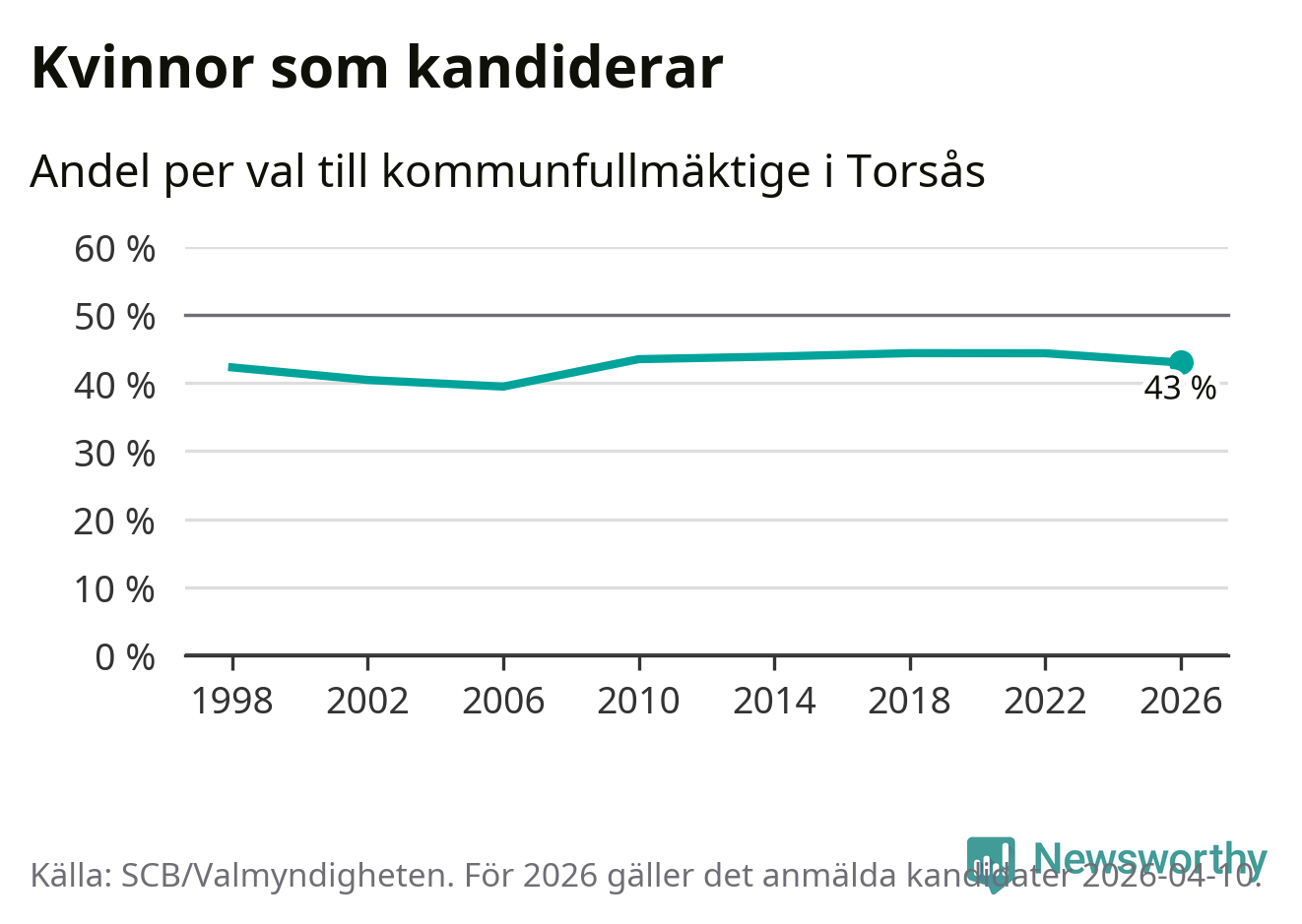 På torsdagen var det deadline för partier med låsta listor att registrera sina kandidater inför höstens val. Till valet till kommunfullmäktige i Torsås är 121 kandidater anmälda på sådana listor, vilket är sju fler än i valet 2022. Det är den högsta siffran sedan åtminstone valet 1998, vilket är så långt tillbaka som vi har statistik för.