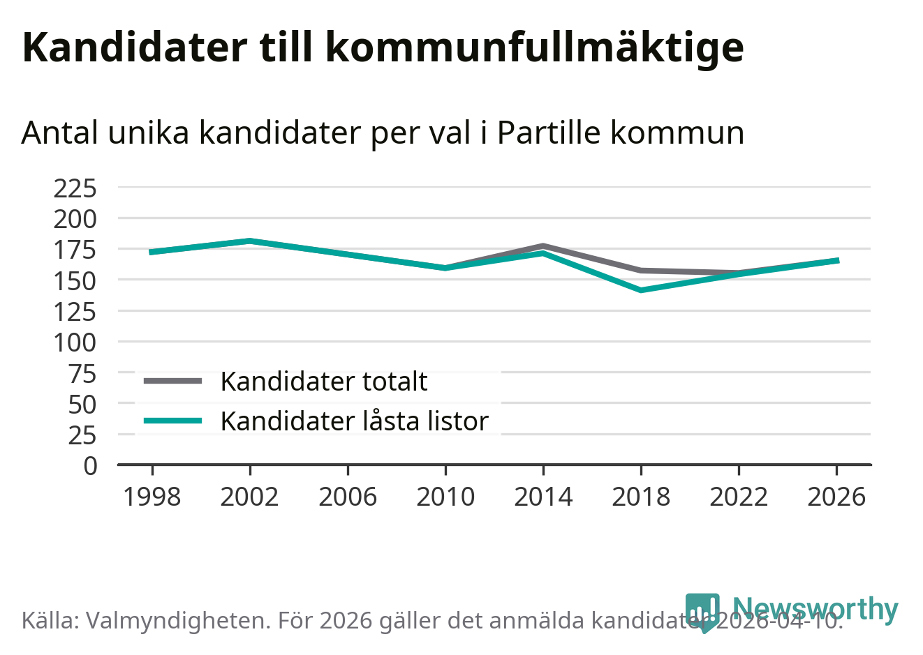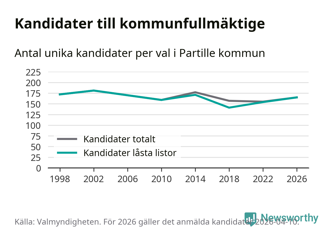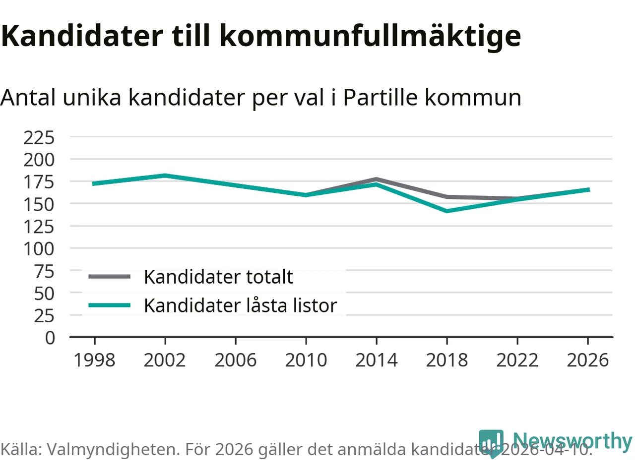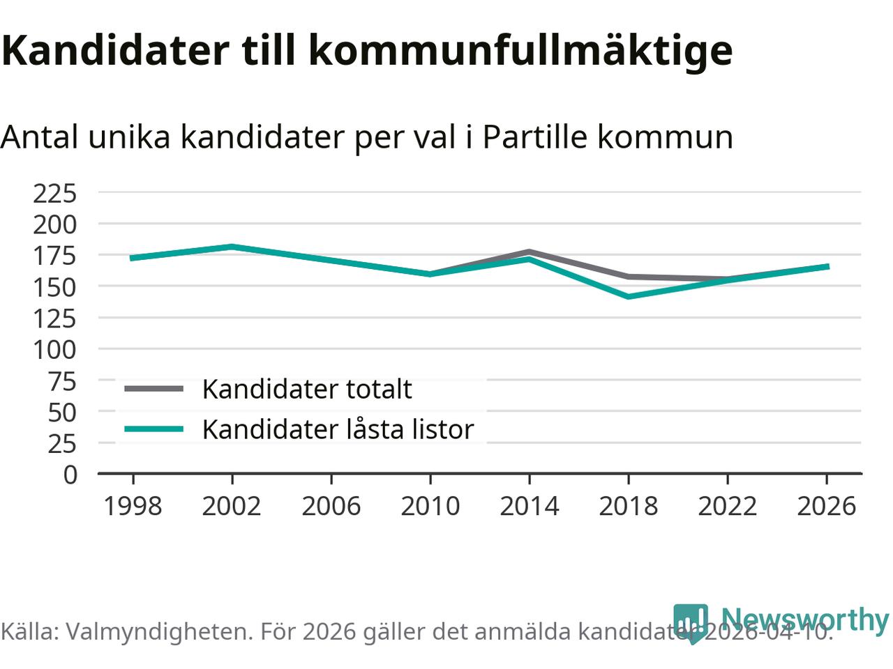 På torsdagen var det deadline för partier med låsta listor att registrera sina kandidater inför höstens val. Till valet till kommunfullmäktige i Partille är 165 kandidater anmälda på sådana listor, vilket är elva fler än i valet 2022.