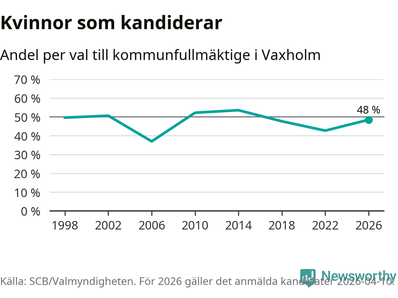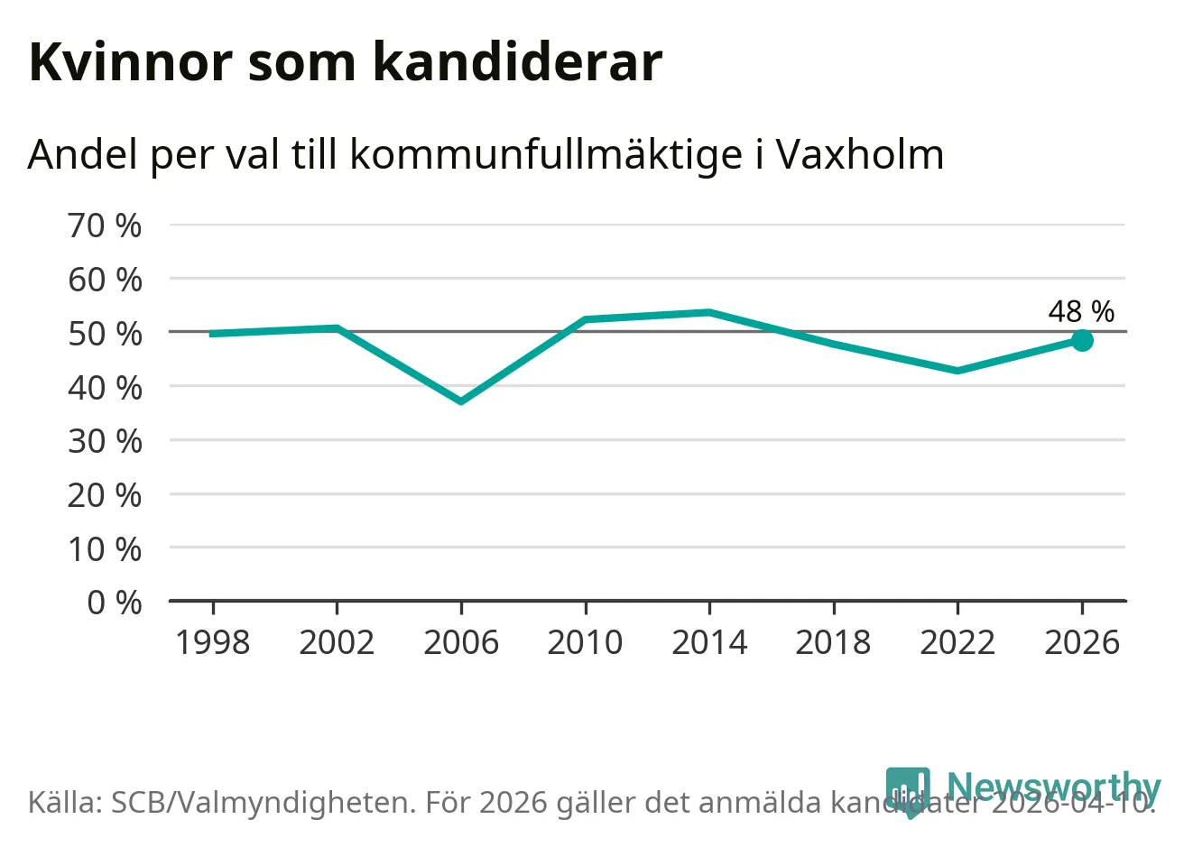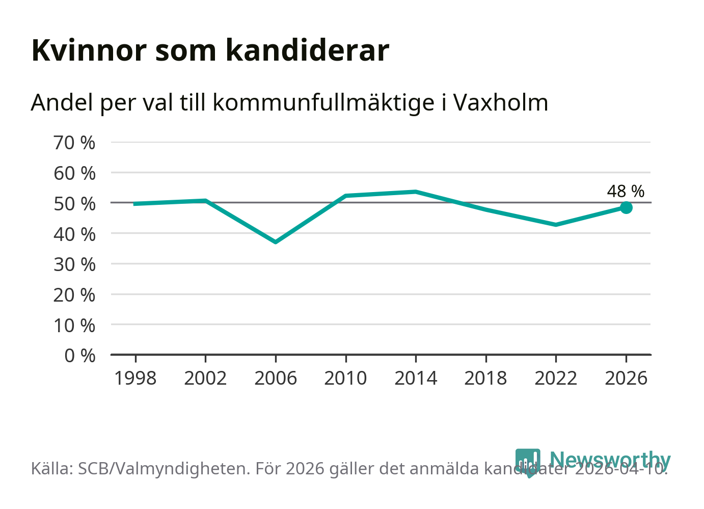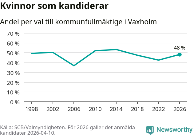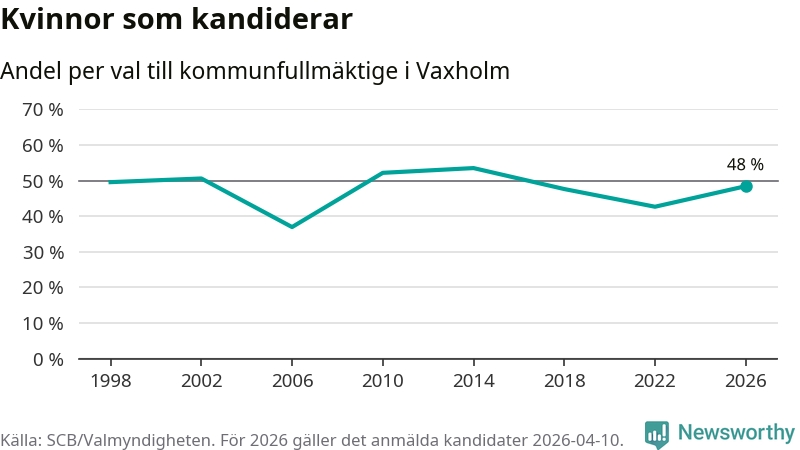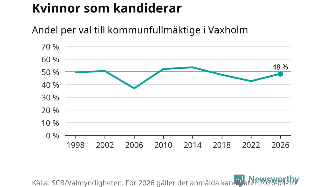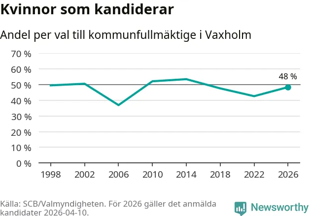 På torsdagen var det deadline för partier med låsta listor att registrera sina kandidater inför höstens val. Till valet till kommunfullmäktige i Vaxholm är 159 kandidater anmälda på sådana listor, vilket är 25 fler än i valet 2022. Det är den högsta siffran sedan åtminstone valet 1998, vilket är så långt tillbaka som vi har statistik för.