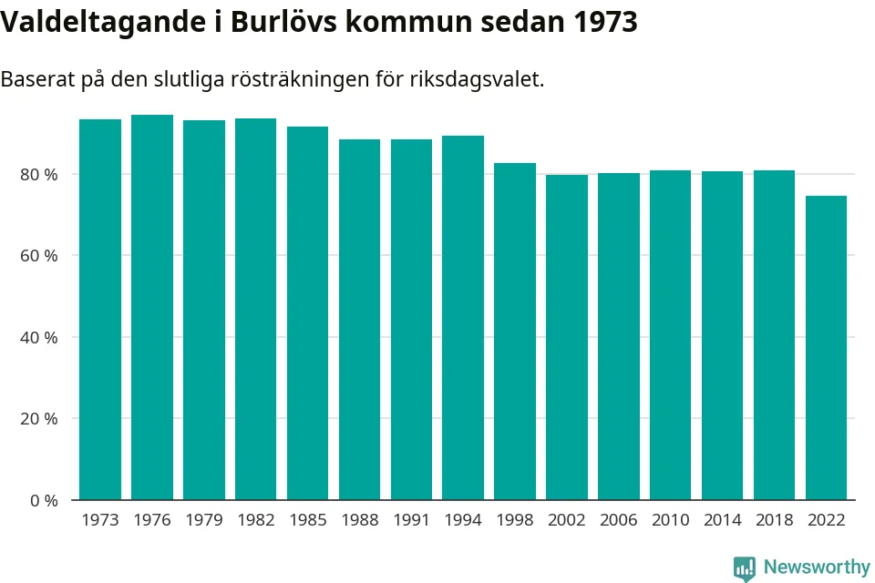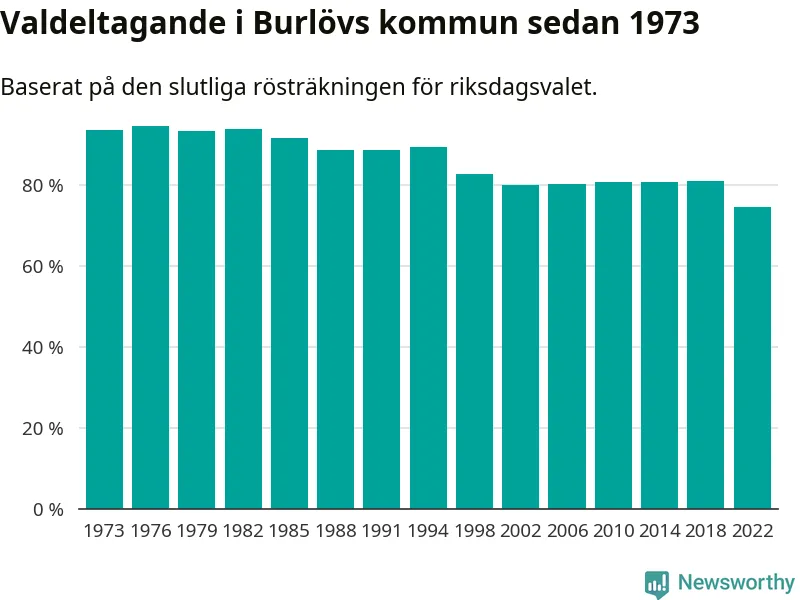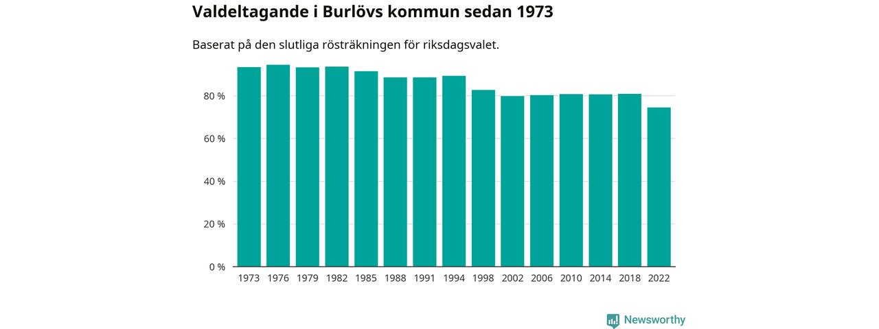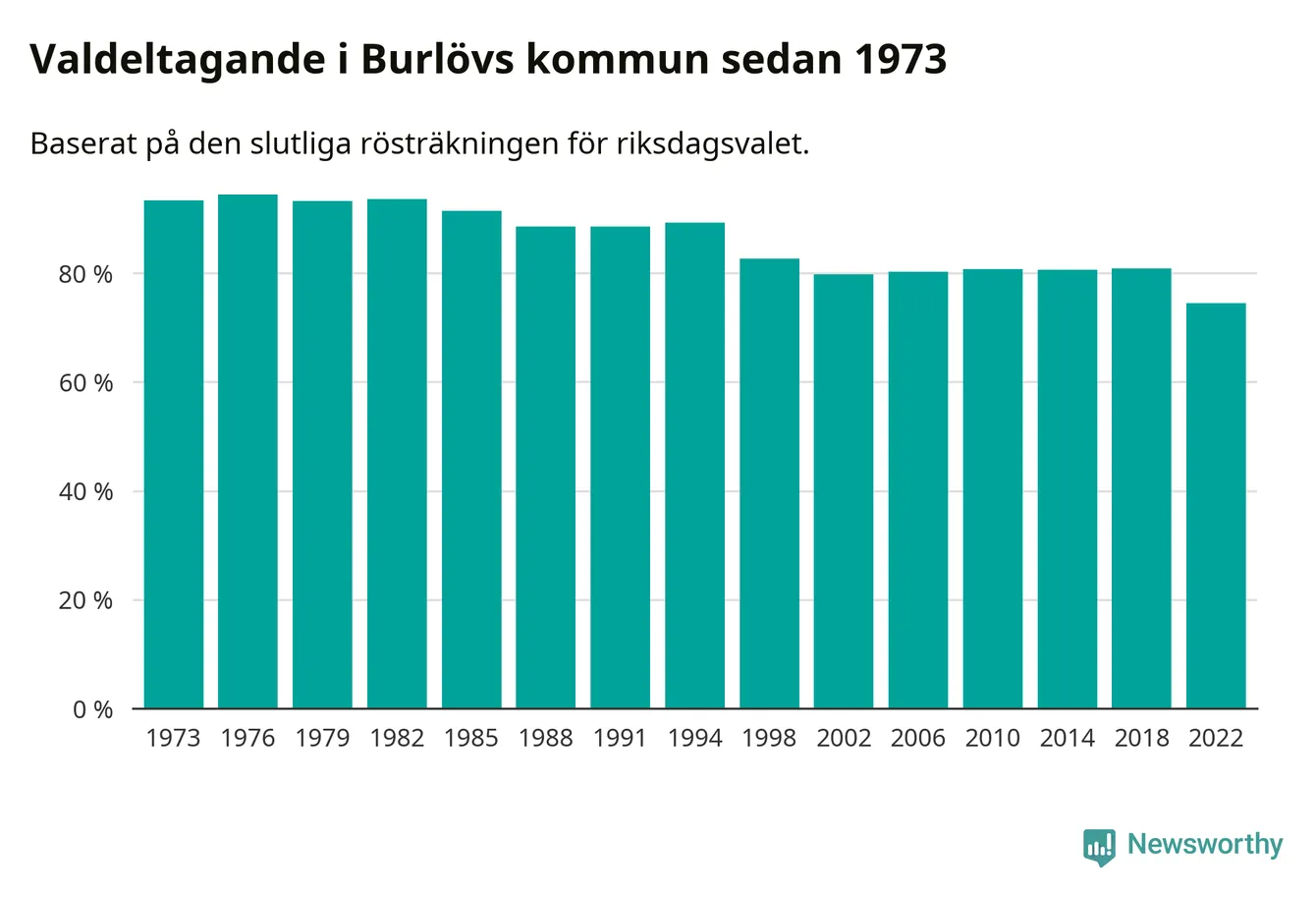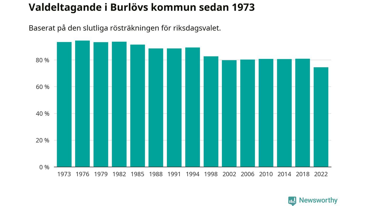 Burlöv hade det fjärde lägsta valdeltagadet av alla kommuner i landet under 2022. Allra lägst var det i Haparanda kommun, där bara 69,1 procent röstade i riksdagsvalet. Högst valdeltagande noterades i Lomma kommun, 92,4 procent.