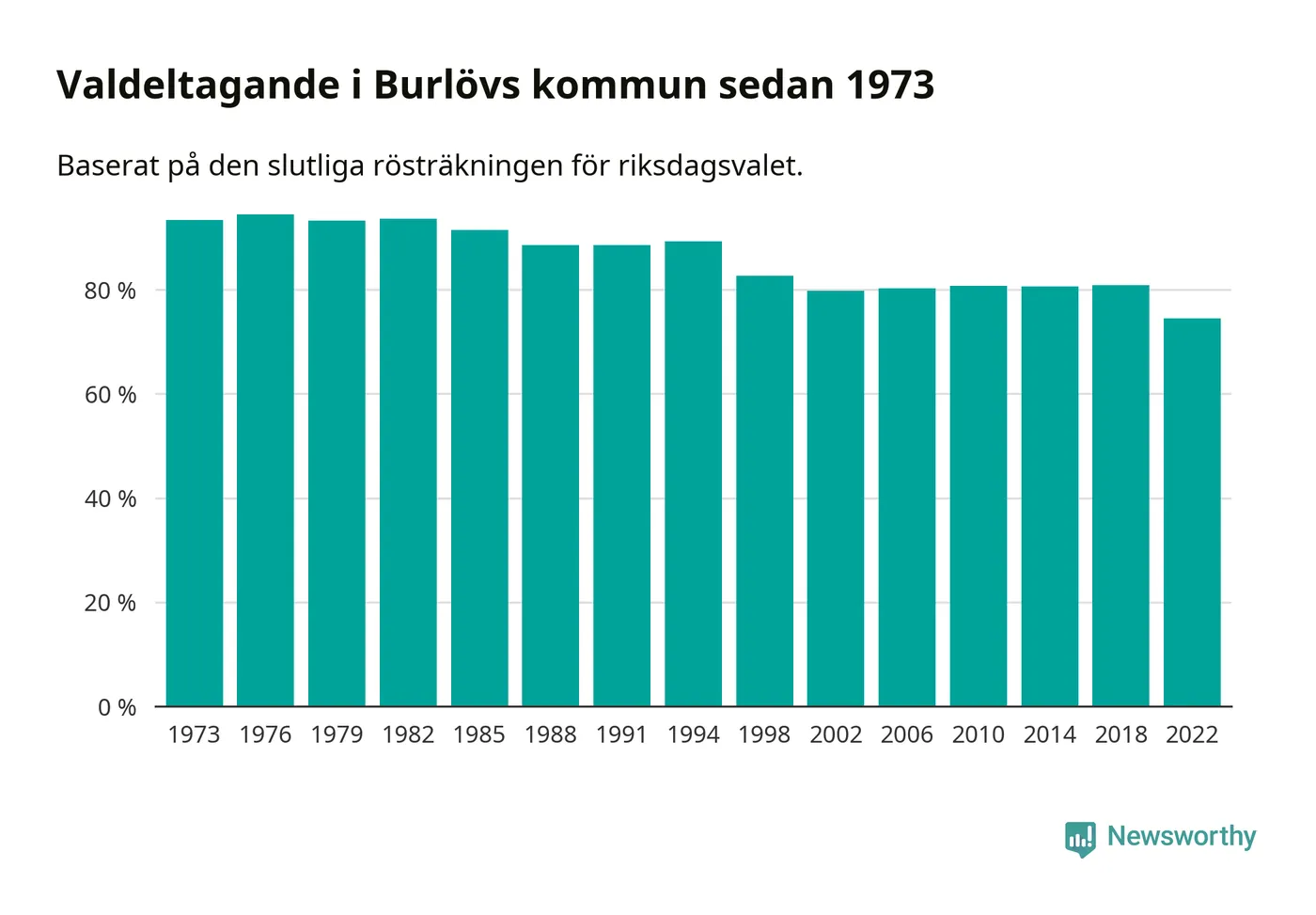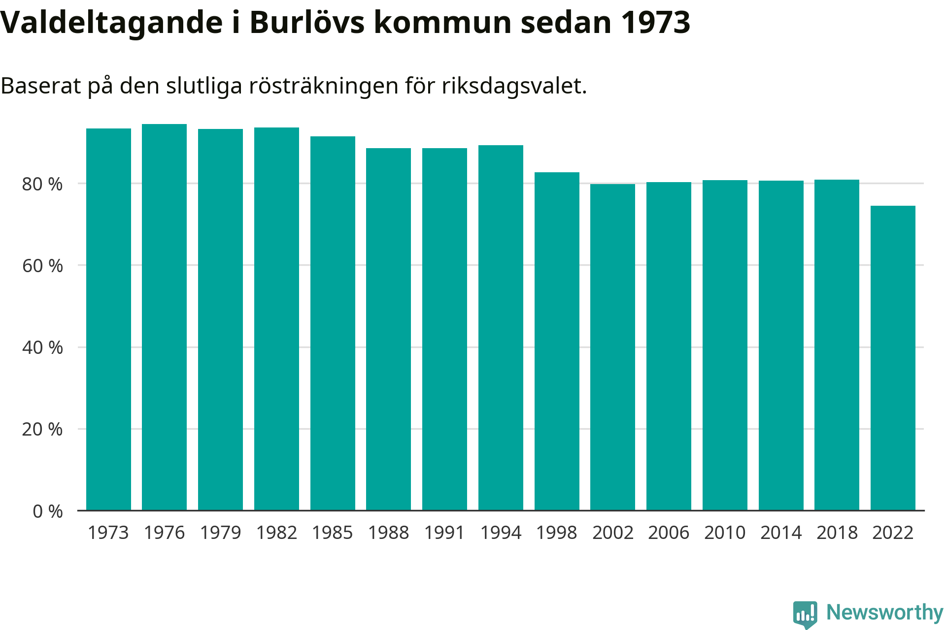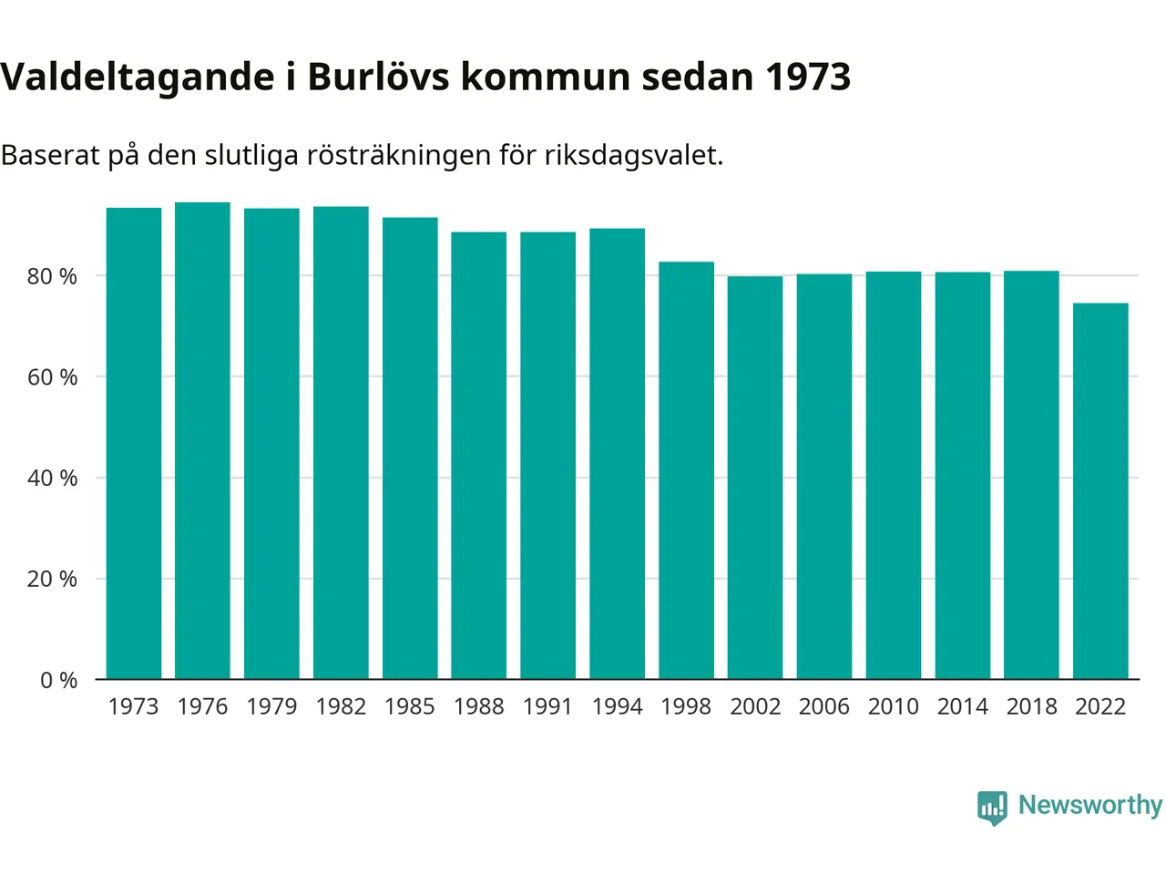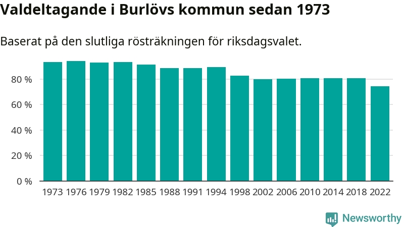 Burlöv hade det fjärde lägsta valdeltagadet av alla kommuner i landet under 2022. Allra lägst var det i Haparanda kommun, där bara 69,1 procent röstade i riksdagsvalet. Högst valdeltagande noterades i Lomma kommun, 92,4 procent.