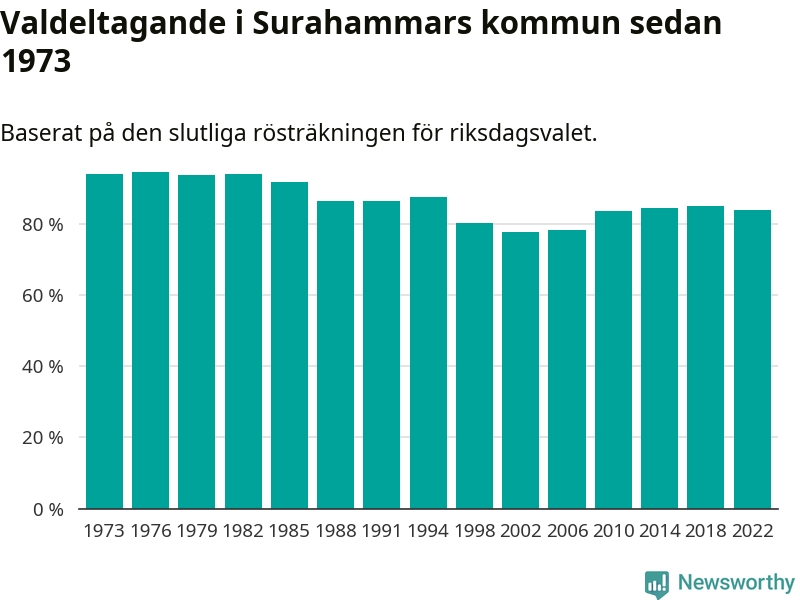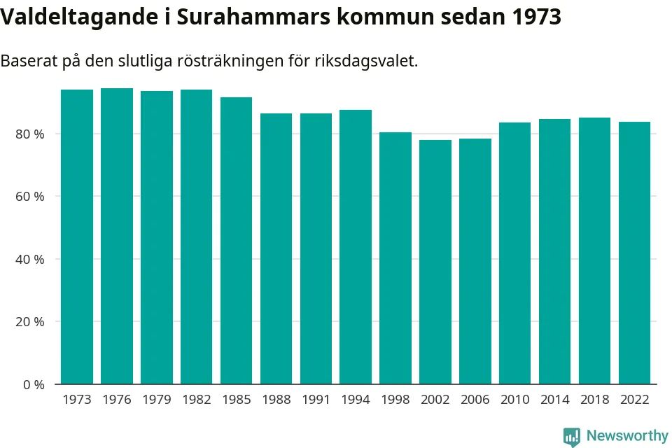 Valdeltagande i riksdagsvalet, i valdistrikten i Surahammar