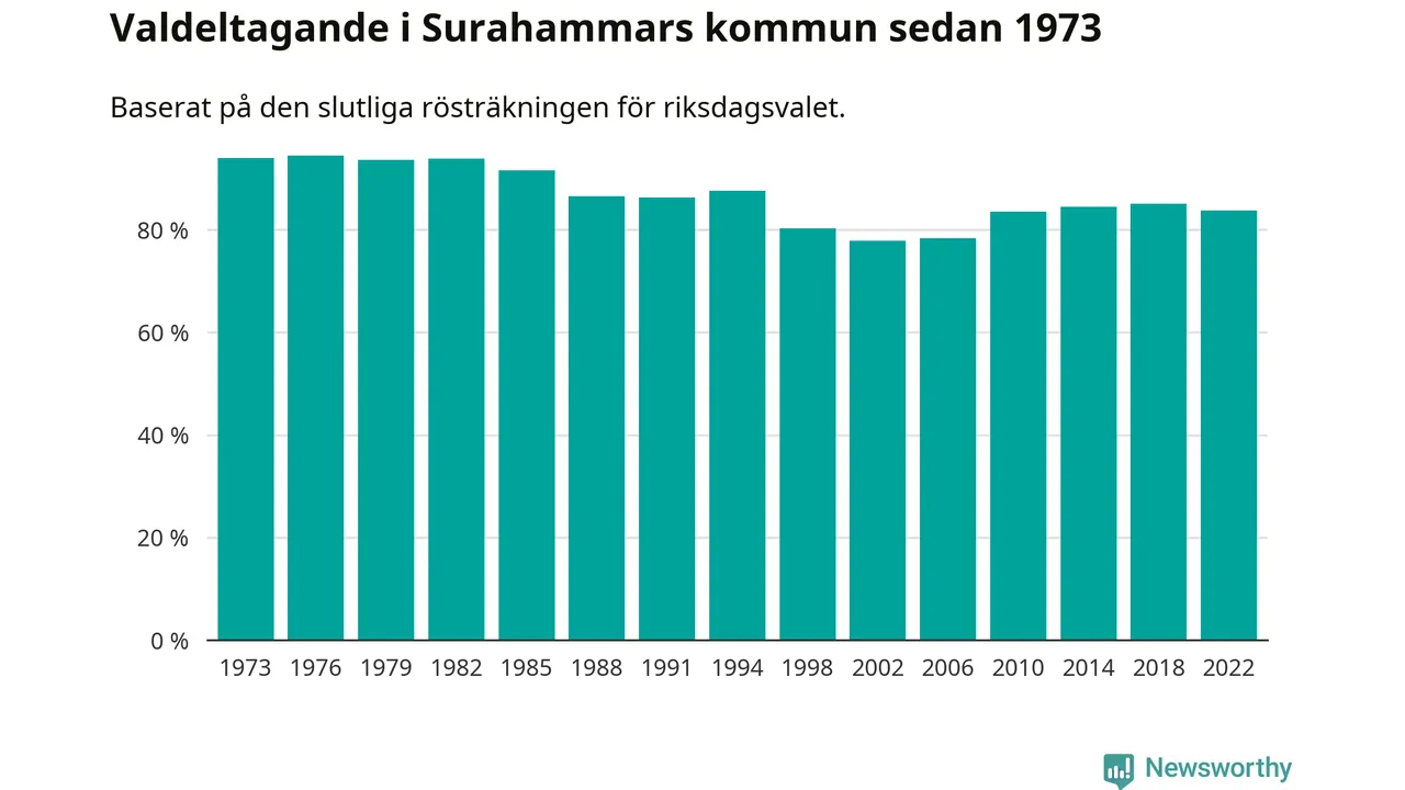 I höst går 7 355 Surahammars­bor till val. Sist landade valdeltagandet på 84 procent, en minskning för första gången sedan 2002 i kommunen.