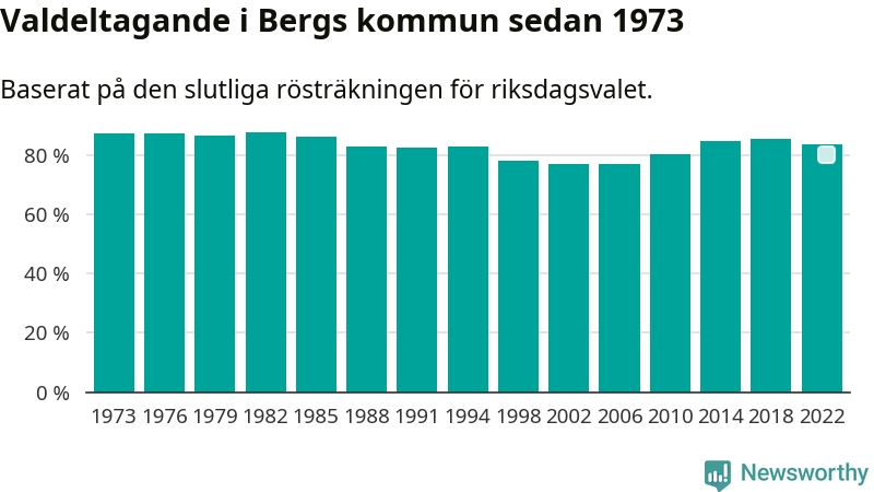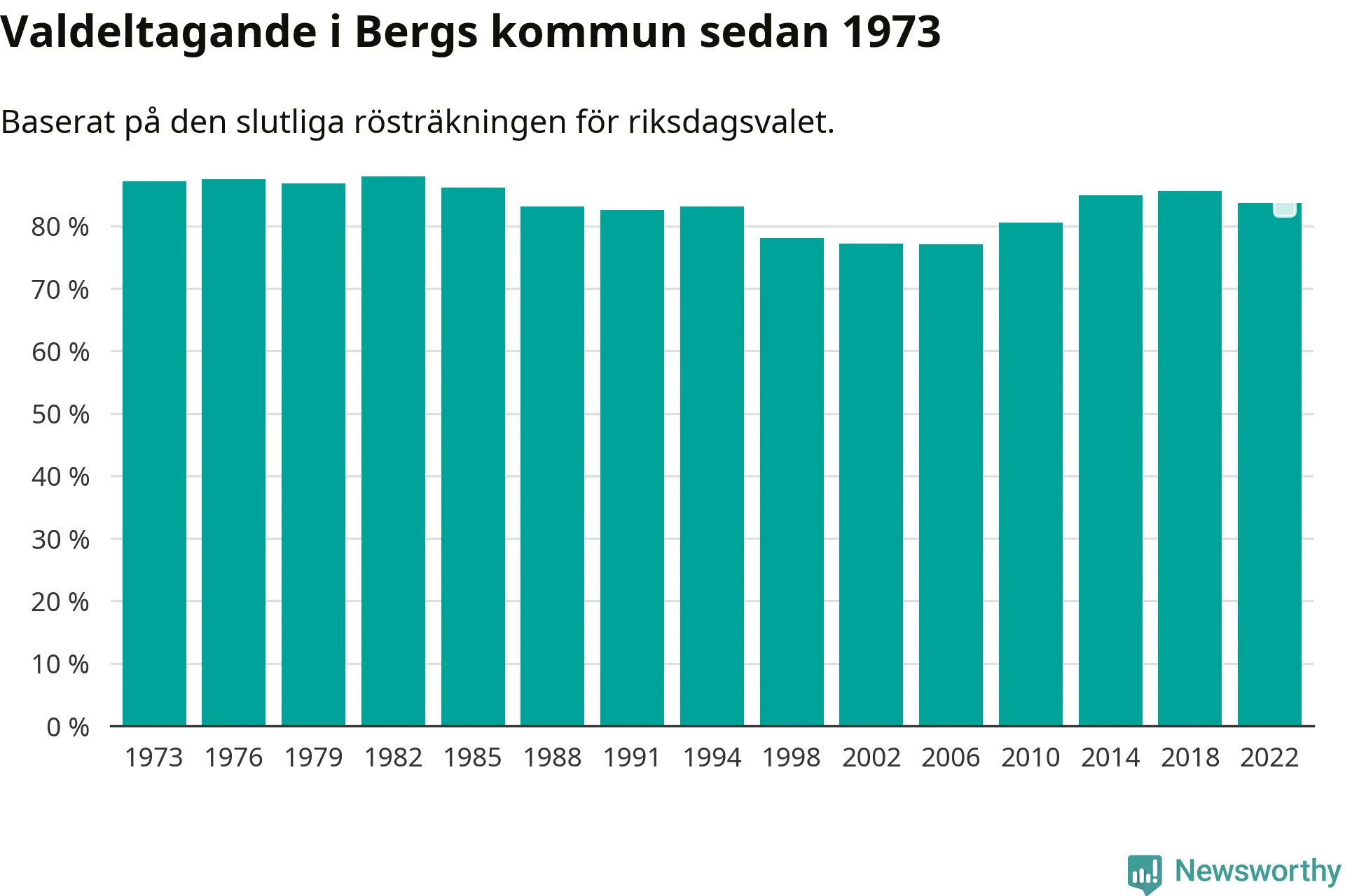 Berg tillhör Jämtlands läns valkrets. Där var valdeltagandet förra valet 85,0 procent. I hela riket landade valdeltagandet 2022 på 84,21 procent, att jämföra med 87,18 procent 2018.