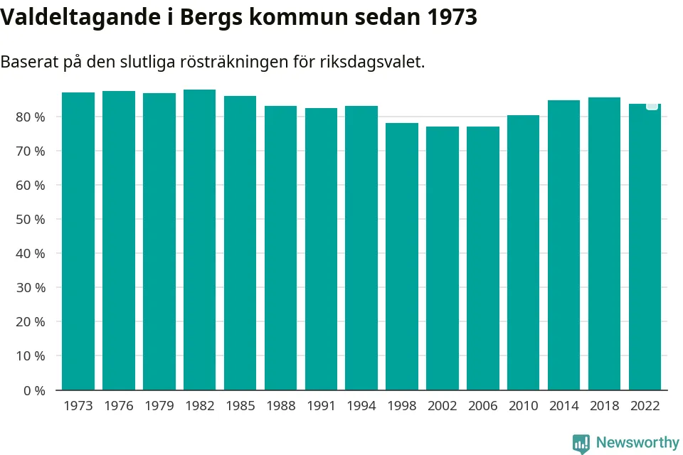 I höst går 5 533 Bergsbor till val. Sist landade valdeltagandet på 84 procent, en minskning för första gången sedan 2006 i kommunen.