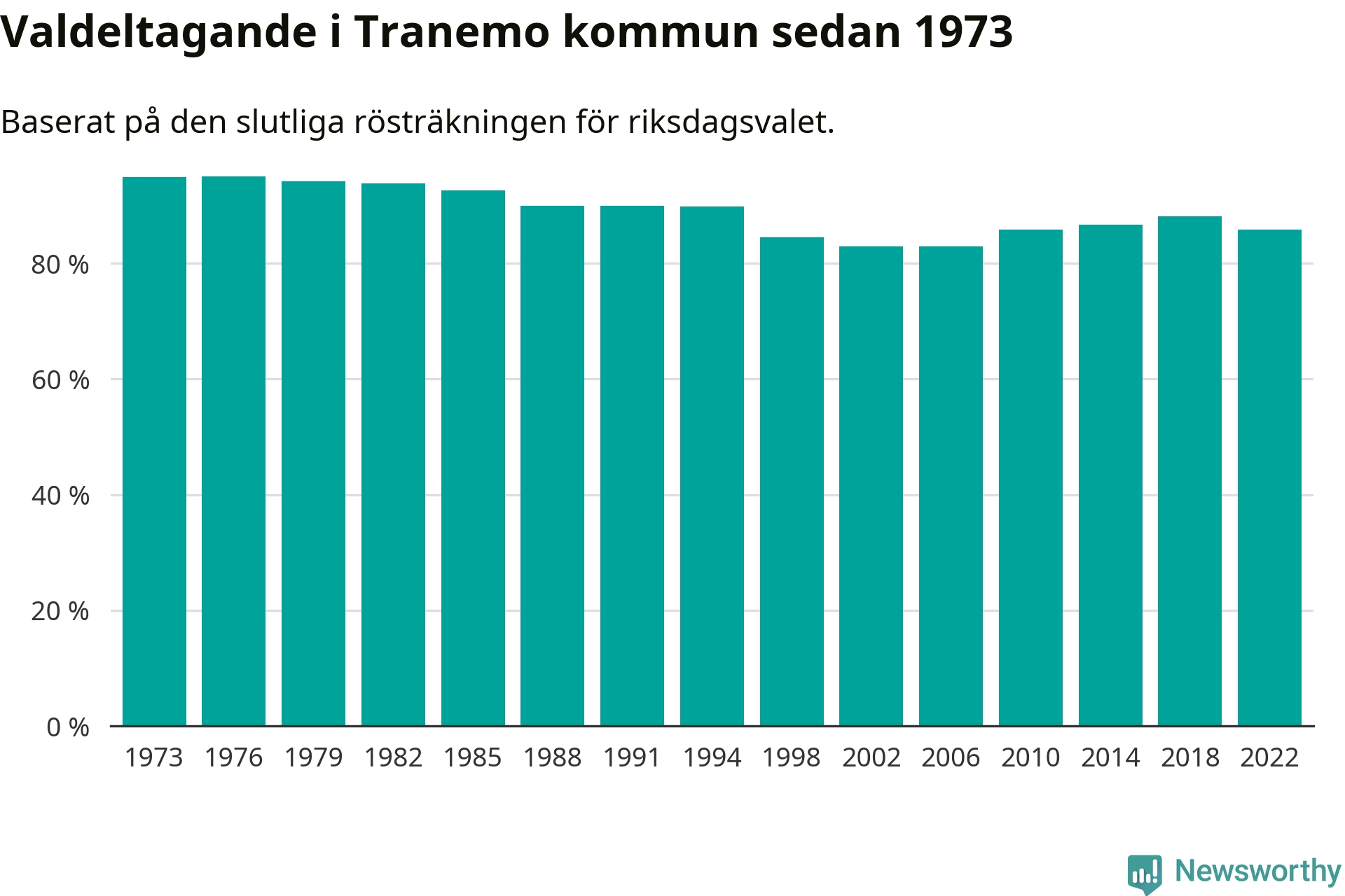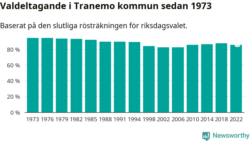 Valdeltagande i riksdagsvalet, i valdistrikten i Tranemo