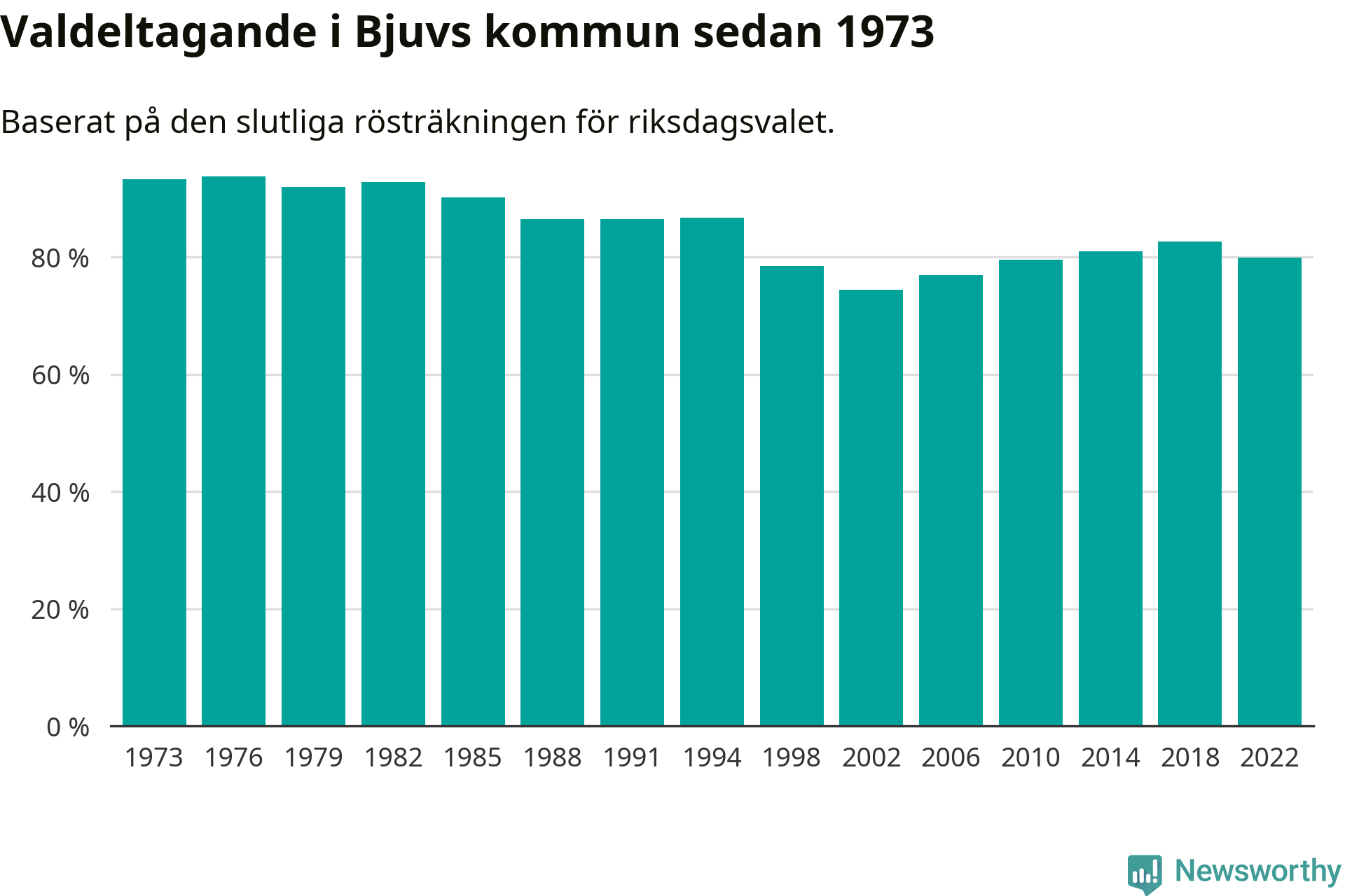 Valdeltagande i riksdagsvalet, i valdistrikten i Bjuv