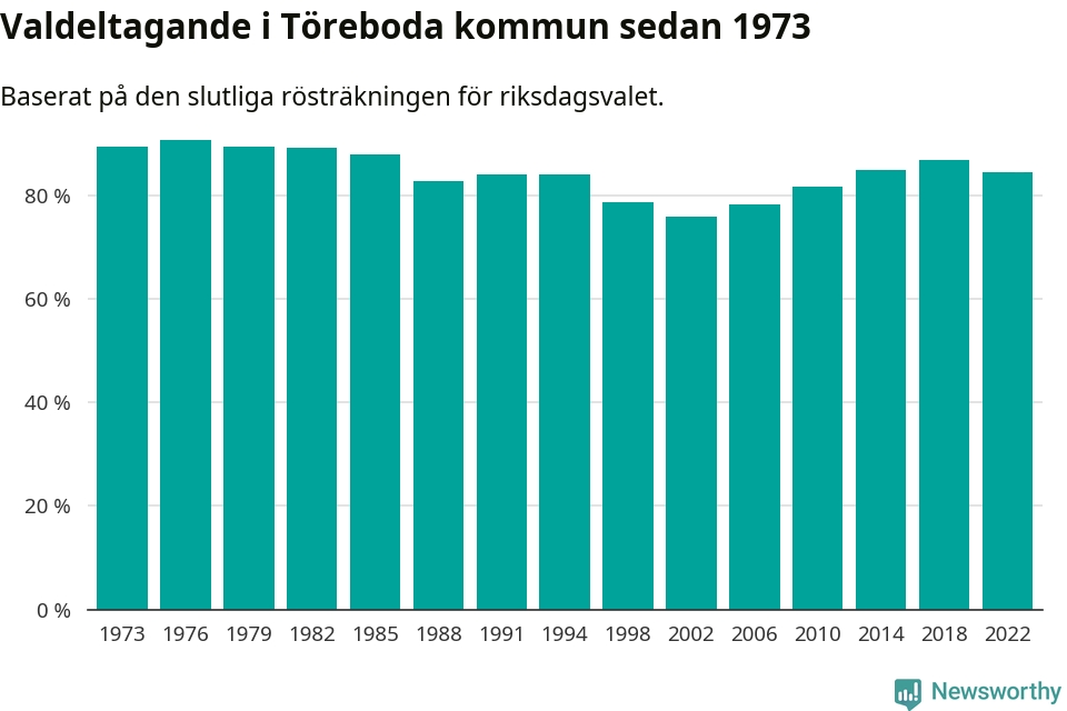 I höst går 7 050 Törebodabor till val. Sist landade valdeltagandet på 85 procent, en minskning för första gången sedan 2002 i kommunen.