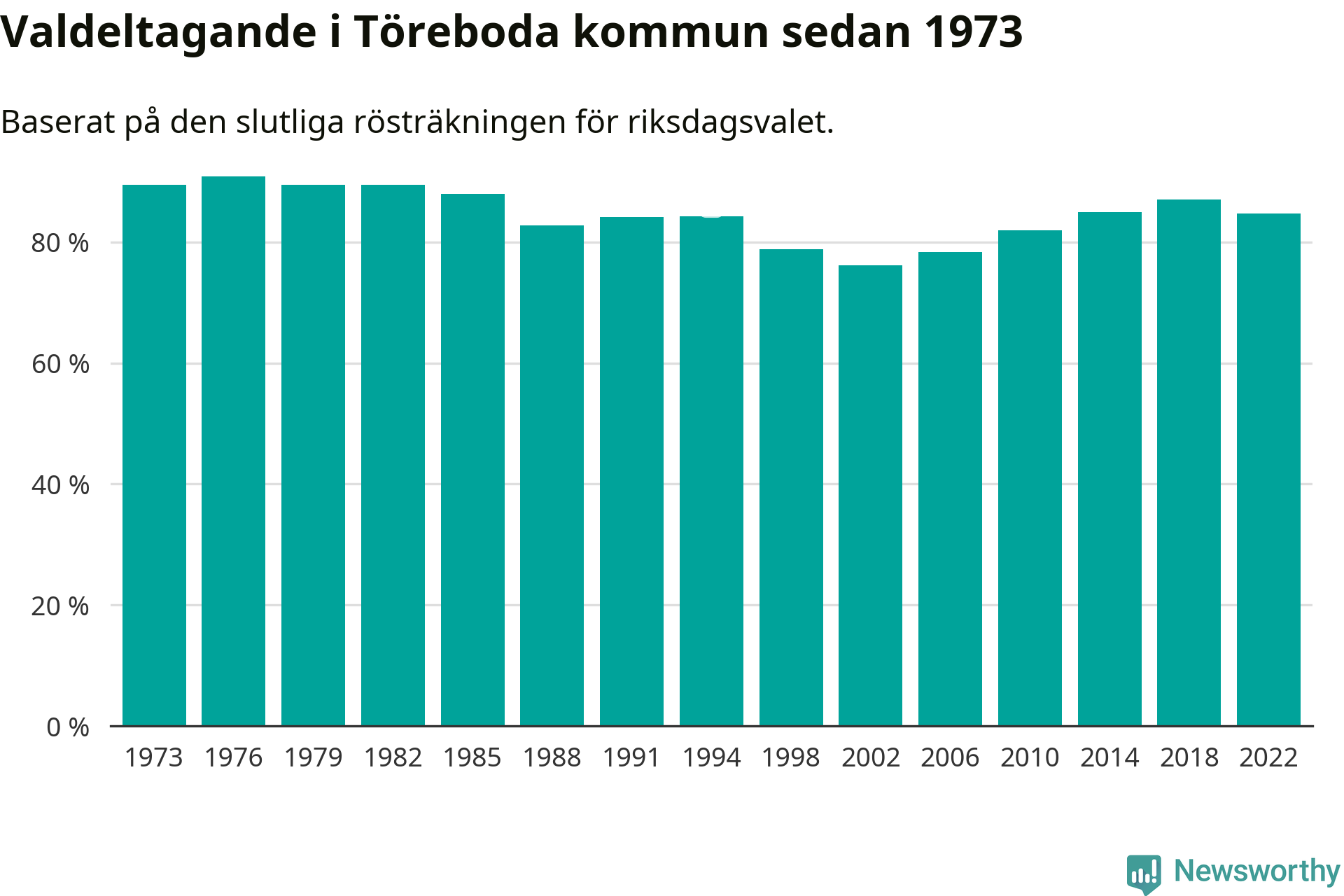 Valdeltagande i riksdagsvalet, i valdistrikten i Töreboda