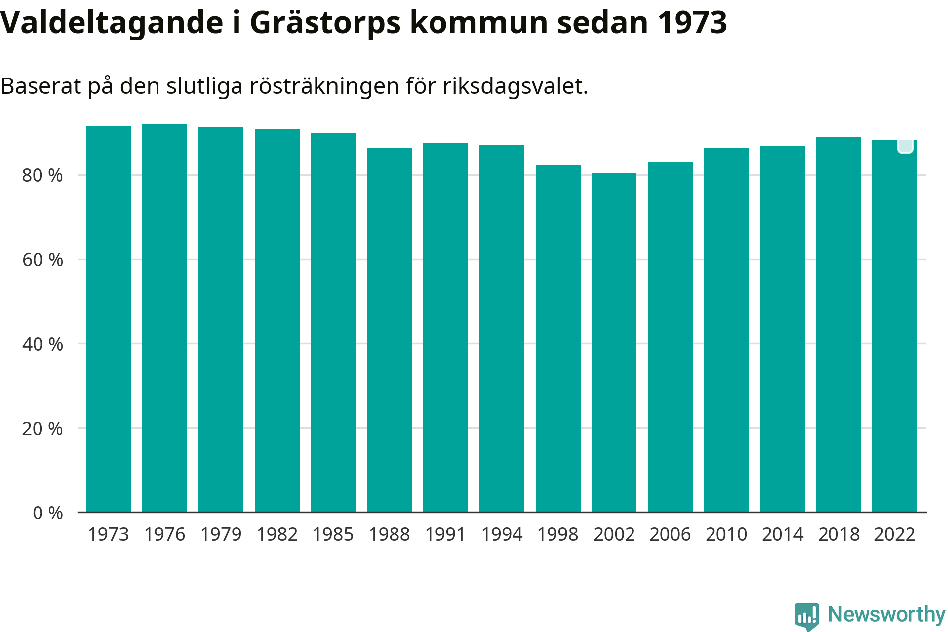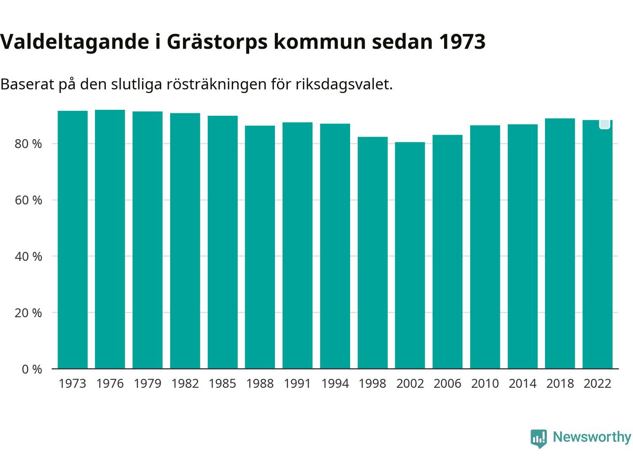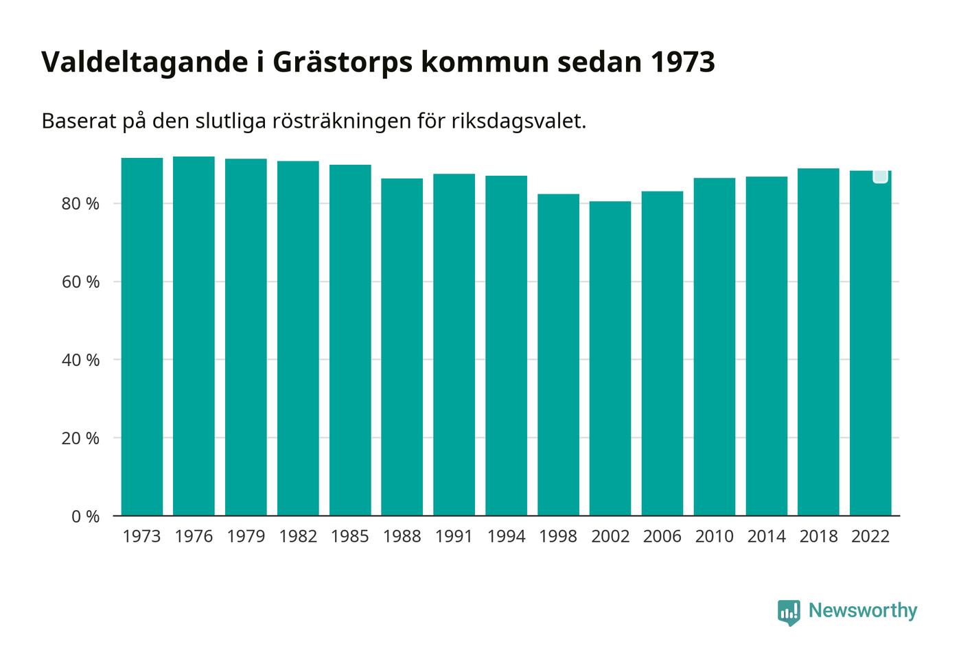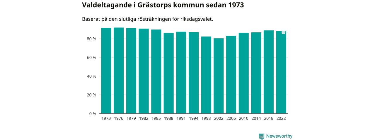 I höst går 4 484 Grästorpsbor till val. Sist landade valdeltagandet på 88 procent, en minskning för första gången sedan 2002 i kommunen.