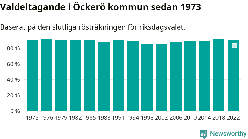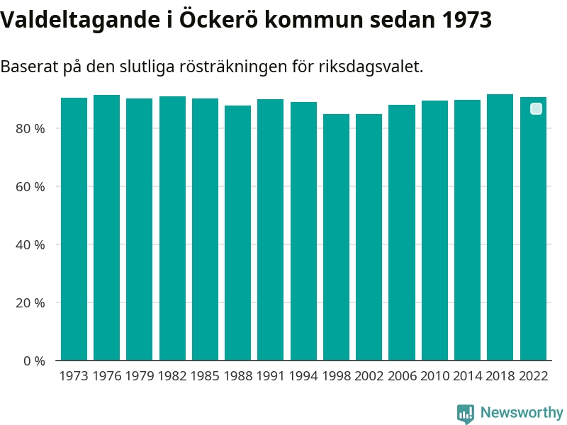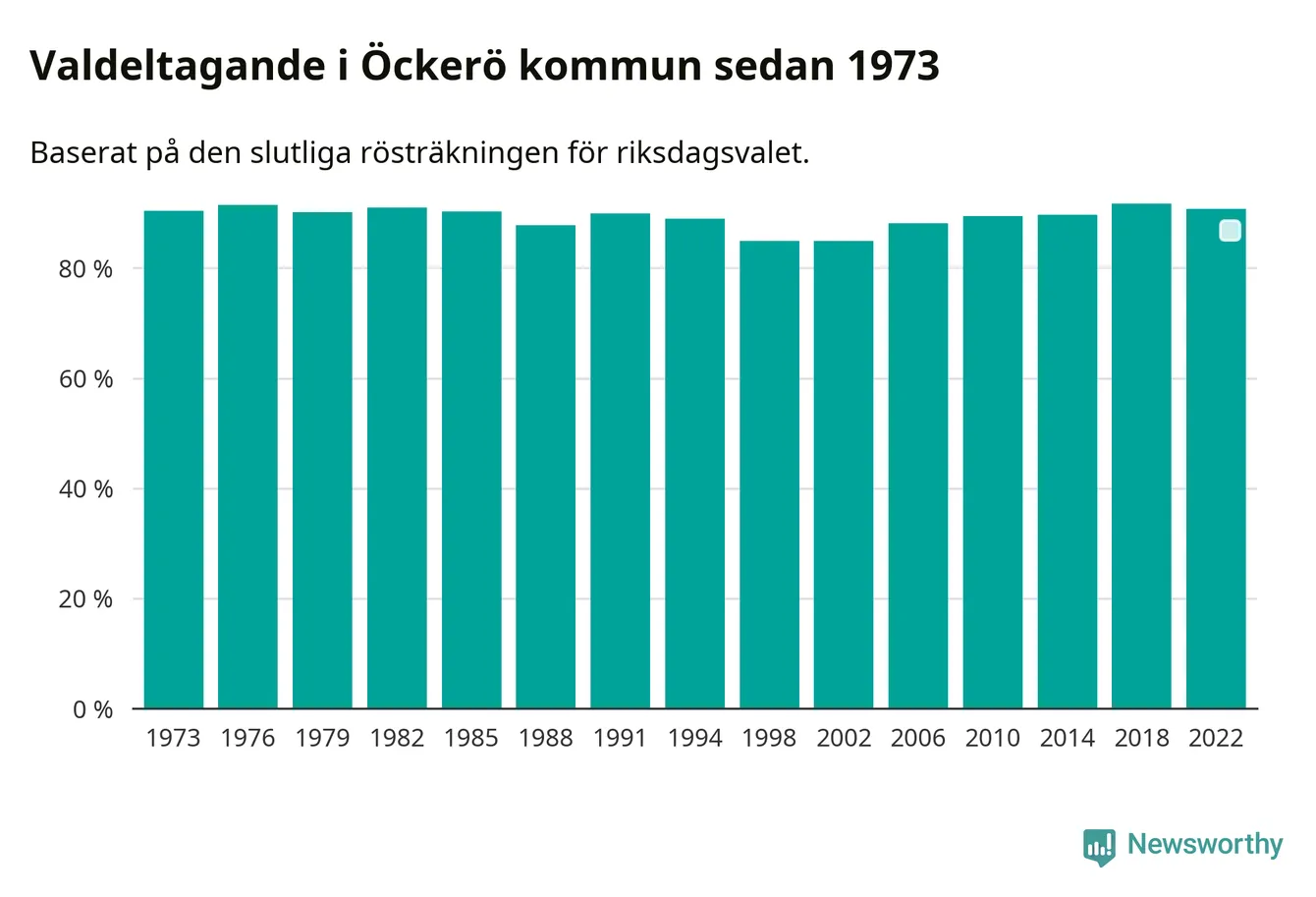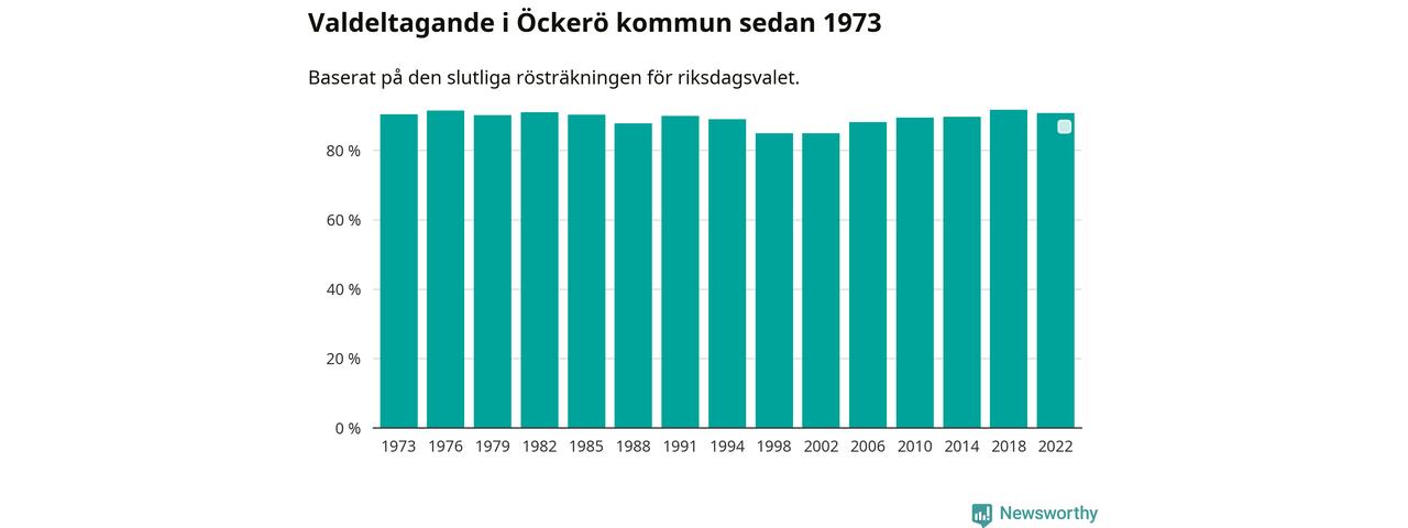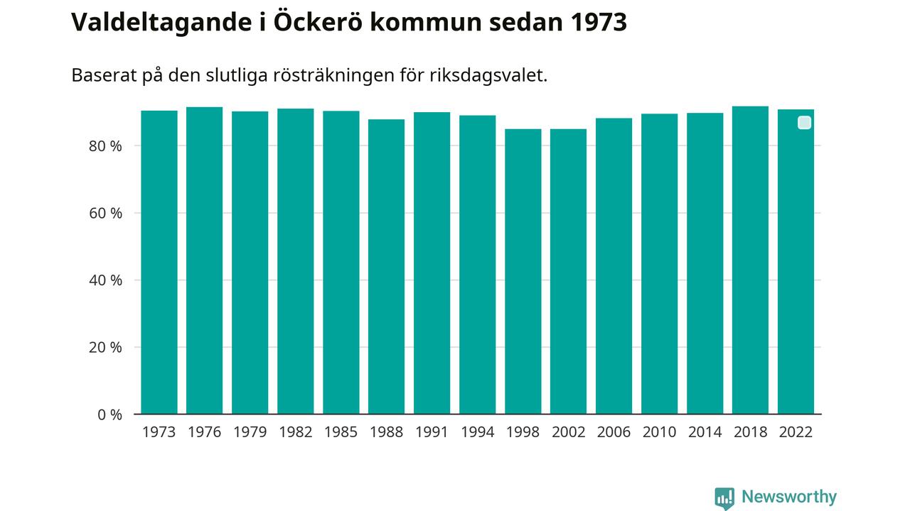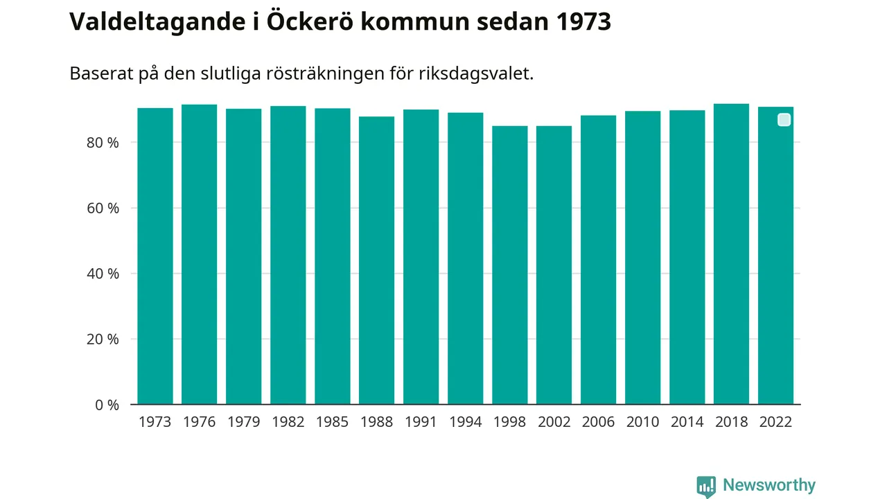 Öckerö hade det fjärde högsta valdeltagadet av alla kommuner i landet under 2022. Allra högst var det i Lomma kommun, 92,4 procent, medan bara 69,1 procent röstade i Haparanda kommun.