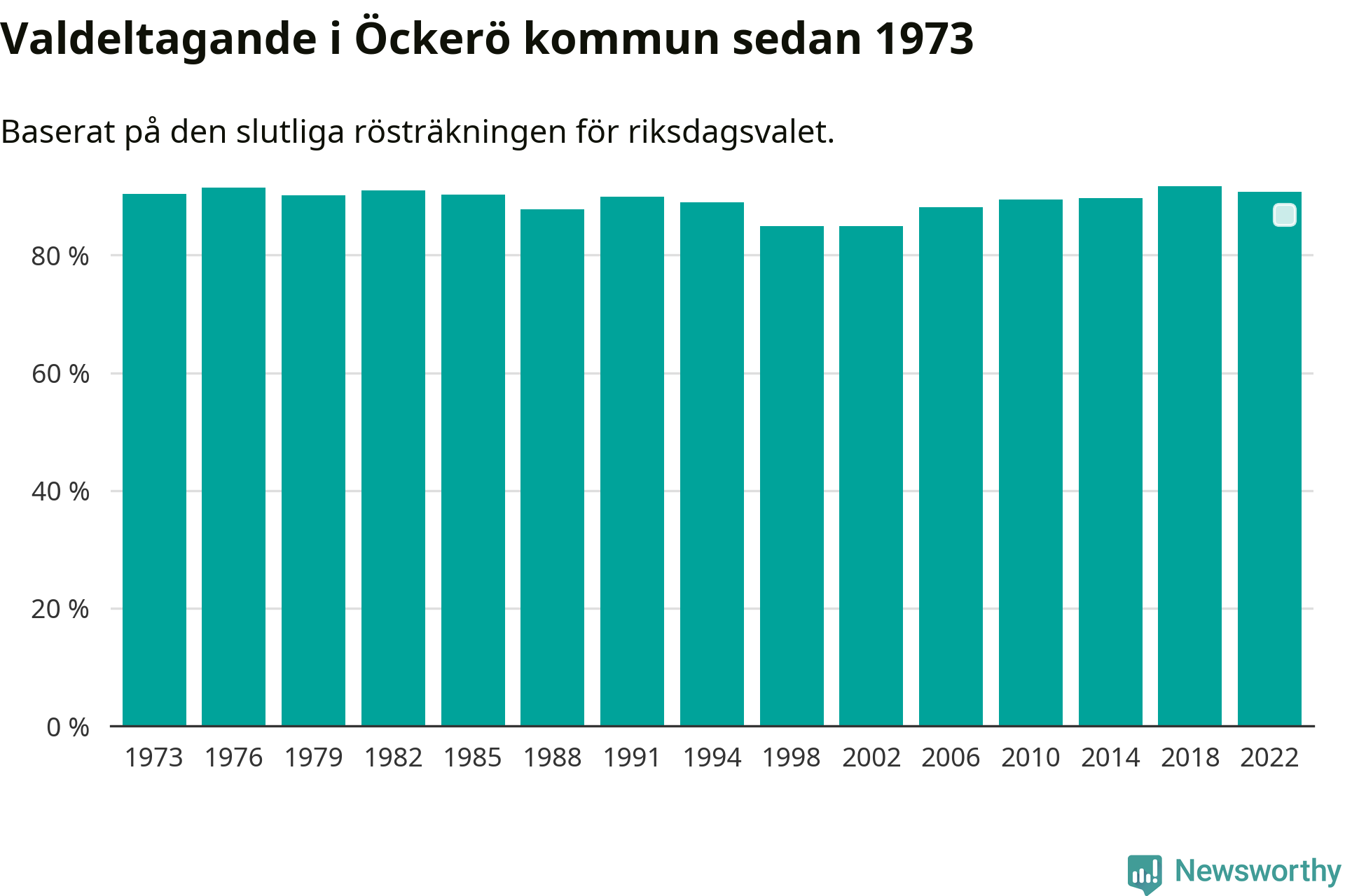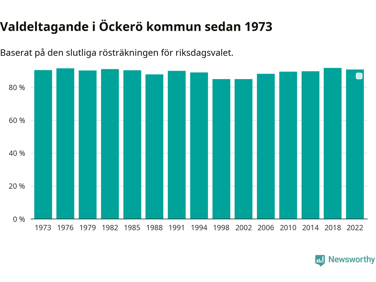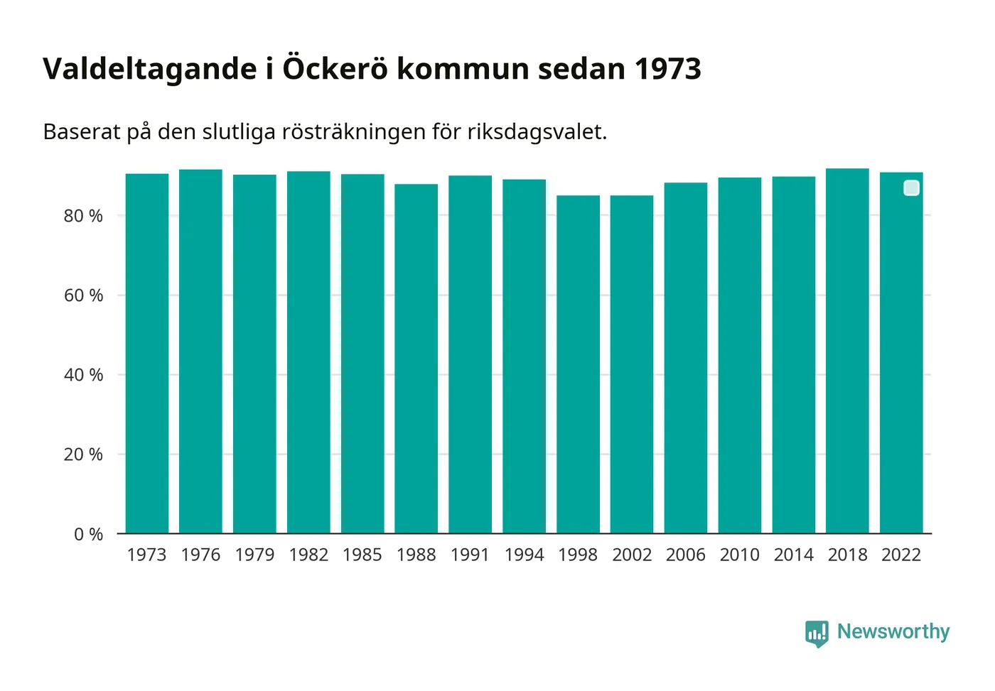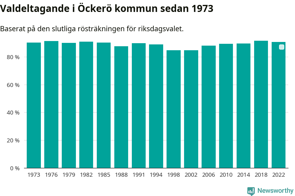 Öckerö hade det fjärde högsta valdeltagadet av alla kommuner i landet under 2022. Allra högst var det i Lomma kommun, 92,4 procent, medan bara 69,1 procent röstade i Haparanda kommun.