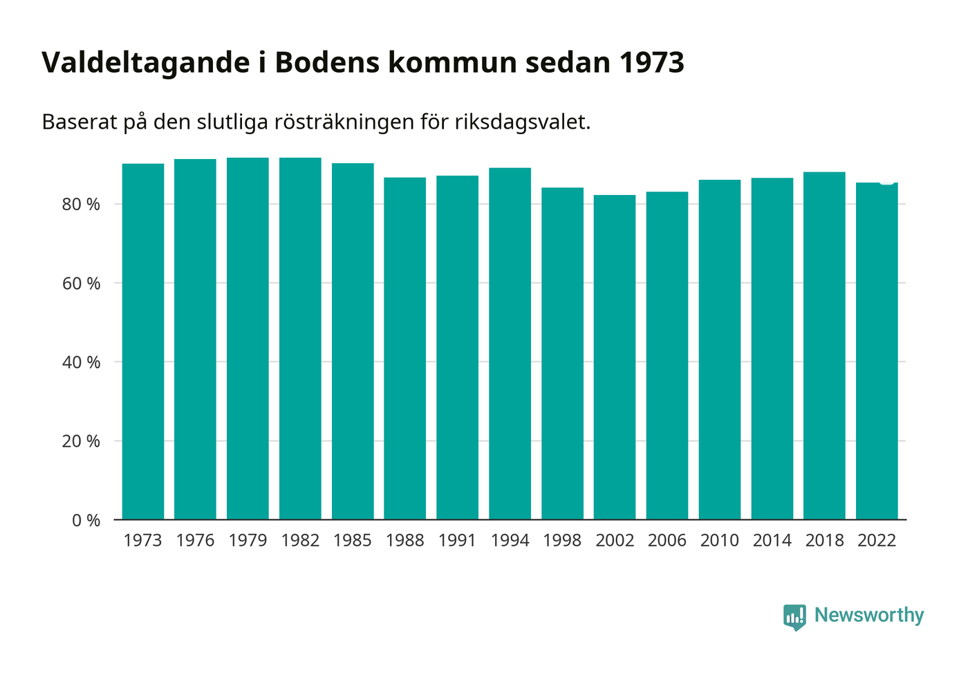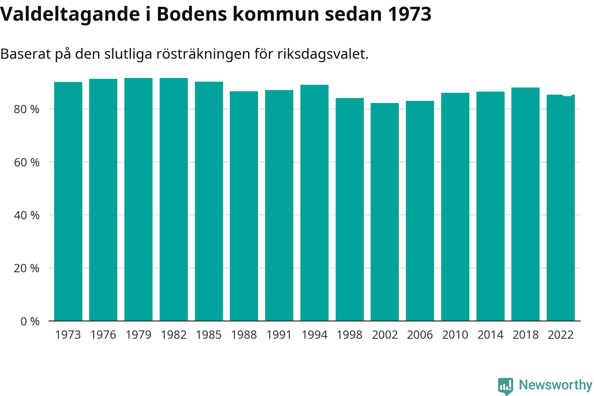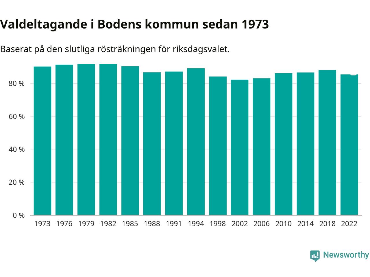Boden tillhör Norrbottens läns valkrets. Där var valdeltagandet förra valet 84,6 procent. I hela riket landade valdeltagandet 2022 på 84,21 procent, att jämföra med 87,18 procent 2018.
