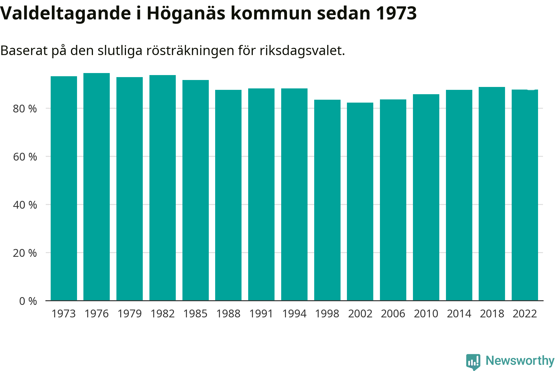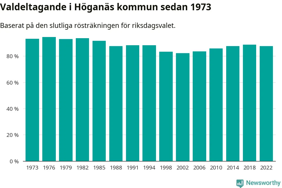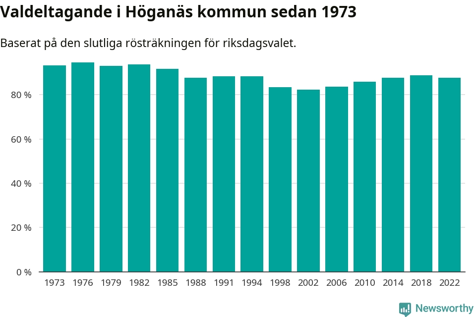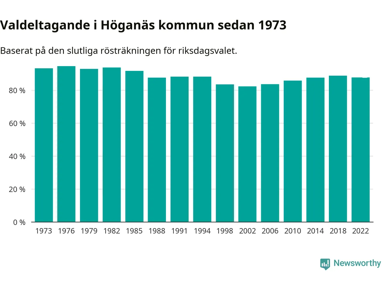 Högst valdeltagande i Skåne läns västra valkrets, som Höganäs tillhör, noterades i Höganäs kommun, där 87,8 procent röstade i riksdagsvalet. Lägst var valdeltagande i valkretsen i Landskrona kommun, 79,5 procent.