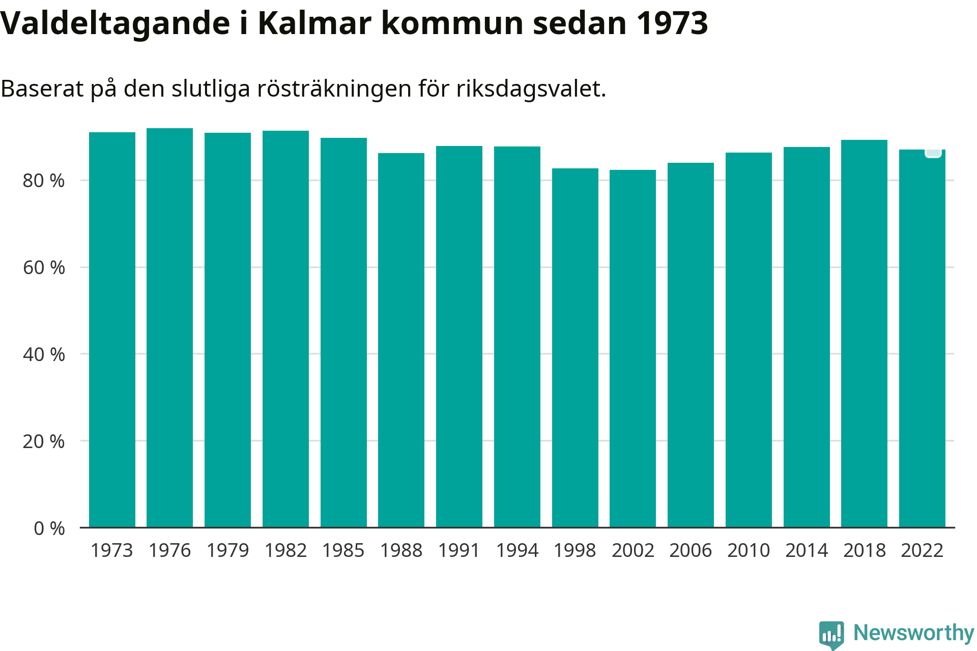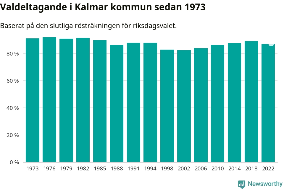 I höst går 56 034 Kalmarbor till val. Sist landade valdeltagandet på 87 procent, en minskning för första gången sedan 2002 i kommunen.