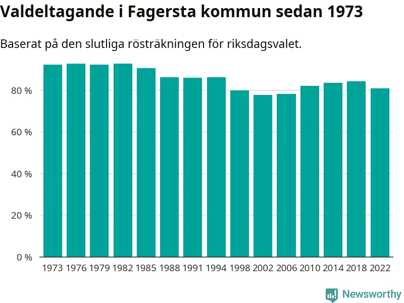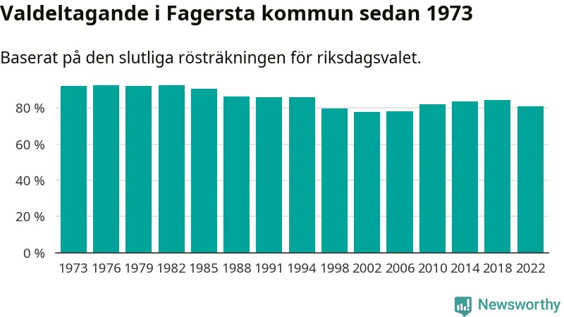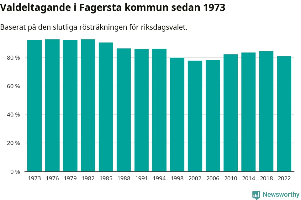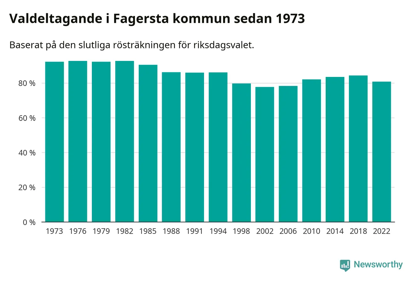 I höst går 9 563 Fagerstabor till val. Sist landade valdeltagandet på 81 procent, en minskning för första gången sedan 2002 i kommunen.