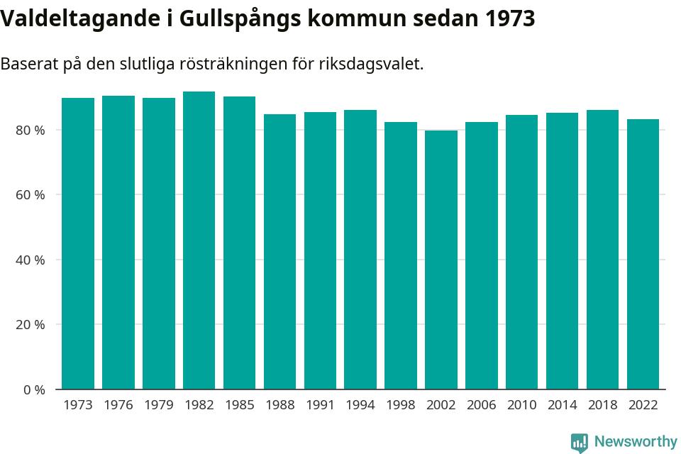| Gullspång | 83,4 % | −2,7 % |