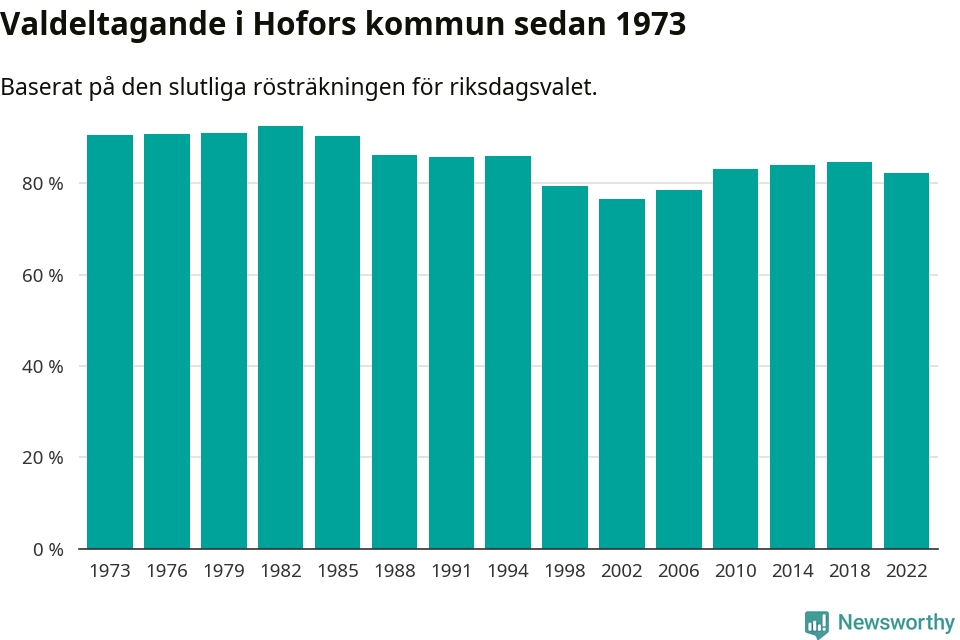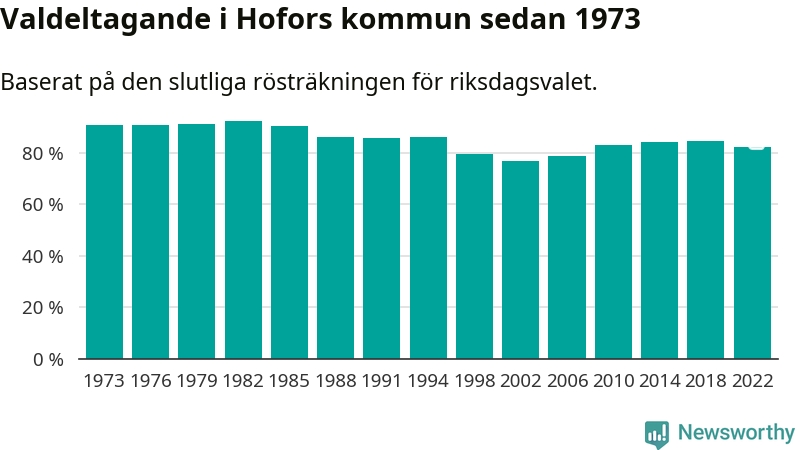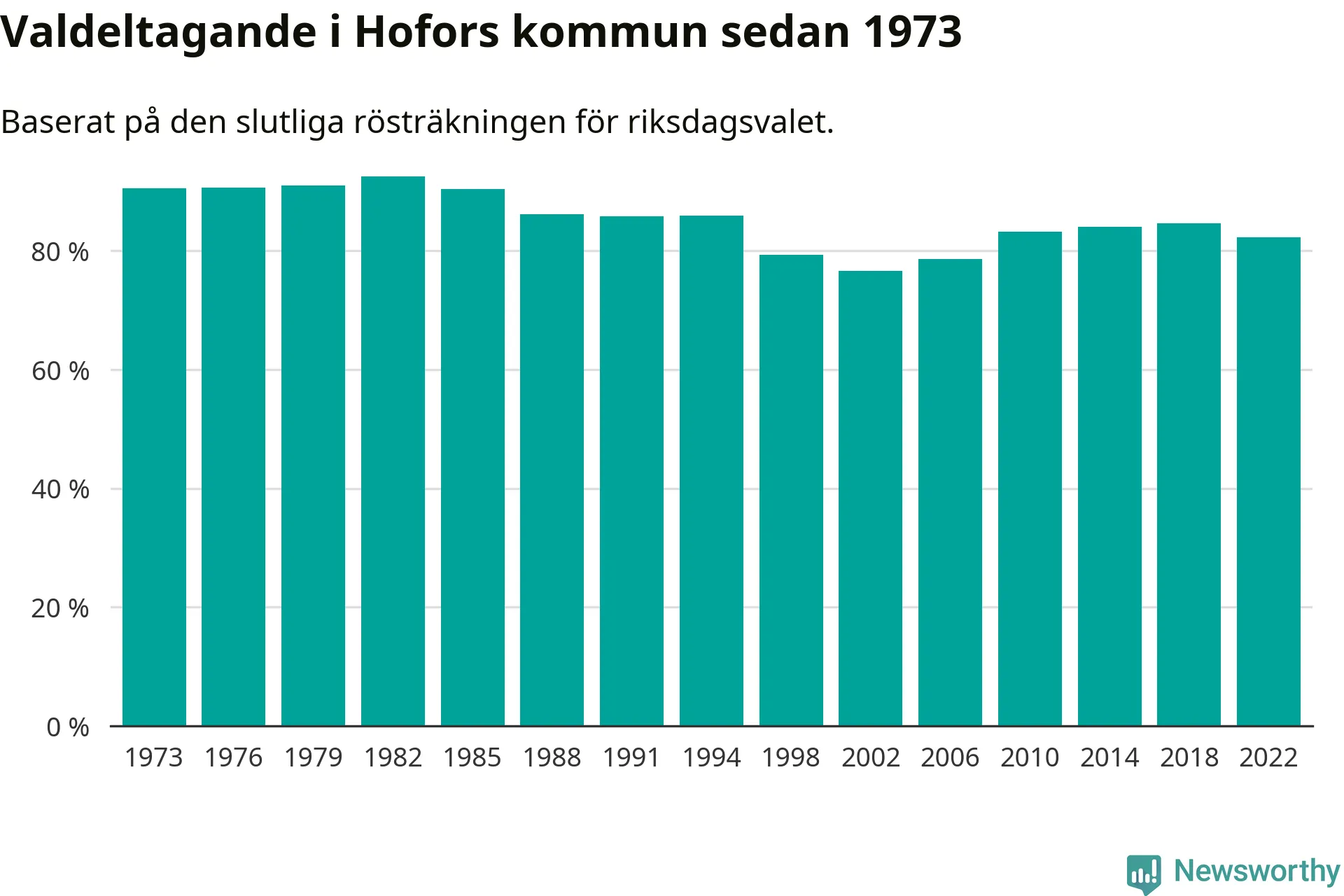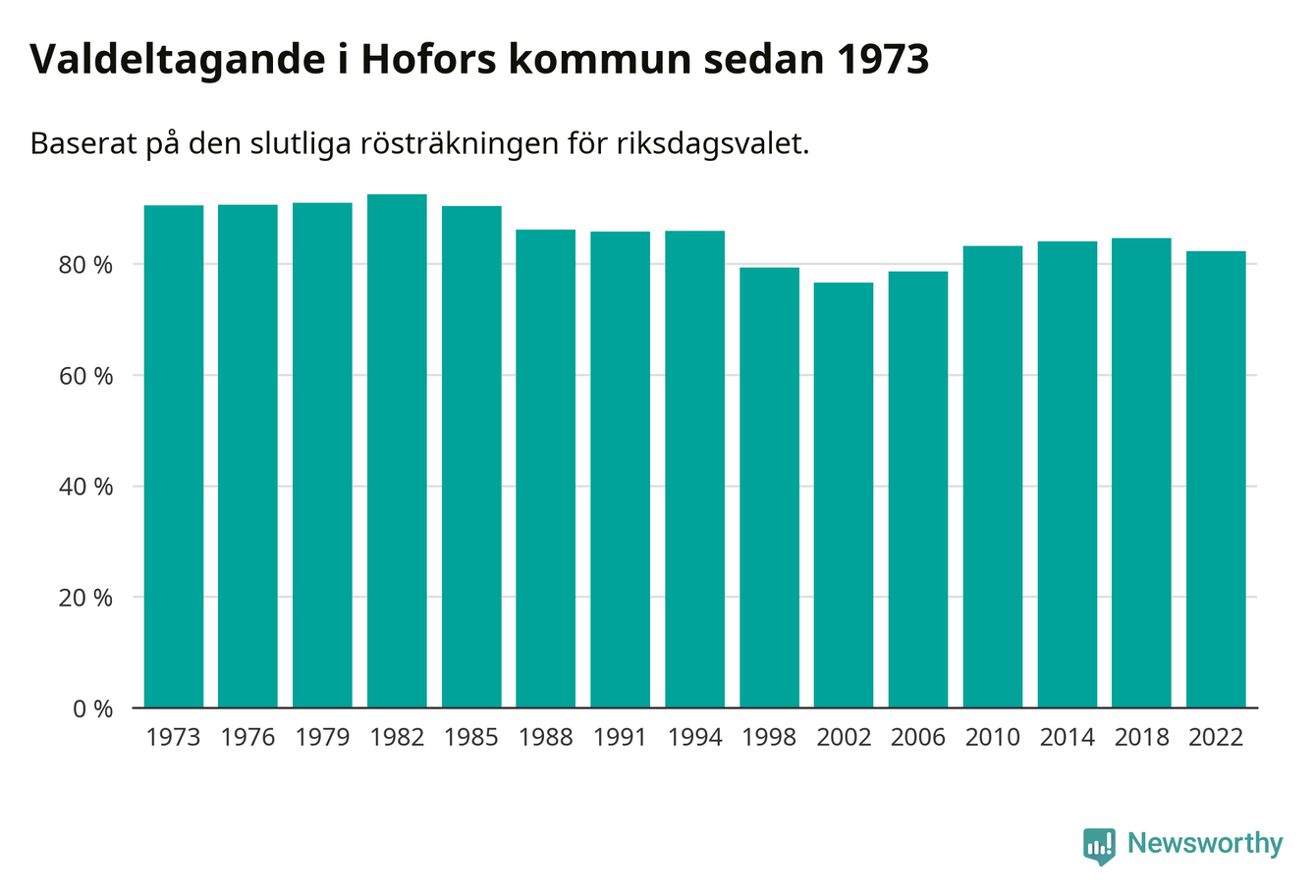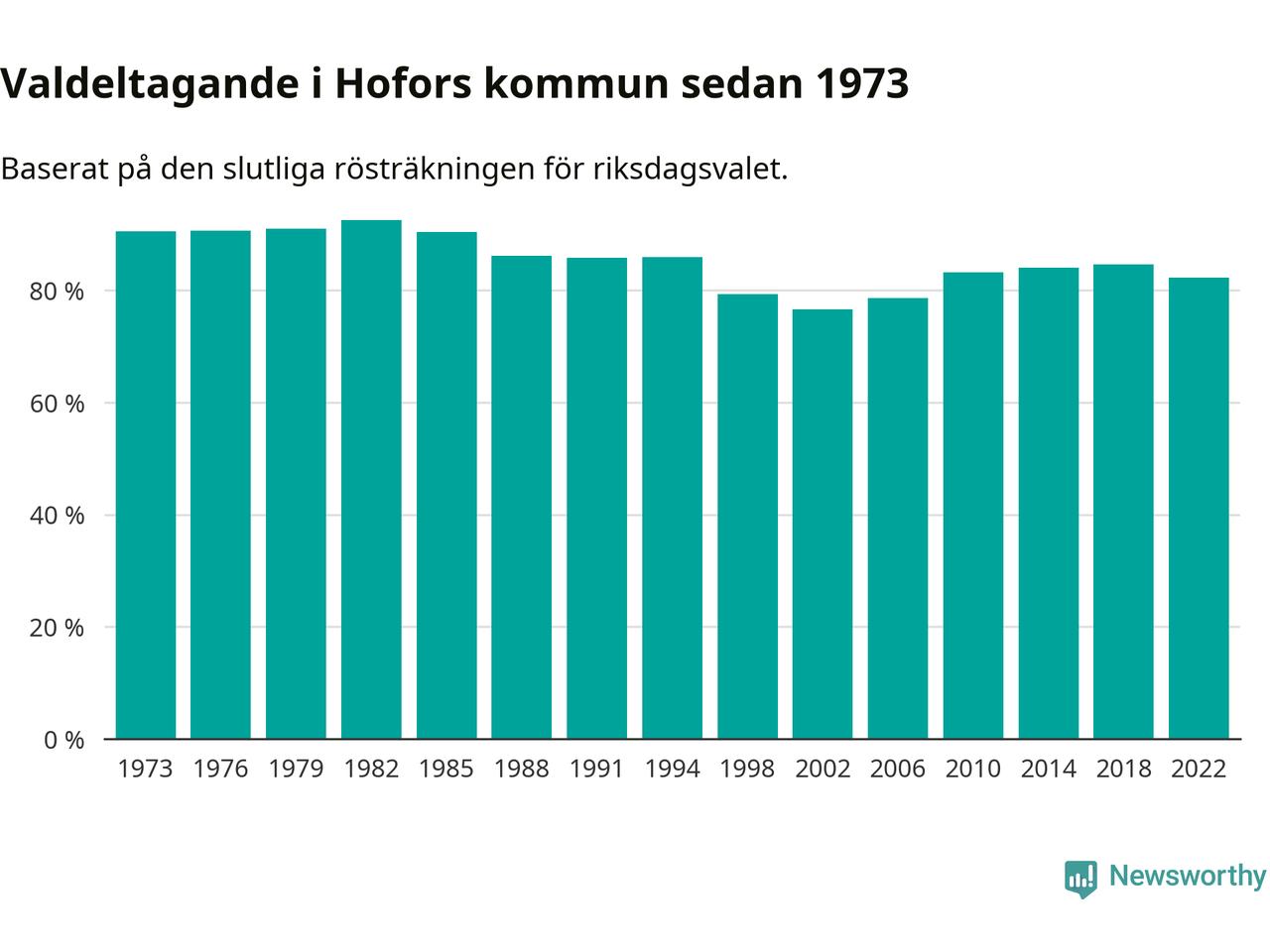 Hofors tillhör Gävleborgs läns valkrets. Där var valdeltagandet förra valet 83,5 procent. I hela riket landade valdeltagandet 2022 på 84,21 procent, att jämföra med 87,18 procent 2018.