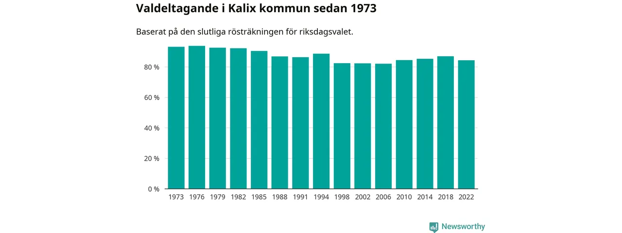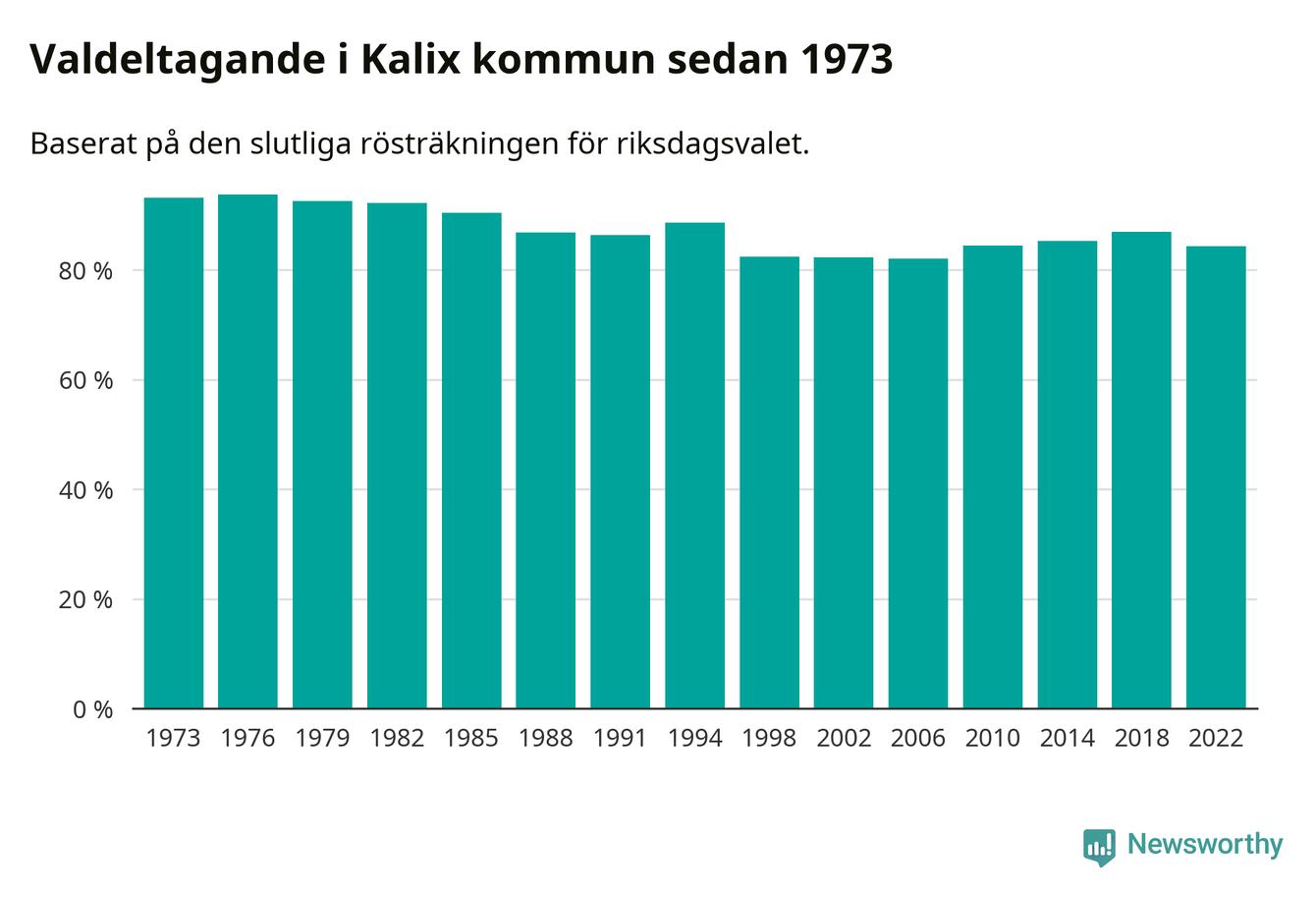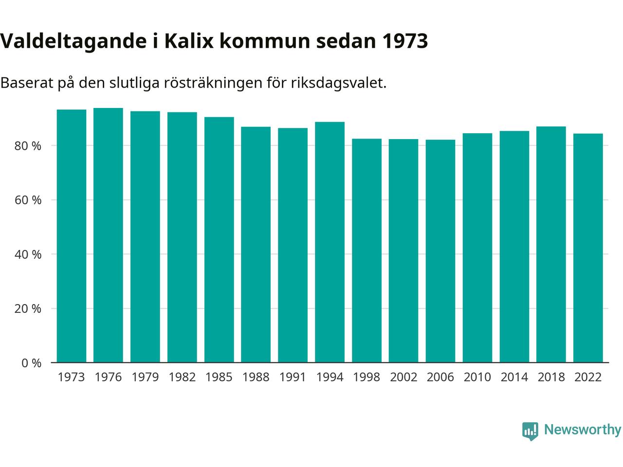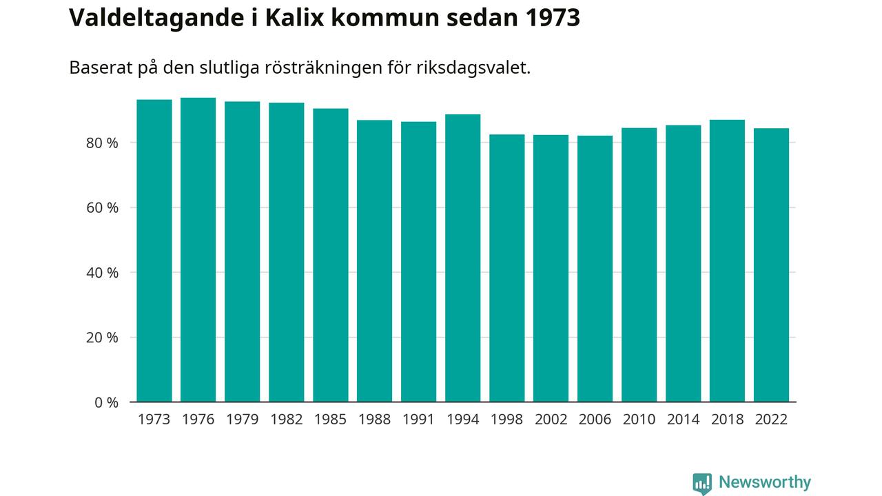 Kalix tillhör Norrbottens läns valkrets. Där var valdeltagandet förra valet 84,6 procent. I hela riket landade valdeltagandet 2022 på 84,21 procent, att jämföra med 87,18 procent 2018.
