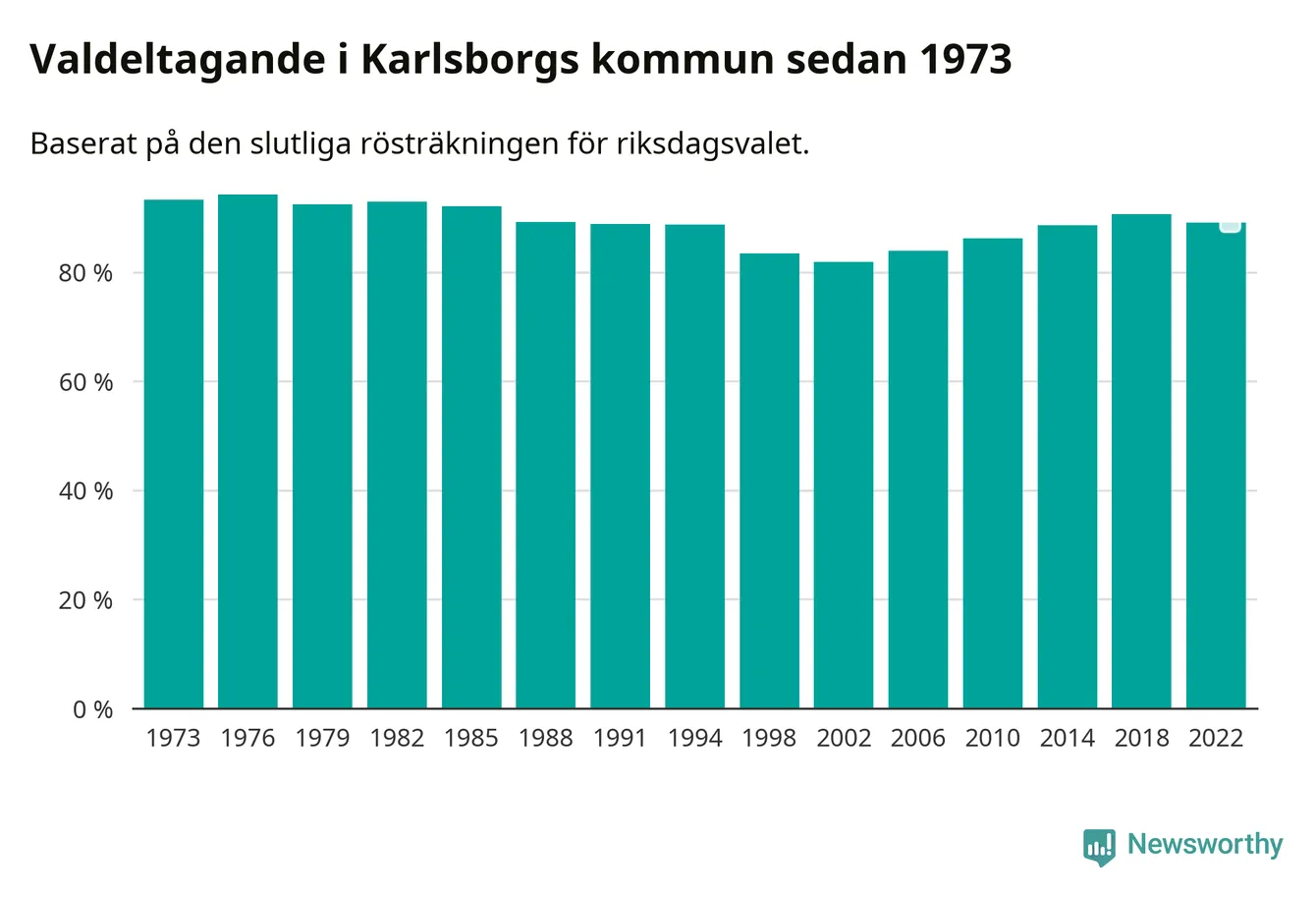 I höst går 5 692 Karlsborgsbor till val. Sist landade valdeltagandet på 89 procent, en minskning för första gången sedan 2002 i kommunen.