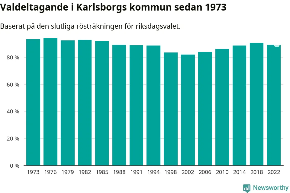 Valdeltagande i riksdagsvalet, i valdistrikten i Karlsborg