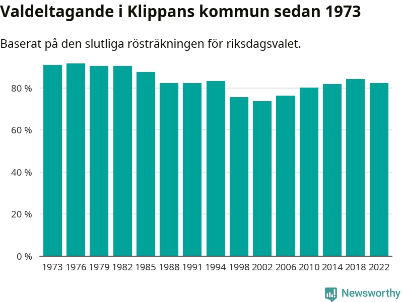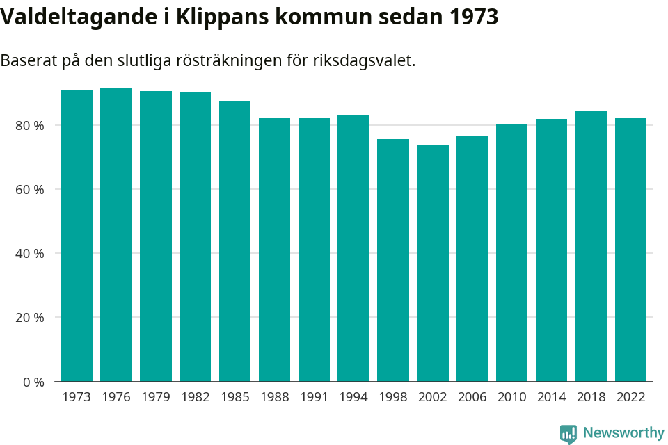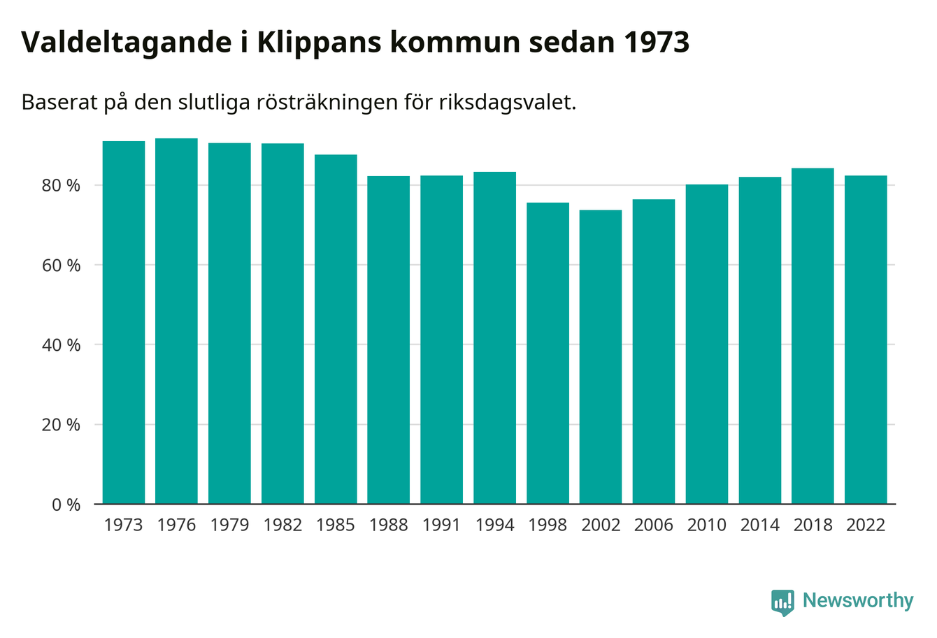 Klippan tillhör Skåne läns norra och östra valkrets. Där var valdeltagandet förra valet 84,0 procent. I hela riket landade valdeltagandet 2022 på 84,21 procent, att jämföra med 87,18 procent 2018.