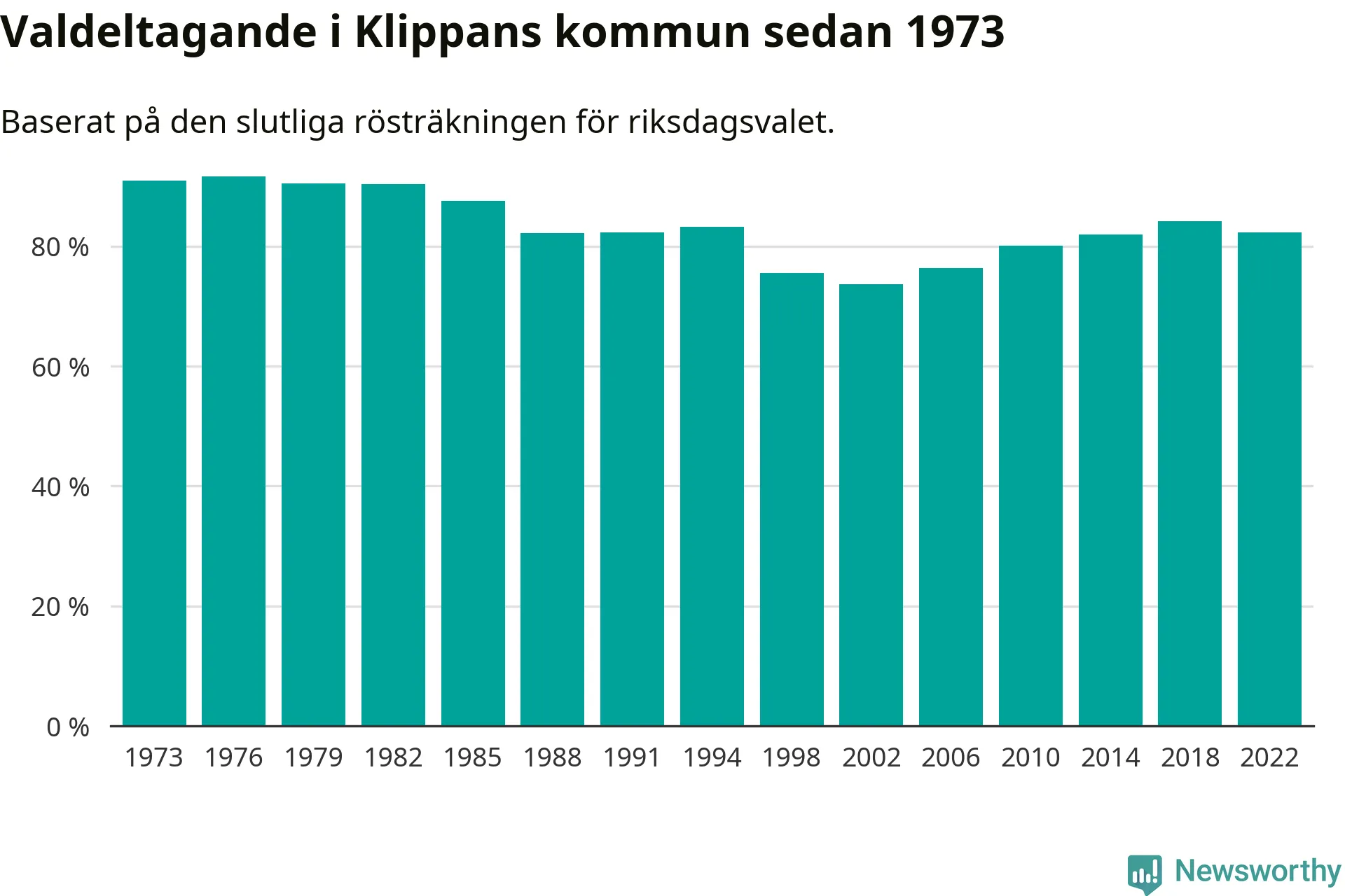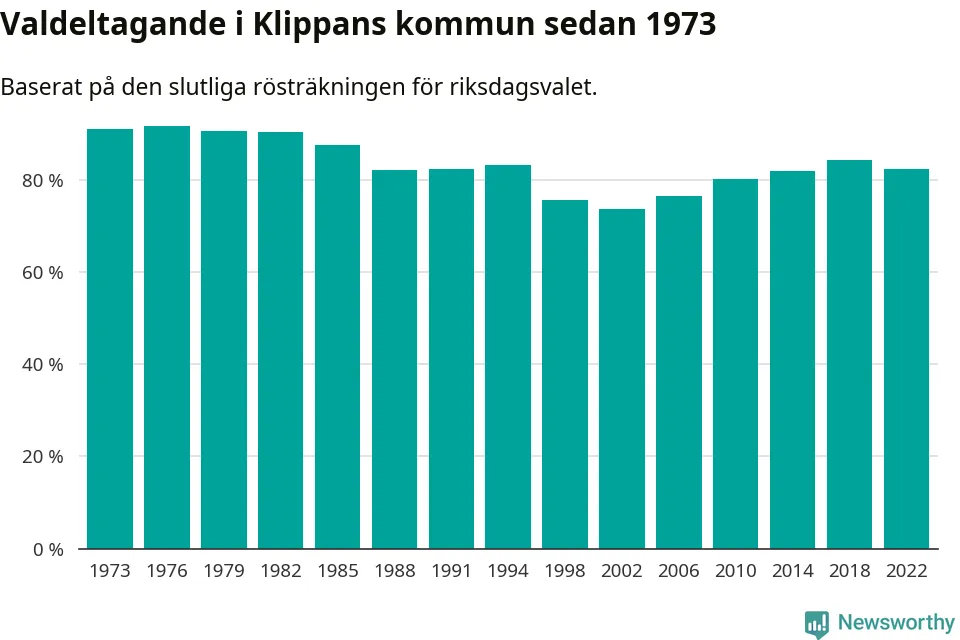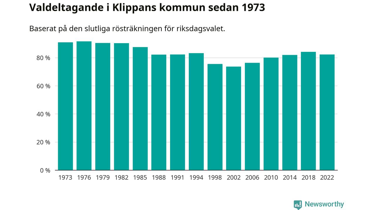 Valdeltagande i riksdagsvalet, i valdistrikten i Klippan