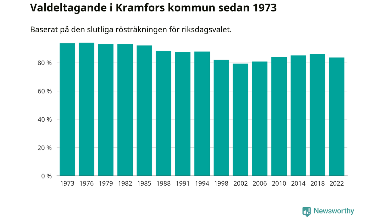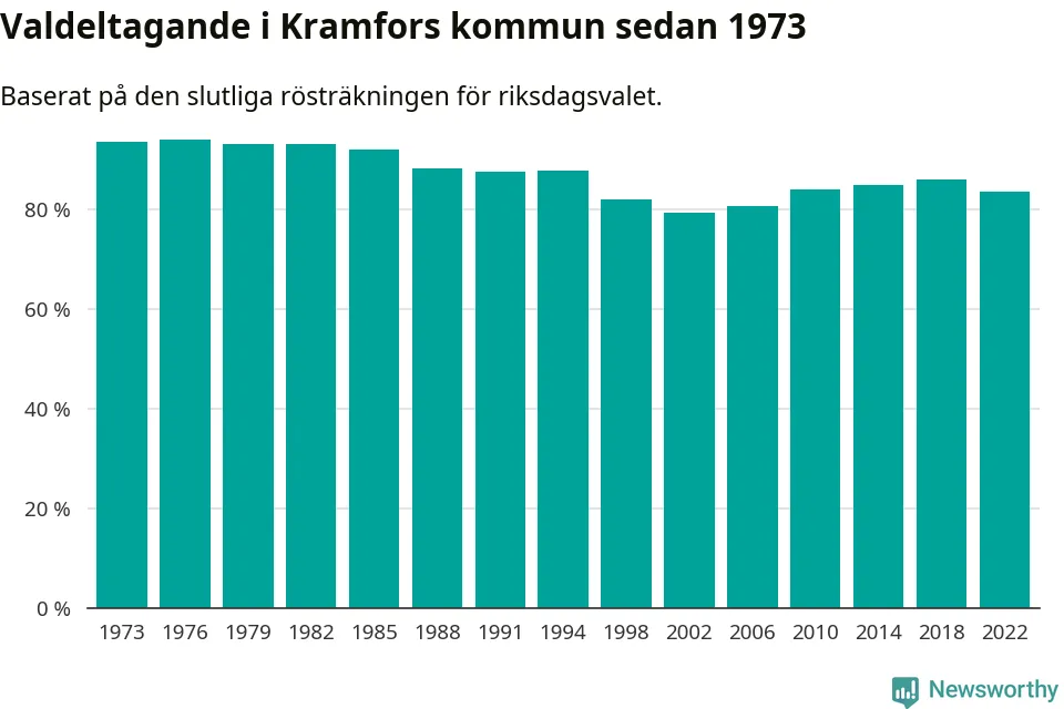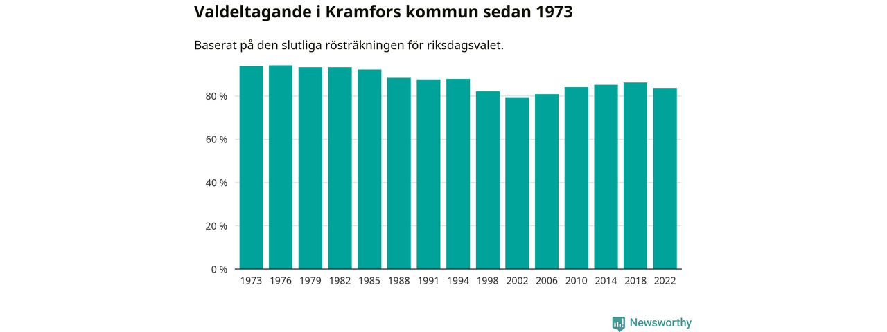 Kramfors tillhör Västernorrlands läns valkrets. Där var valdeltagandet förra valet 85,2 procent. I hela riket landade valdeltagandet 2022 på 84,21 procent, att jämföra med 87,18 procent 2018.