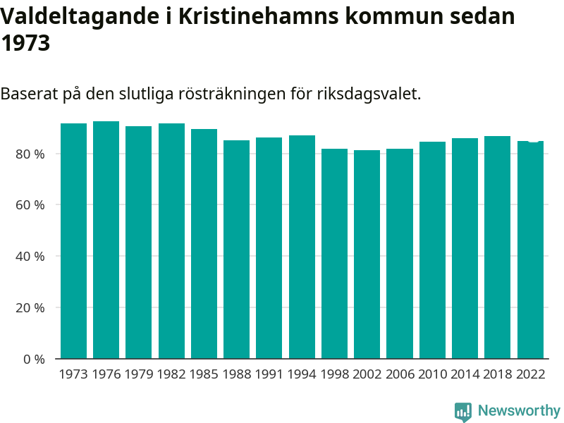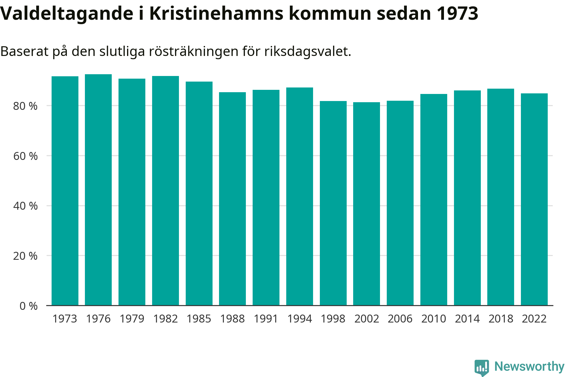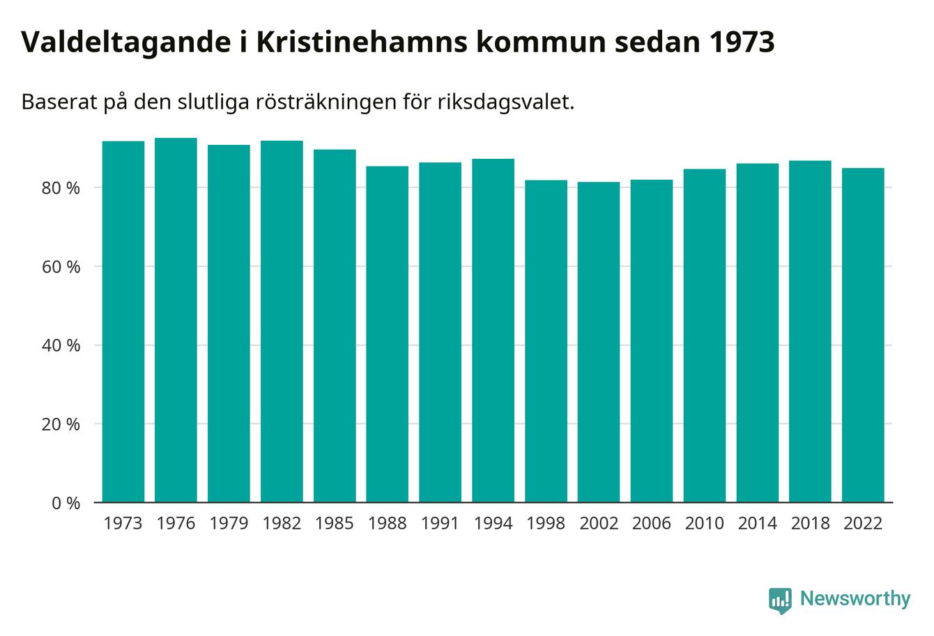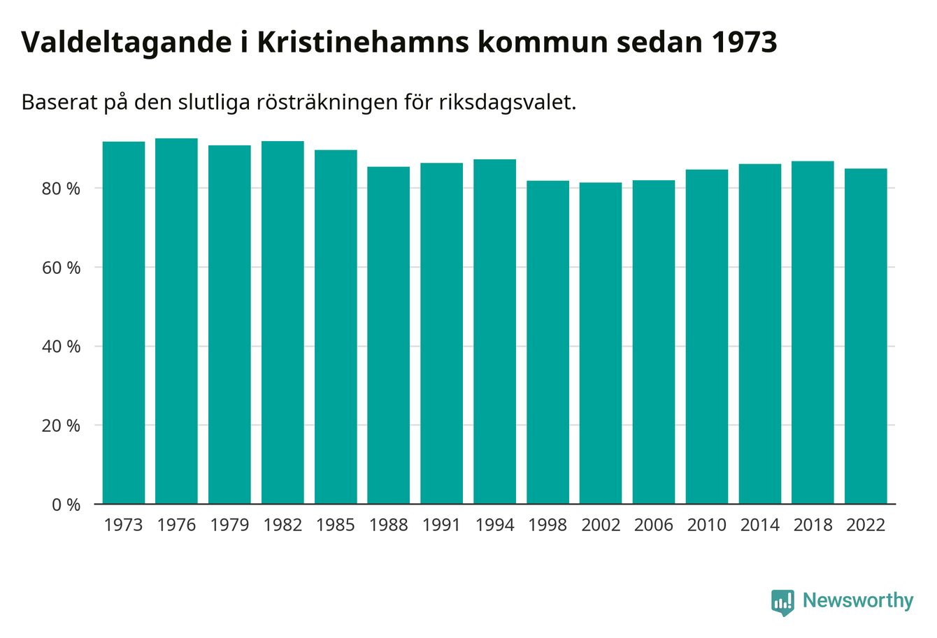 Kristinehamn tillhör Värmlands läns valkrets. Där var valdeltagandet förra valet 85,2 procent. I hela riket landade valdeltagandet 2022 på 84,21 procent, att jämföra med 87,18 procent 2018.