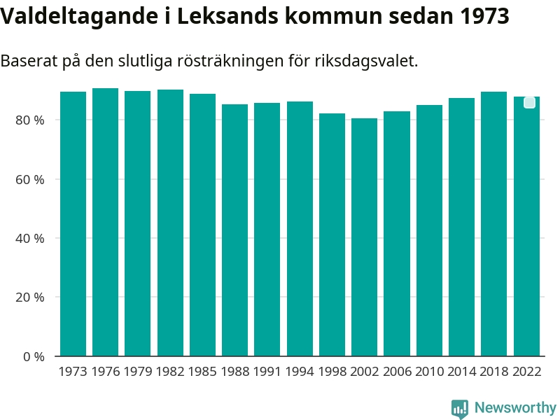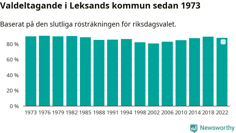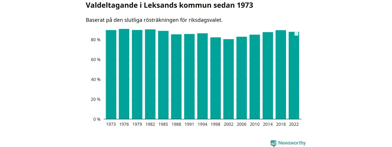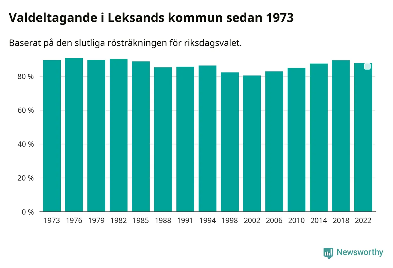 Leksand tillhör Dalarnas läns valkrets. Där var valdeltagandet förra valet 85,4 procent. I hela riket landade valdeltagandet 2022 på 84,21 procent, att jämföra med 87,18 procent 2018.