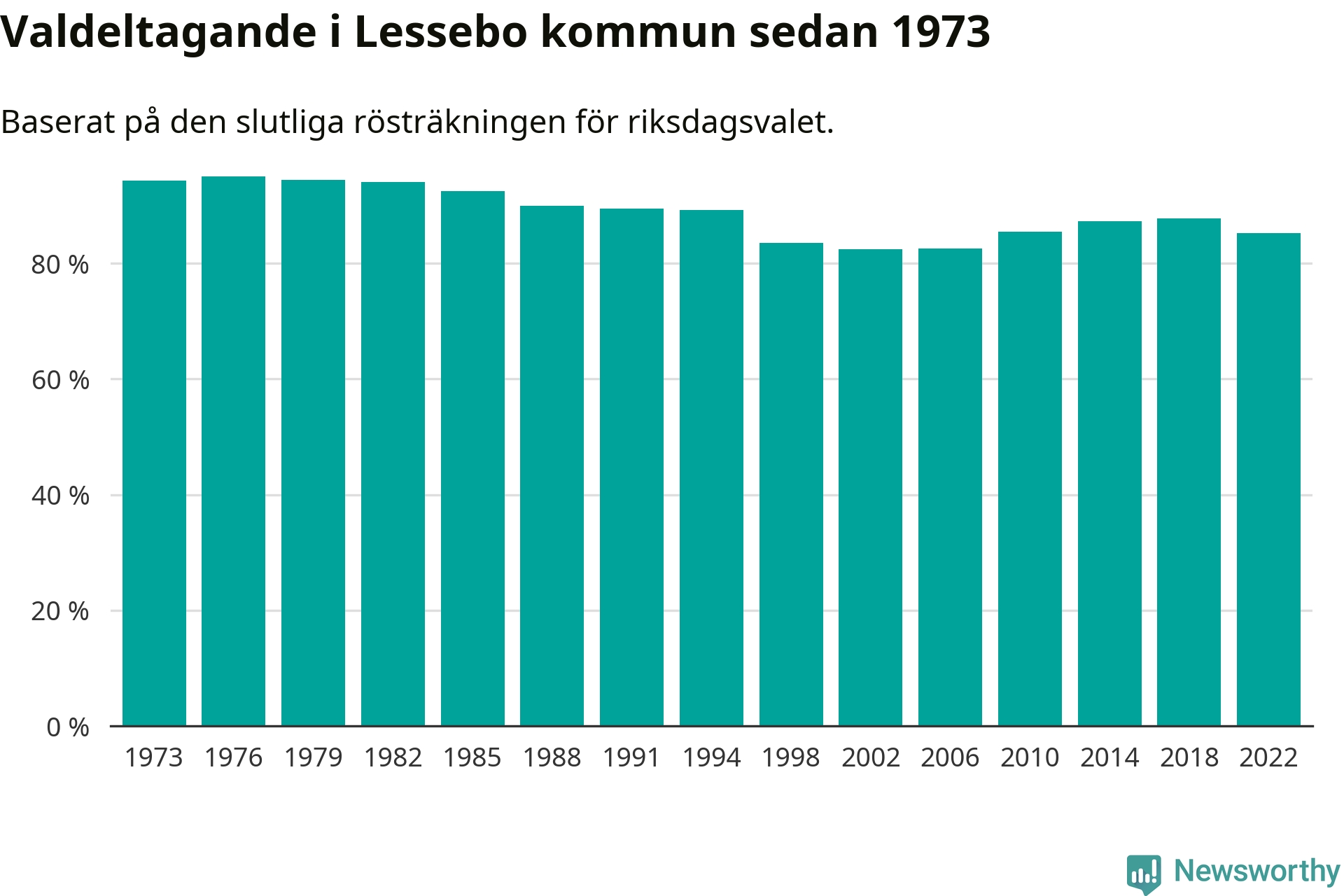 Valdeltagande i riksdagsvalet, i valdistrikten i Lessebo