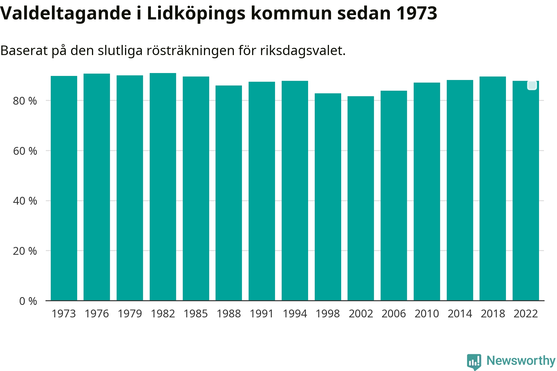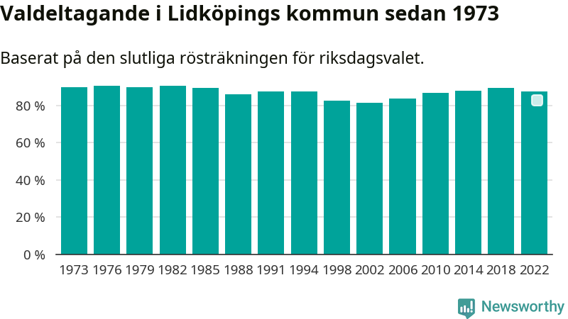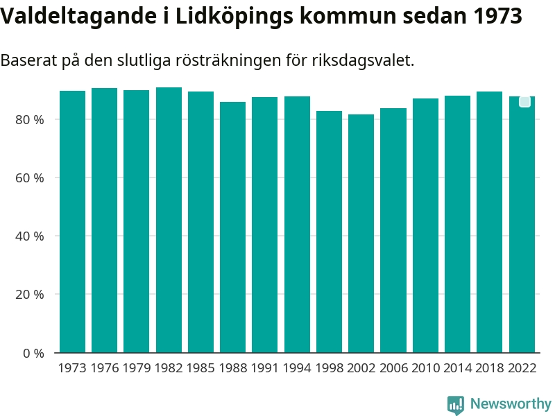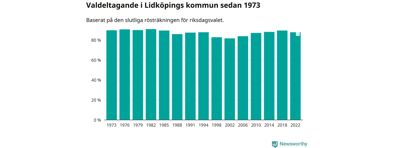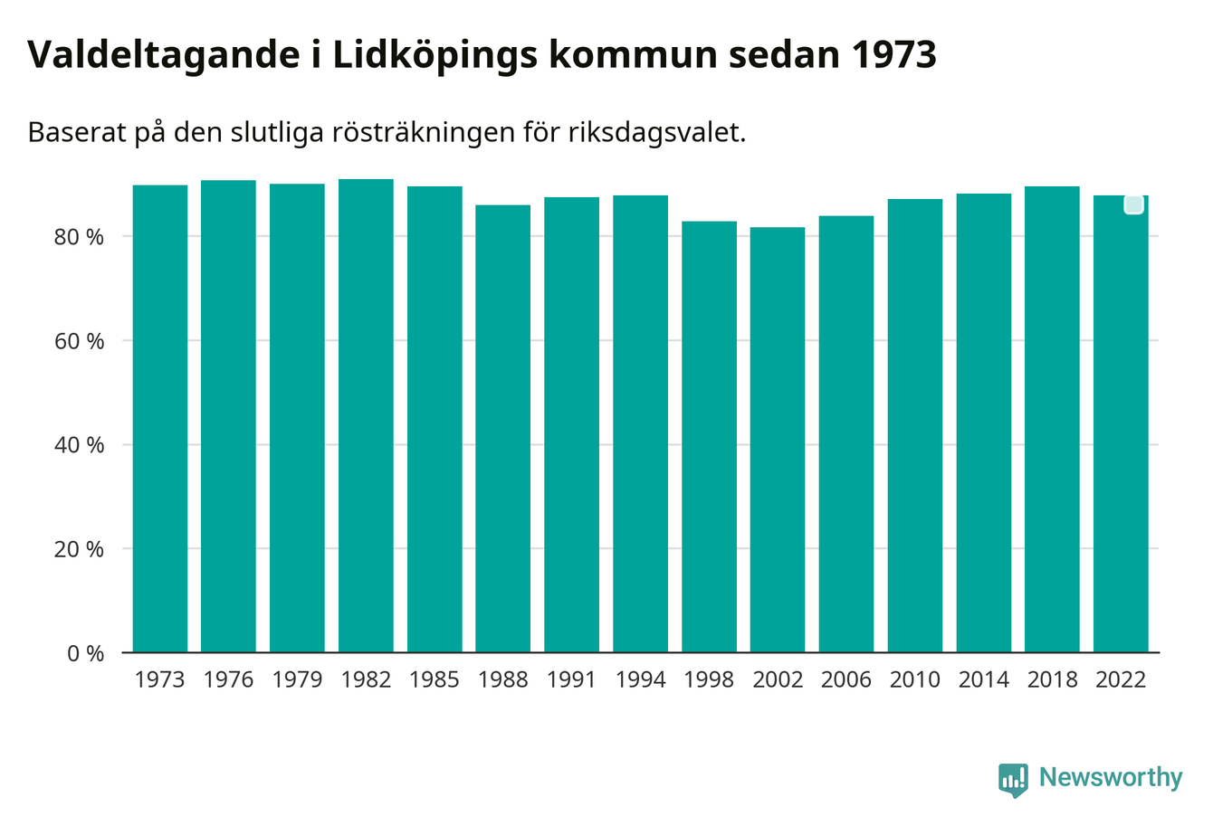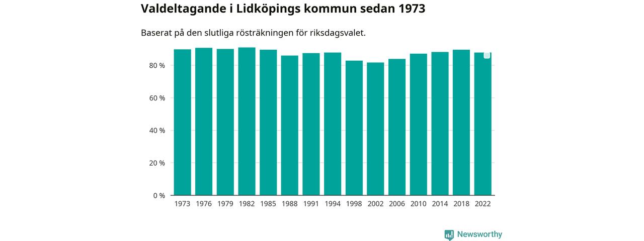 Lidköping tillhör Västra Götalands läns östra valkrets. Där var valdeltagandet förra valet 86,1 procent. I hela riket landade valdeltagandet 2022 på 84,21 procent, att jämföra med 87,18 procent 2018.