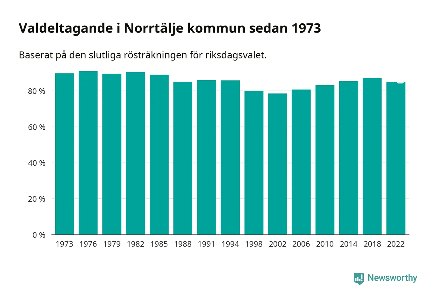 Norrtälje tillhör Stockholms läns valkrets. Där var valdeltagandet förra valet 82,5 procent. I hela riket landade valdeltagandet 2022 på 84,21 procent, att jämföra med 87,18 procent 2018.