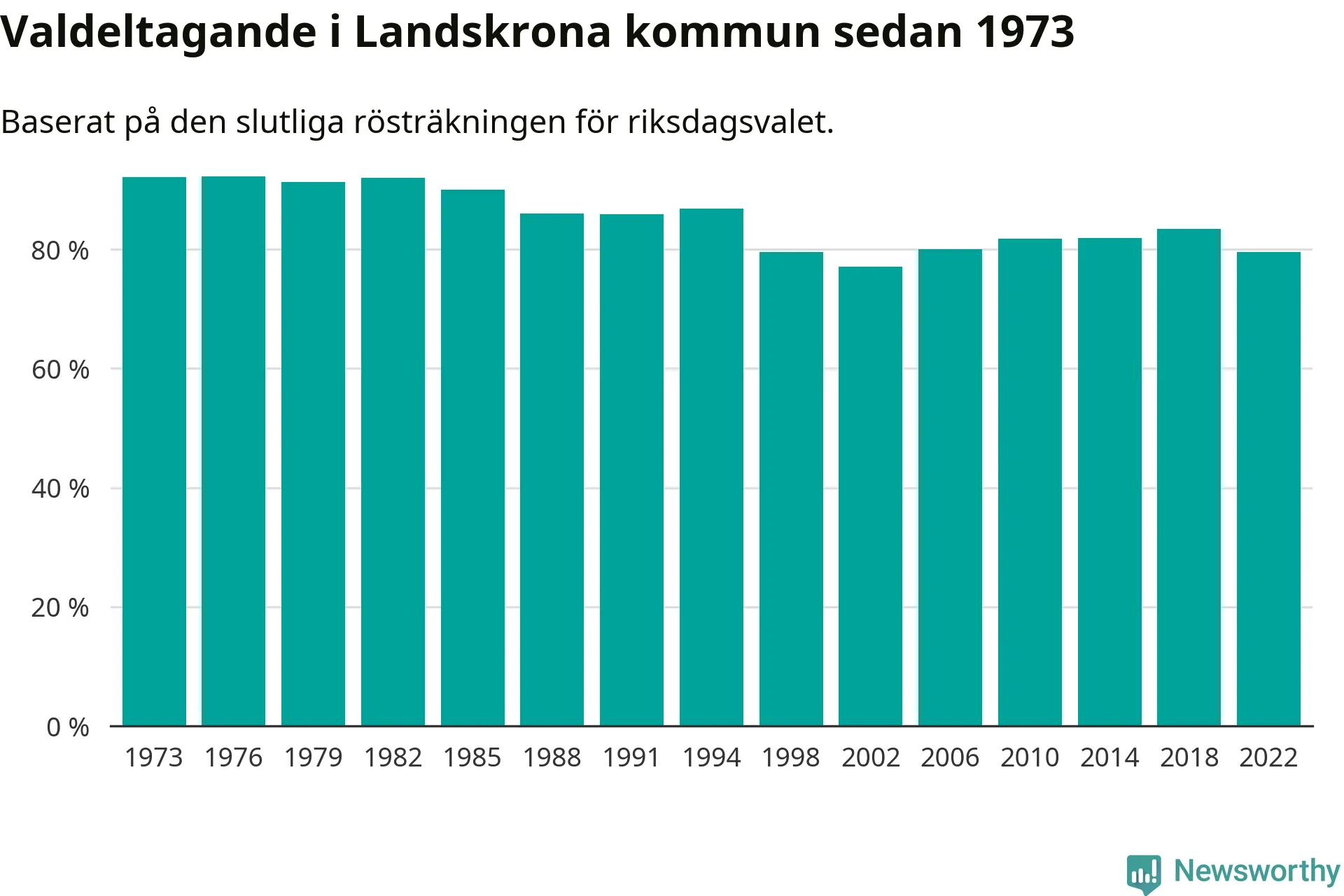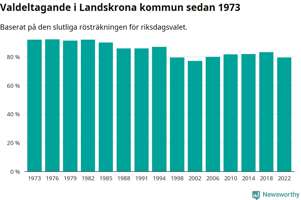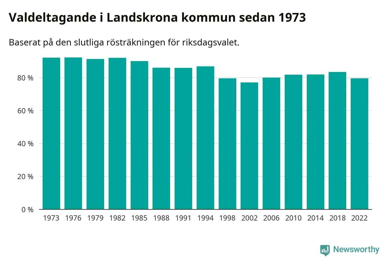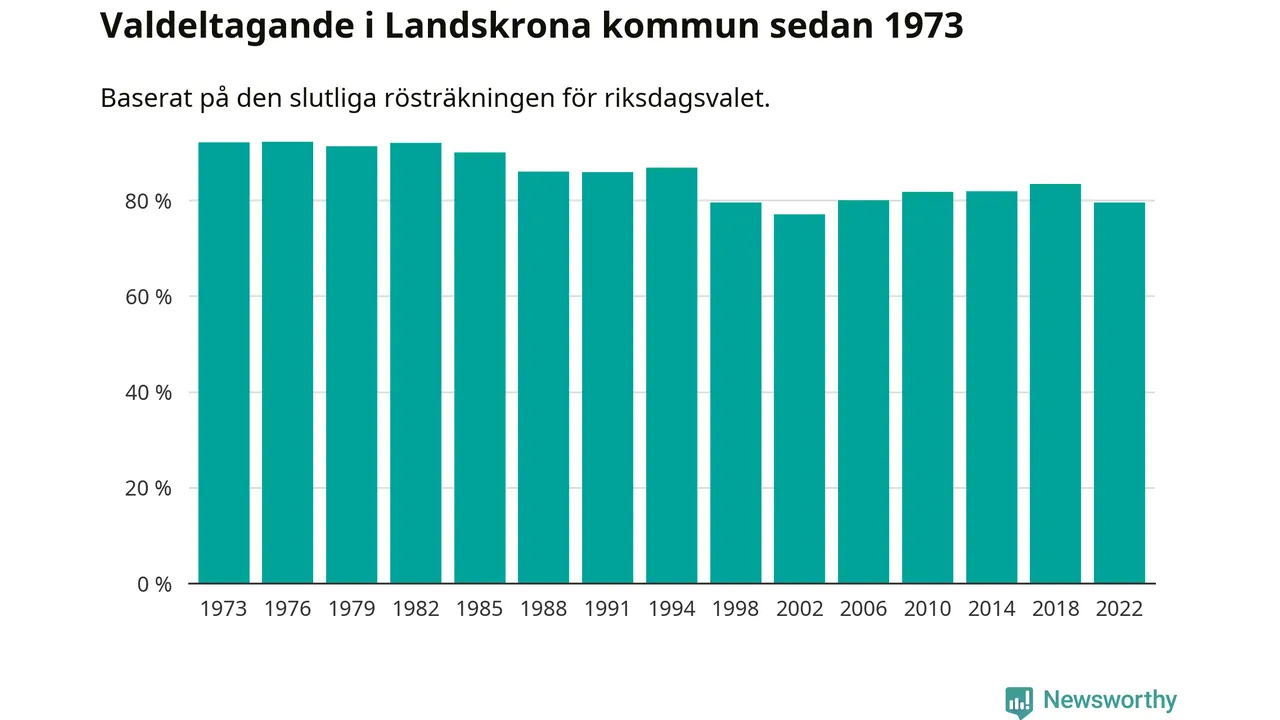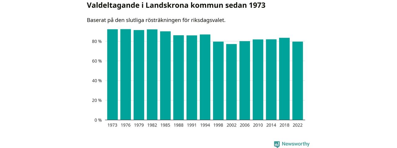 Landskrona tillhör Skåne läns västra valkrets. Där var valdeltagandet förra valet 81,9 procent. I hela riket landade valdeltagandet 2022 på 84,21 procent, att jämföra med 87,18 procent 2018.