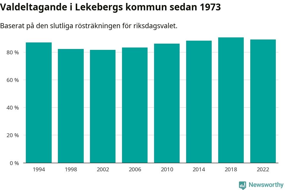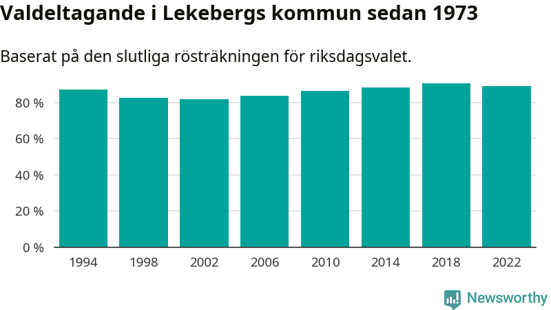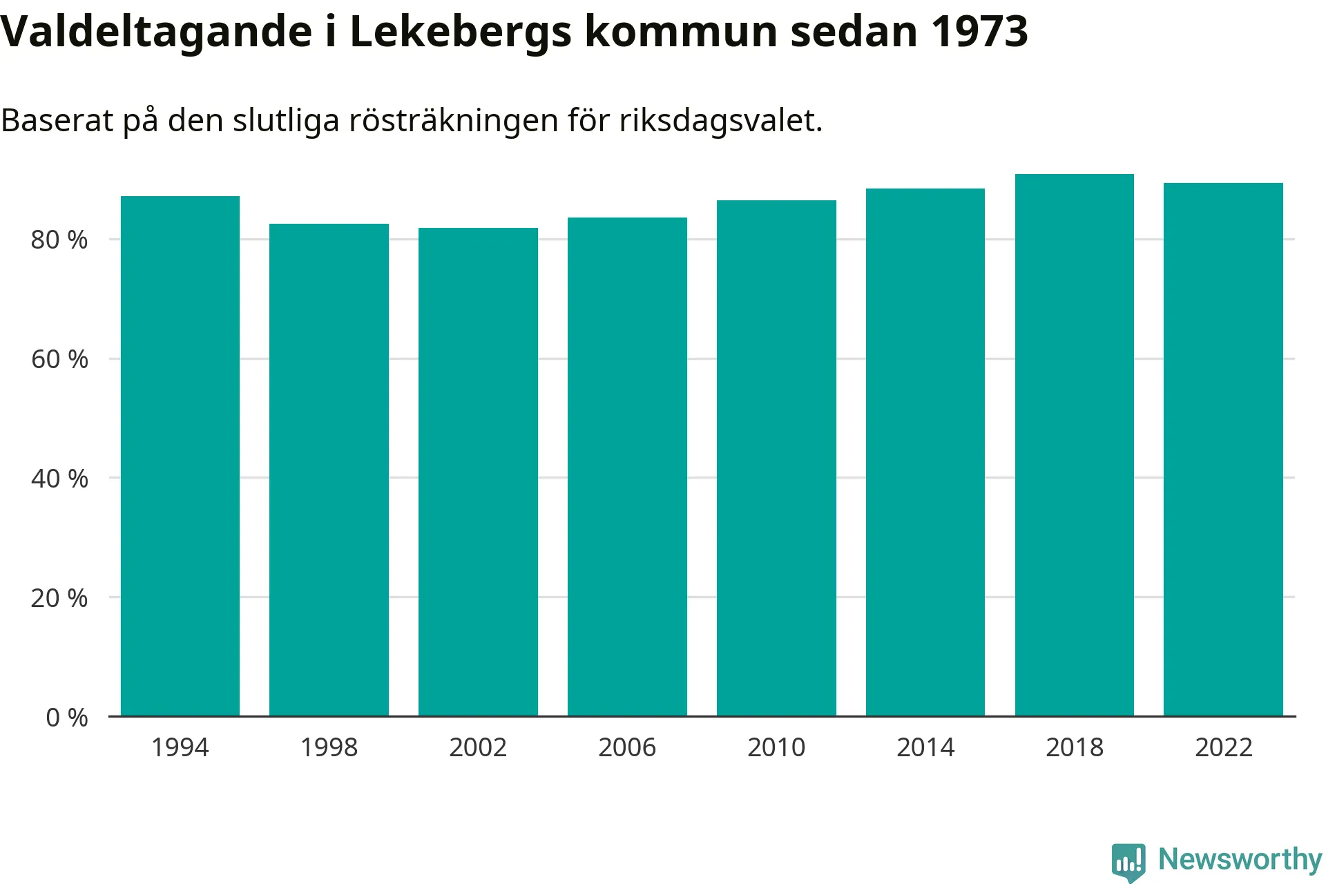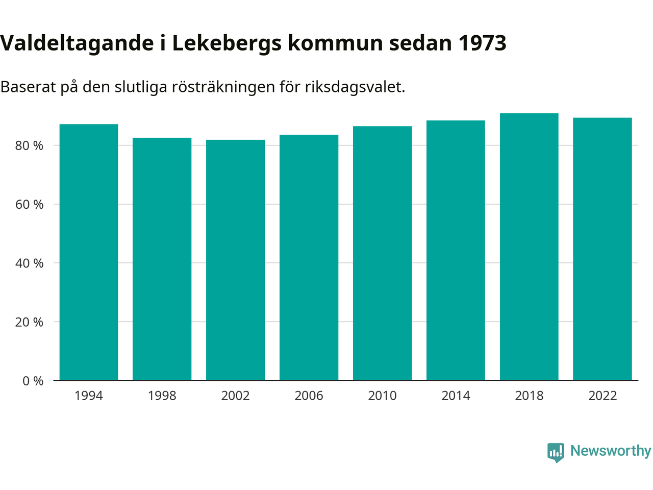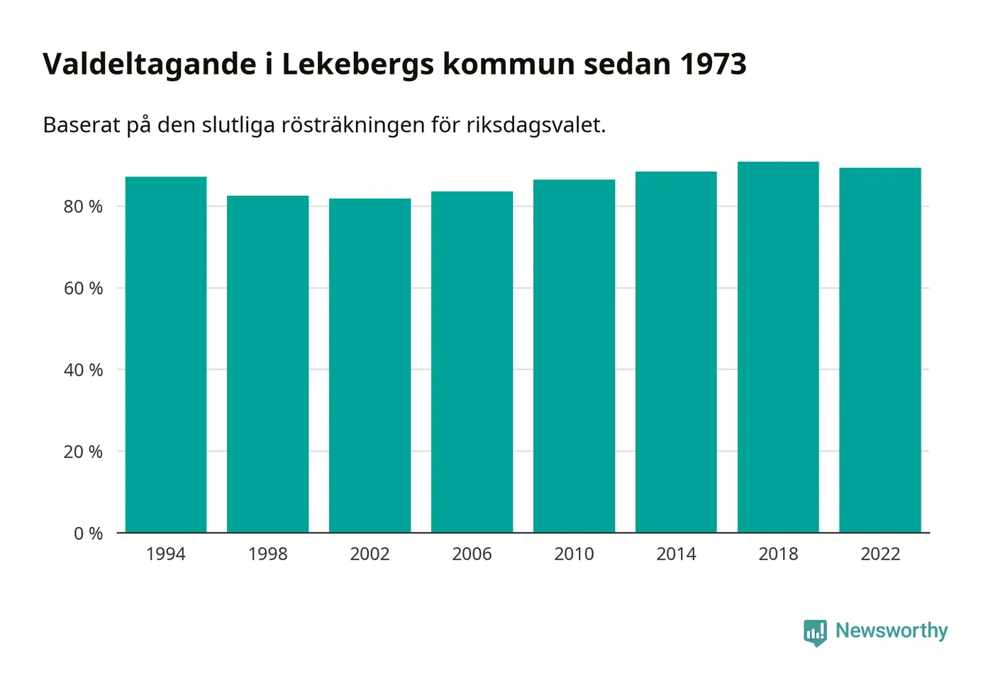 I höst går 6 373 Lekebergsbor till val. Sist landade valdeltagandet på 89 procent, en minskning för första gången sedan 2002 i kommunen.