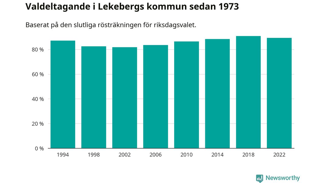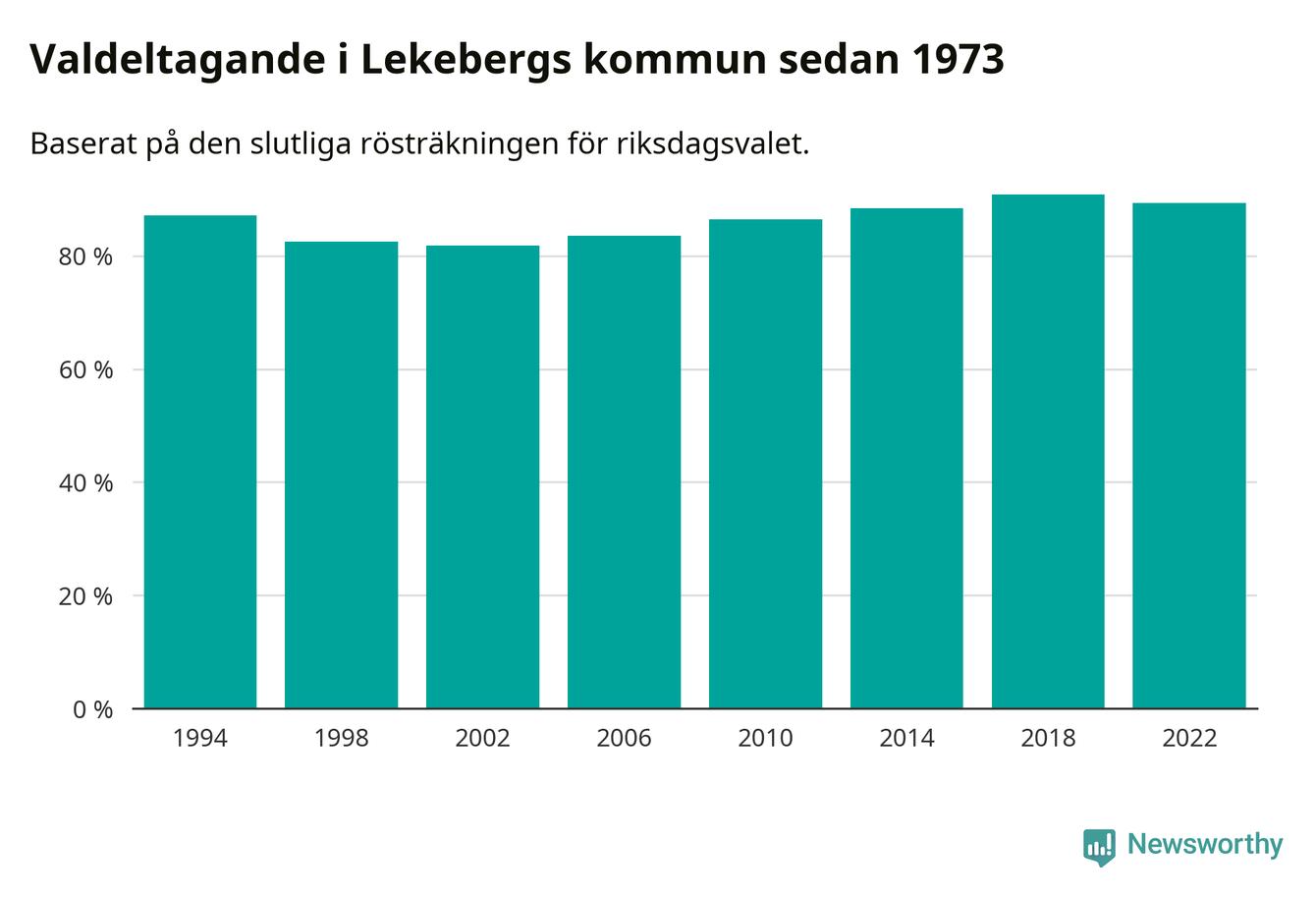 Lekeberg tillhör Örebro läns valkrets. Där var valdeltagandet förra valet 84,7 procent. I hela riket landade valdeltagandet 2022 på 84,21 procent, att jämföra med 87,18 procent 2018.