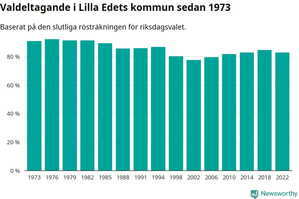 I höst går 10 613 Lilla Edetbor till val. Sist landade valdeltagandet på 83 procent, en minskning för första gången sedan 2002 i kommunen.
