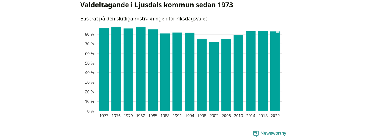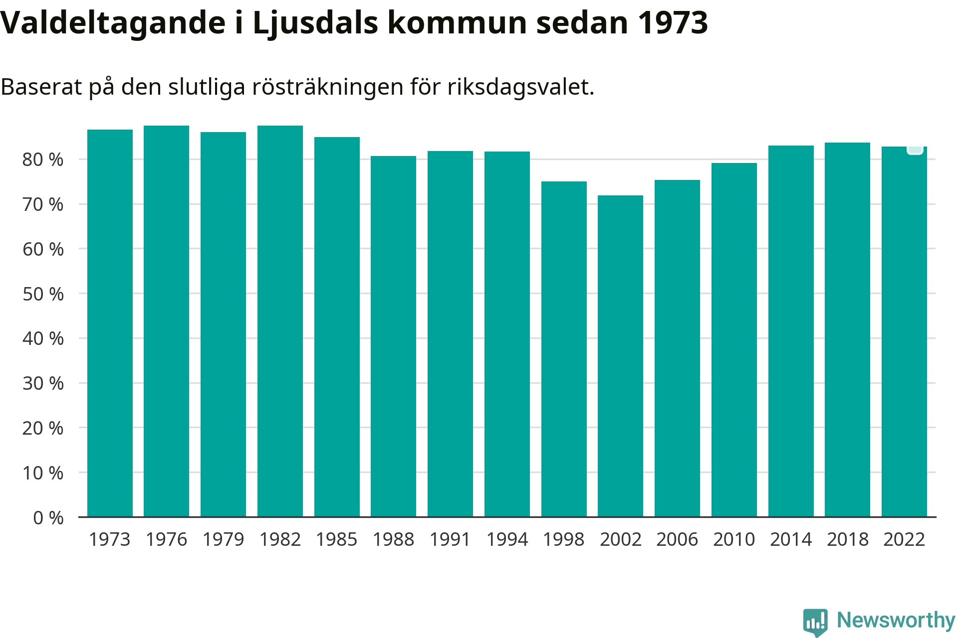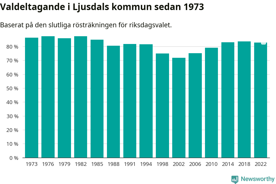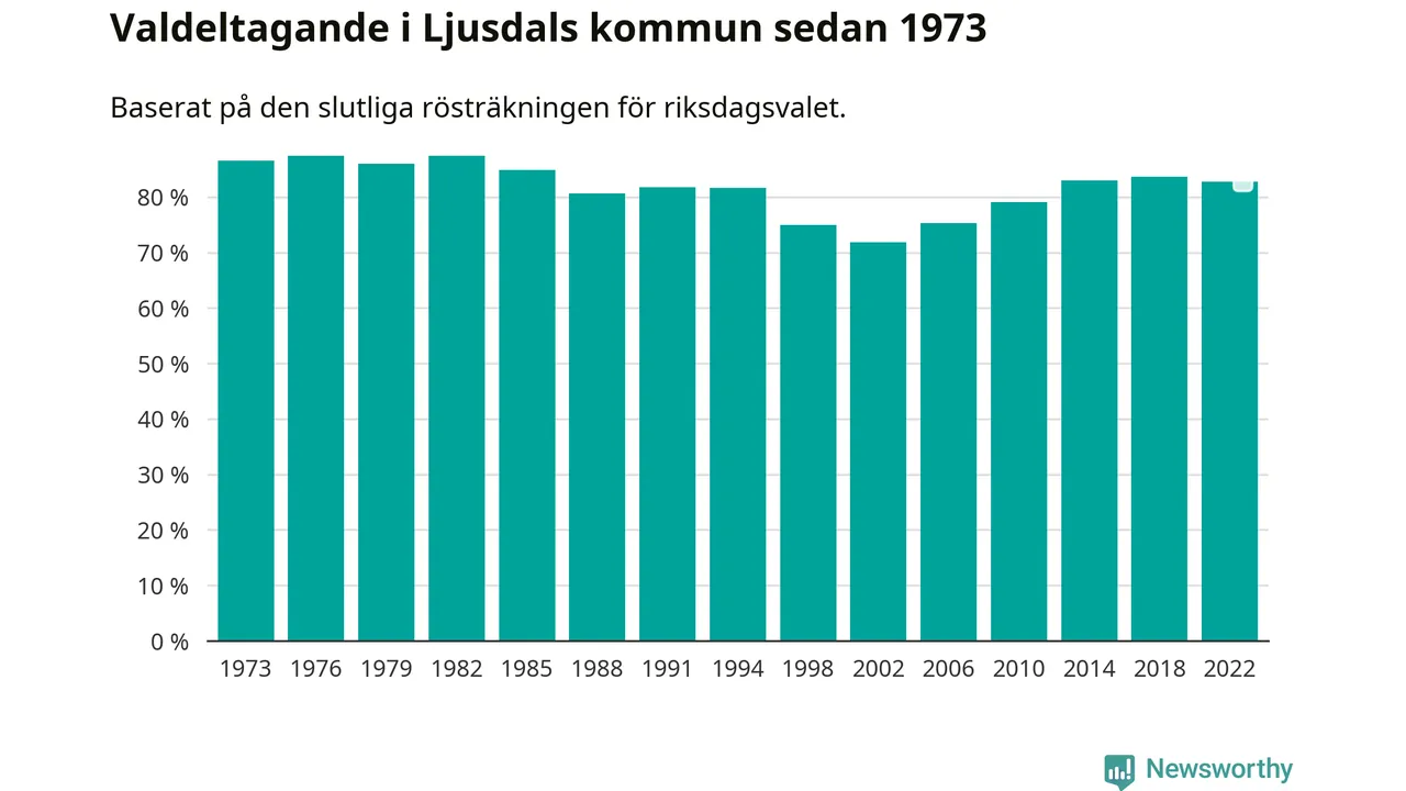 Ljusdal tillhör Gävleborgs läns valkrets. Där var valdeltagandet förra valet 83,5 procent. I hela riket landade valdeltagandet 2022 på 84,21 procent, att jämföra med 87,18 procent 2018.