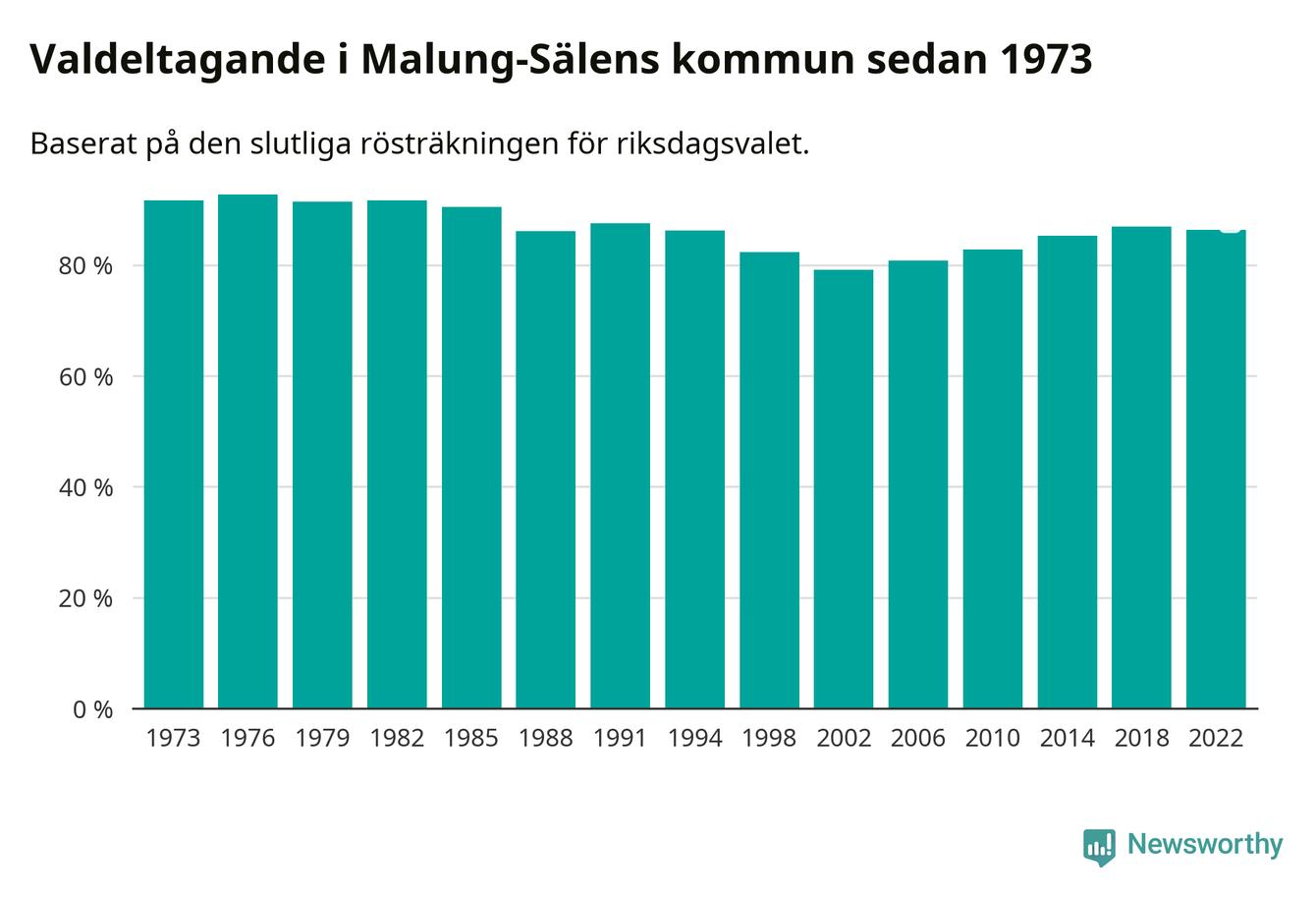 Valdeltagande i riksdagsvalet, i valdistrikten i Malung-Sälen