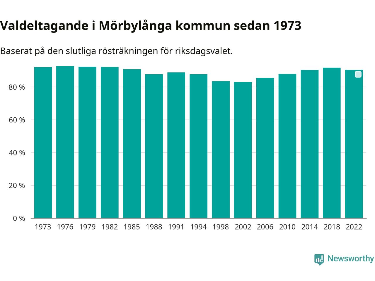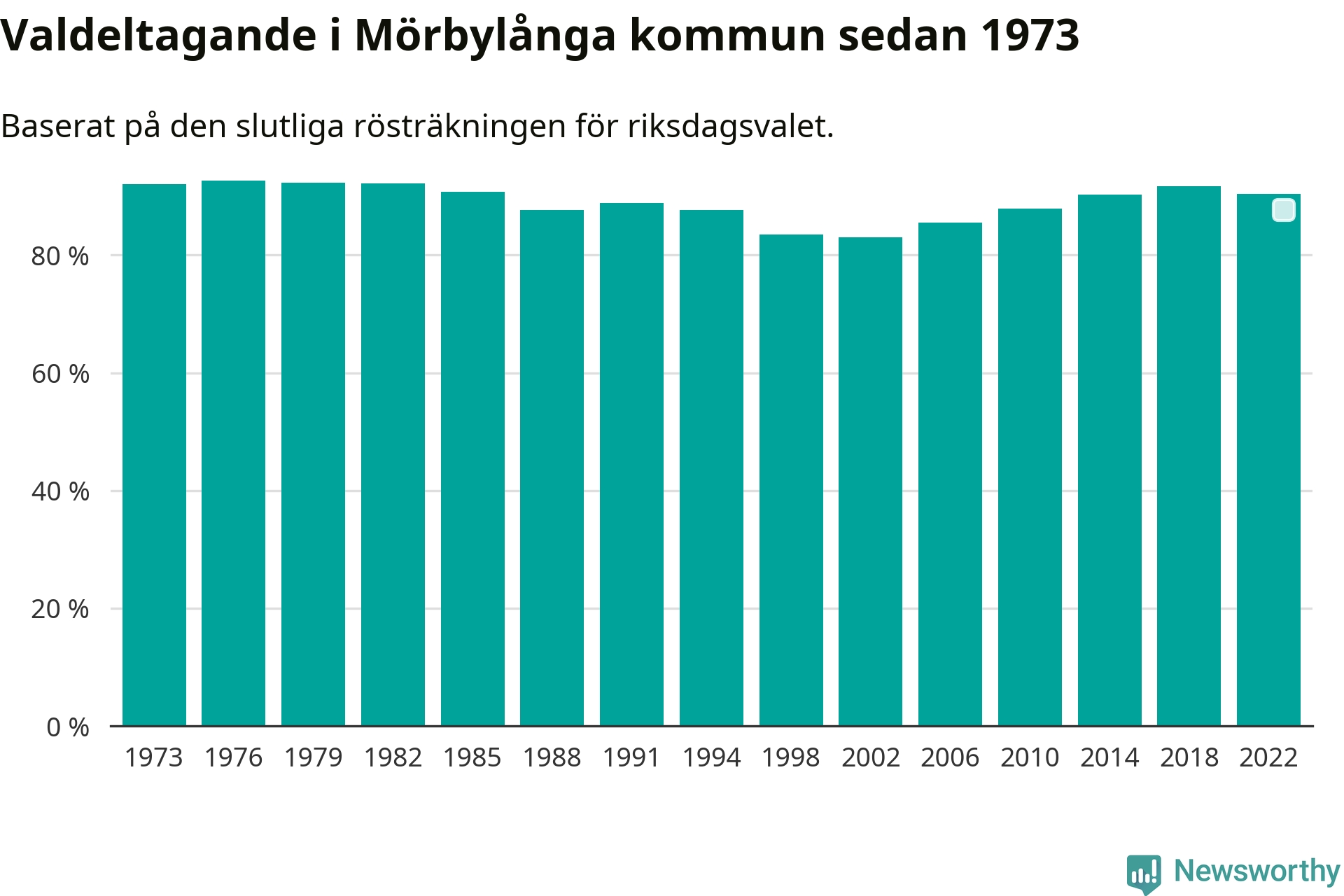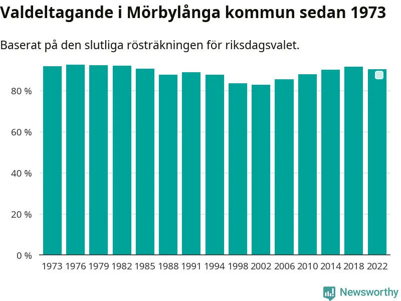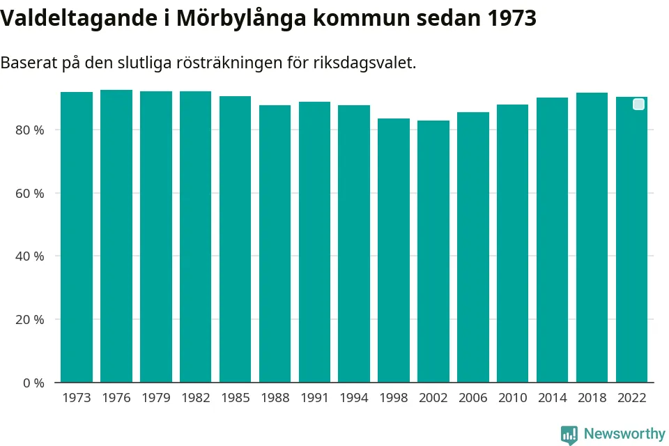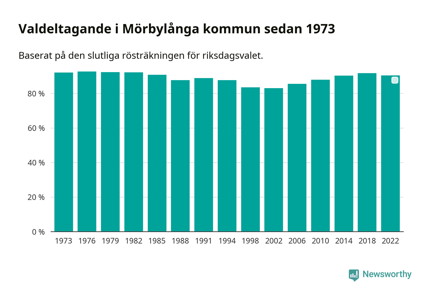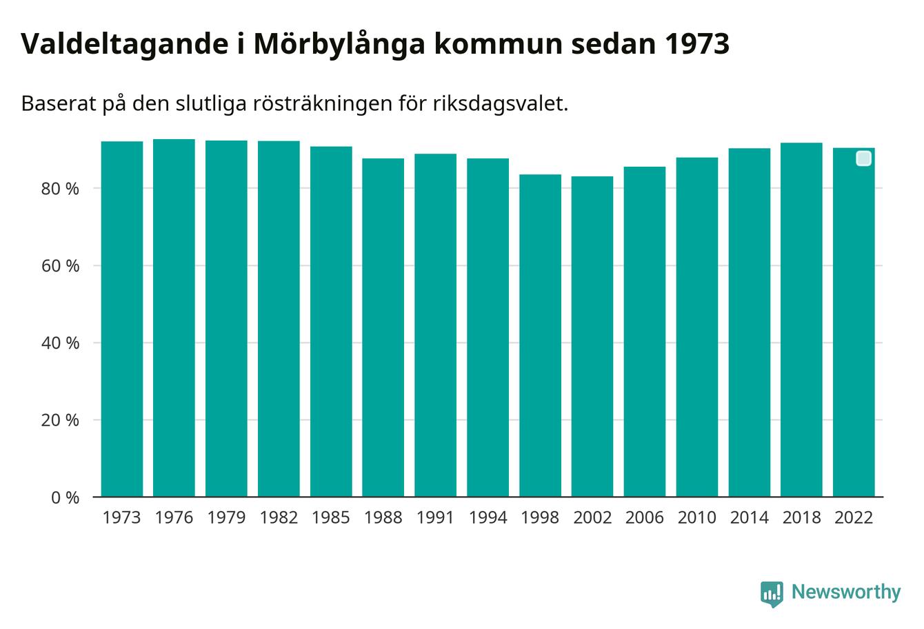 Mörbylånga hade det femte högsta valdeltagadet av alla kommuner i landet under 2022. Allra högst var det i Lomma kommun, 92,4 procent, medan bara 69,1 procent röstade i Haparanda kommun.