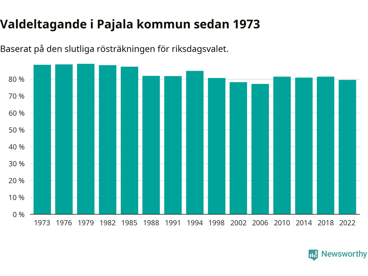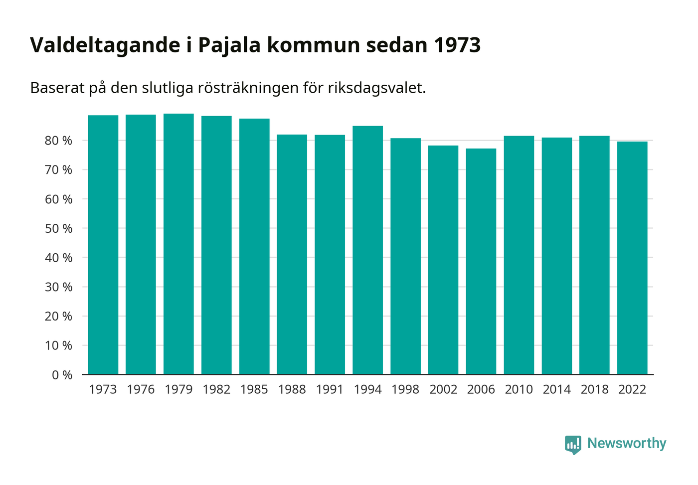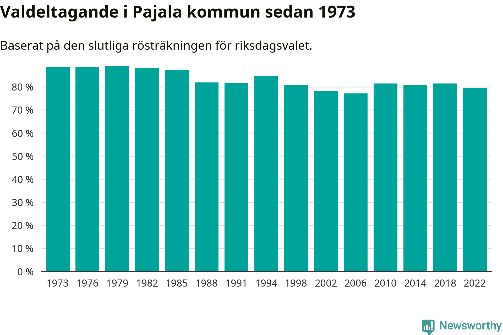 Valdeltagande i riksdagsvalet, i valdistrikten i Pajala