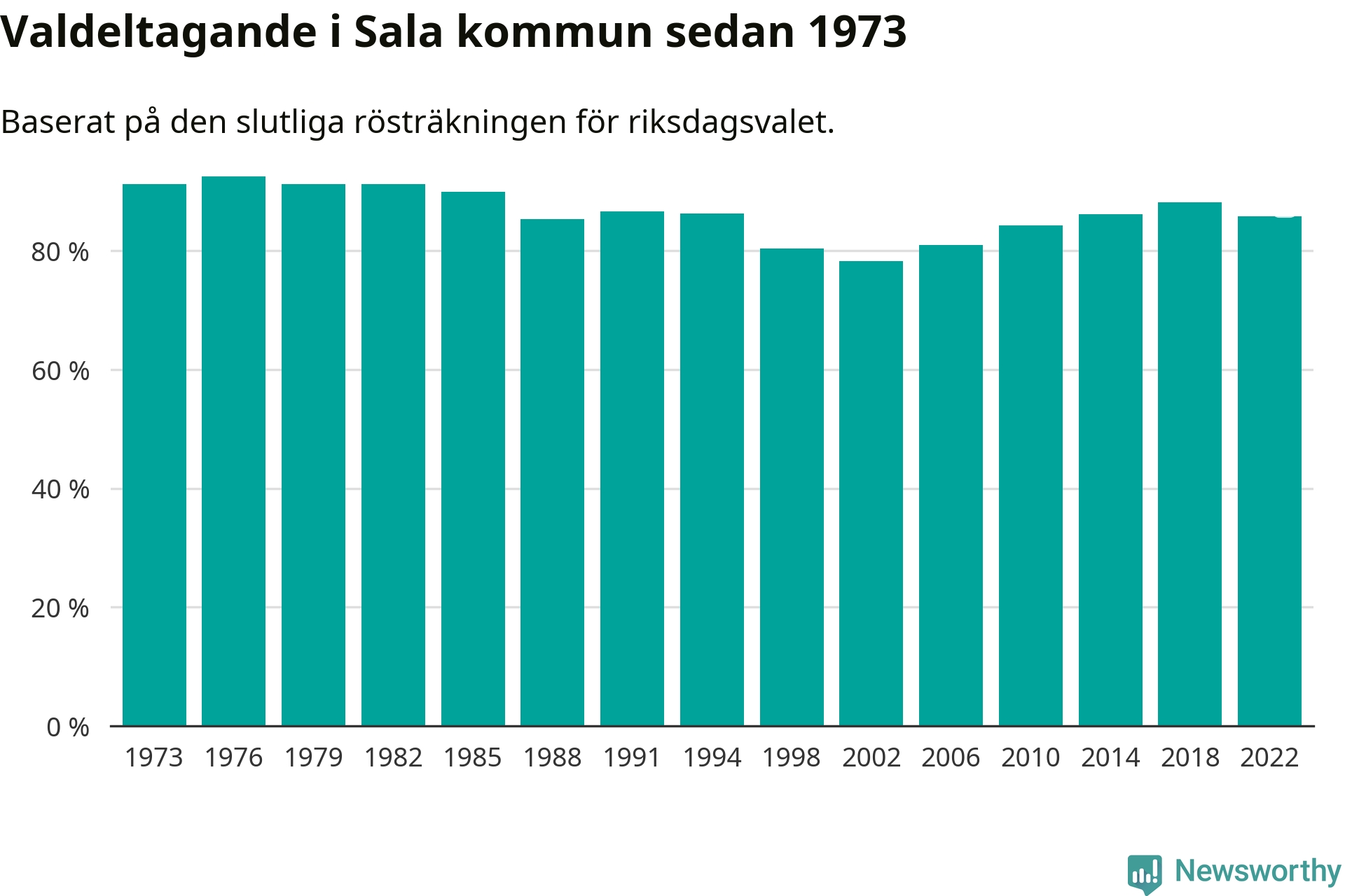 I höst går 17 558 Salabor till val. Sist landade valdeltagandet på 86 procent, en minskning för första gången sedan 2002 i kommunen.
