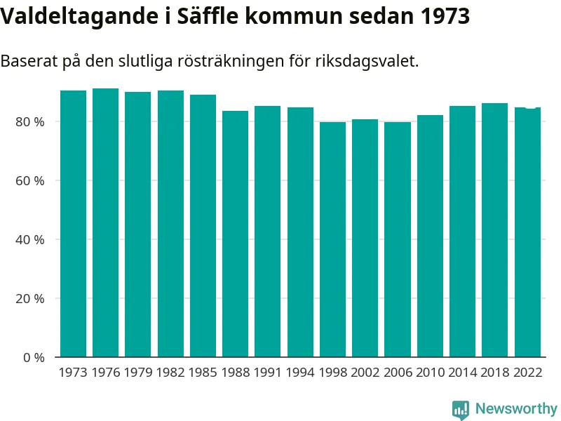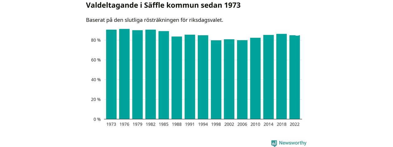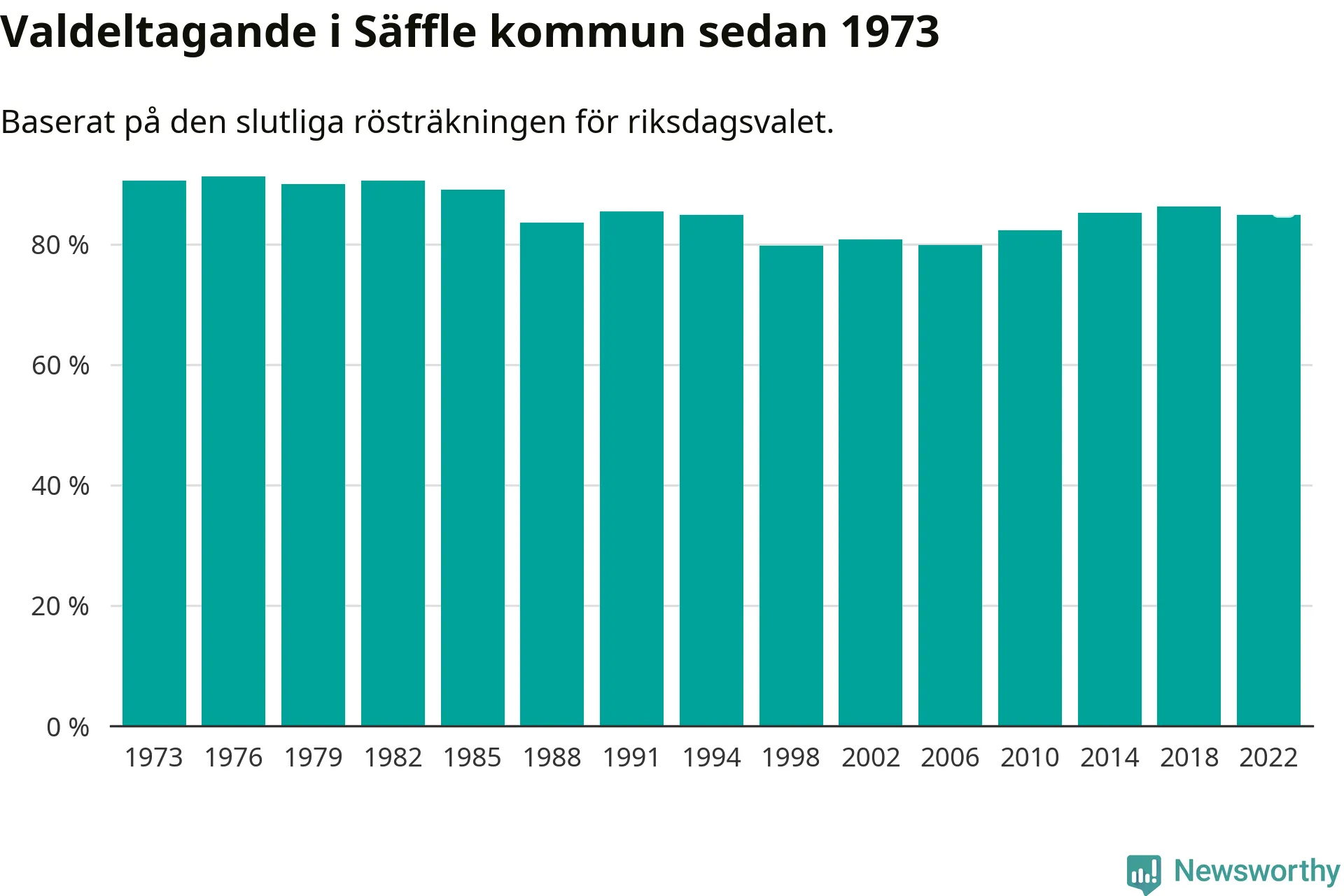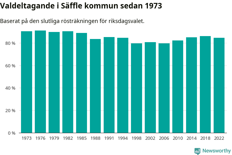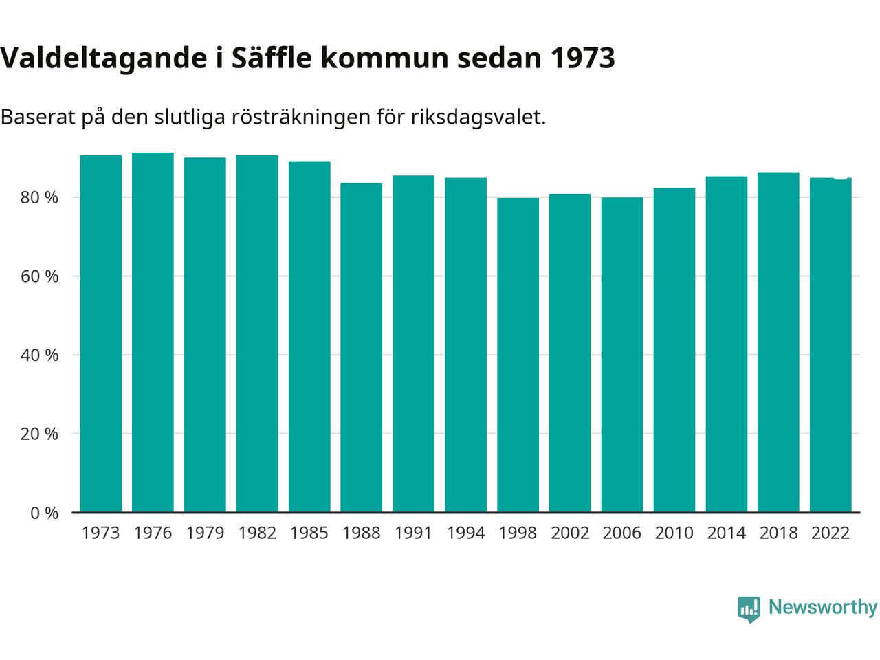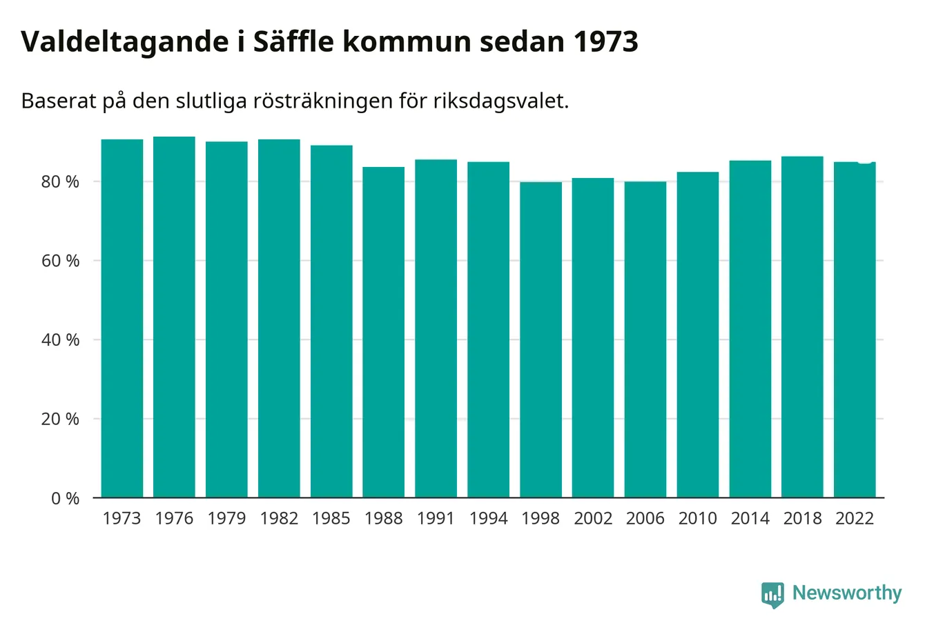 Säffle tillhör Värmlands läns valkrets. Där var valdeltagandet förra valet 85,2 procent. I hela riket landade valdeltagandet 2022 på 84,21 procent, att jämföra med 87,18 procent 2018.