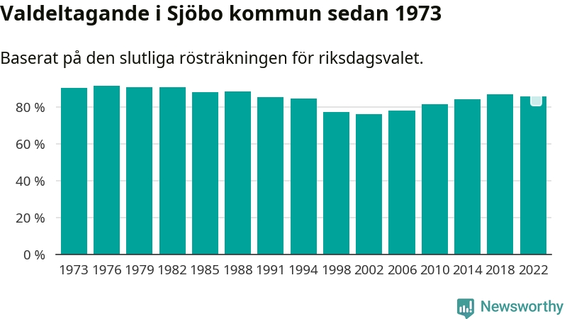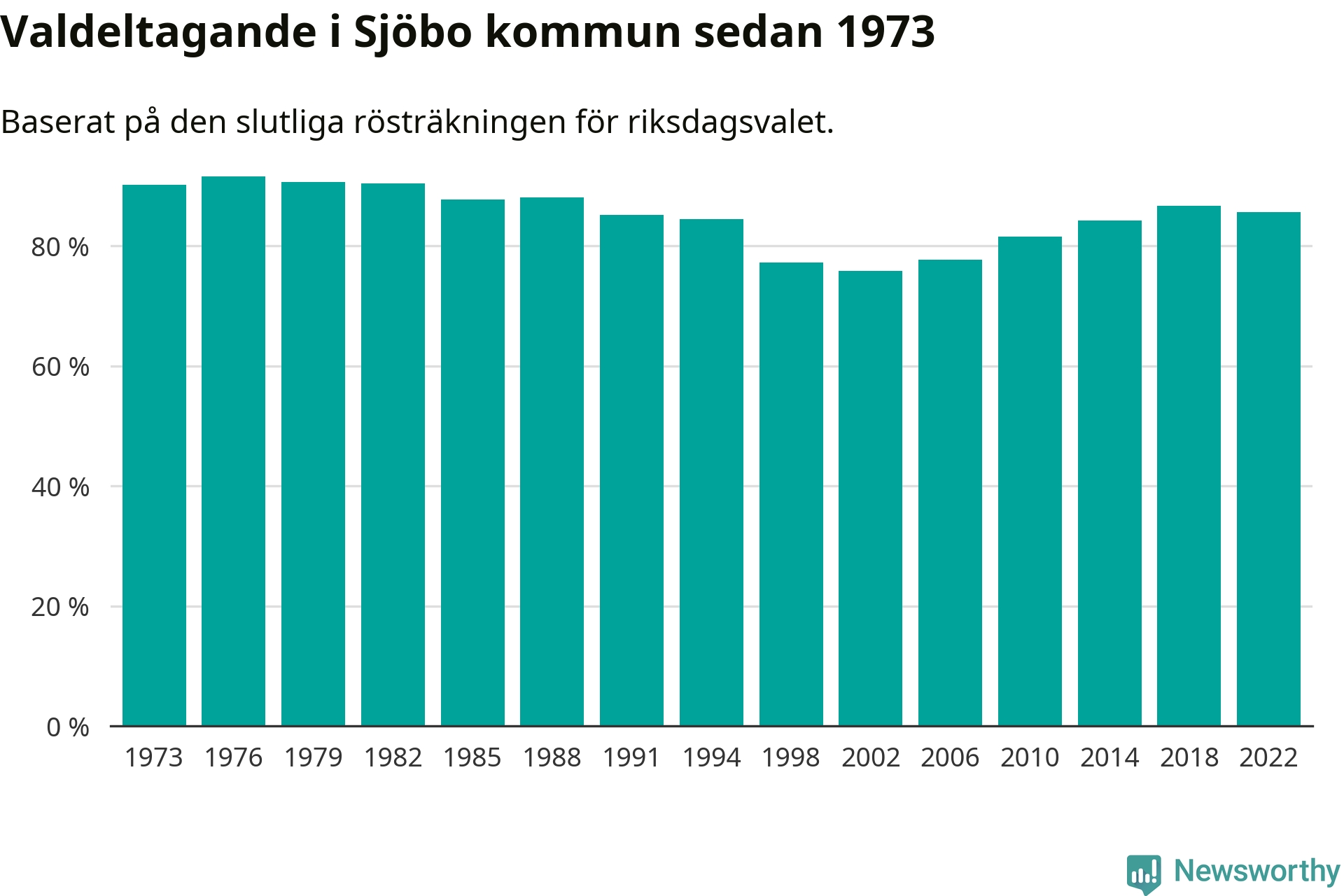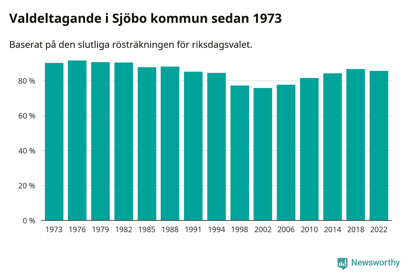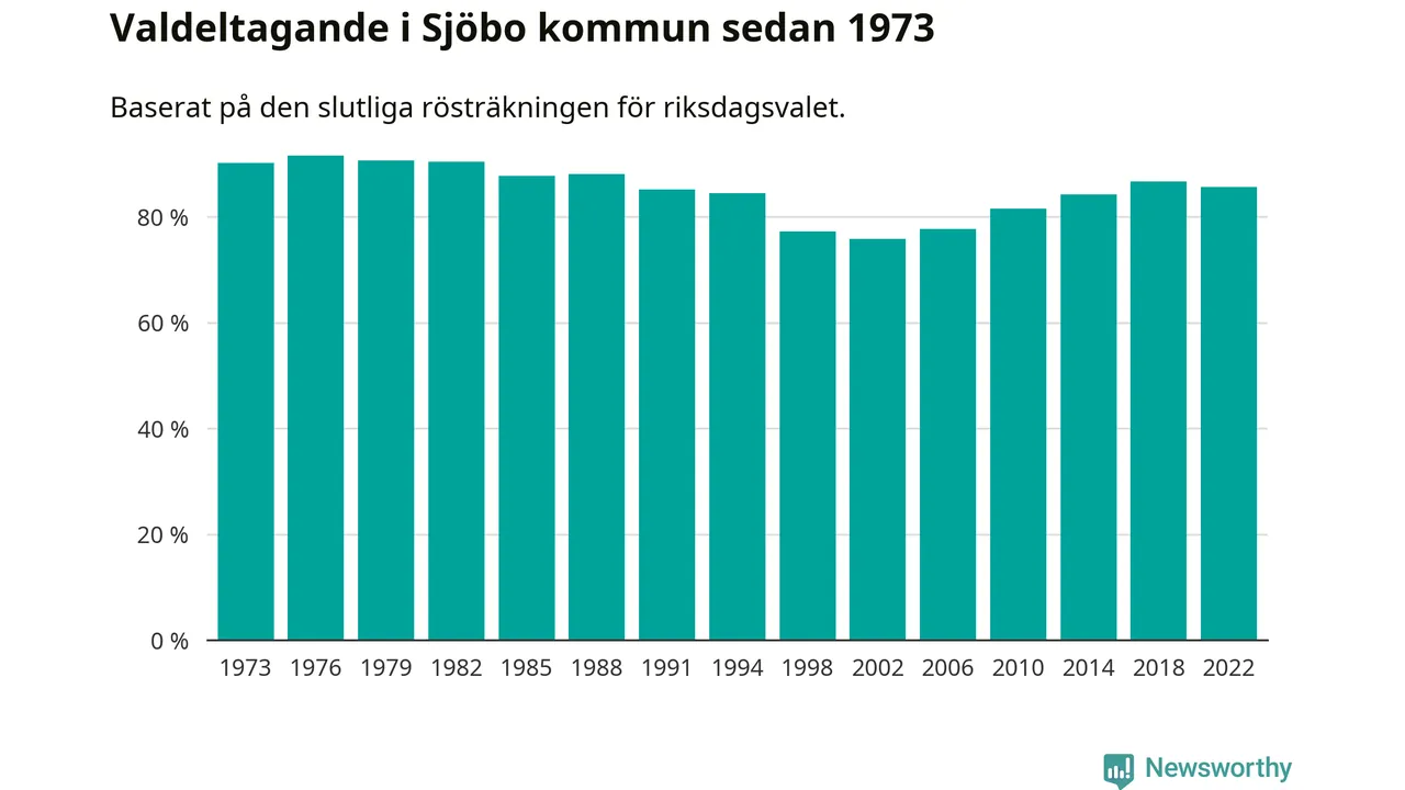 I höst går 14 905 Sjöbobor till val. Sist landade valdeltagandet på 86 procent, en minskning för första gången sedan 2002 i kommunen.