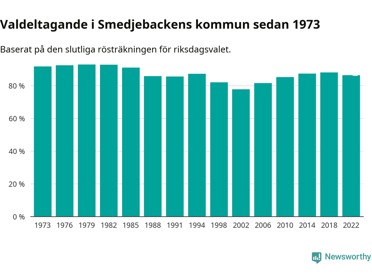 I höst går 8 631 Smedjebackensbor till val. Sist landade valdeltagandet på 86 procent, en minskning för första gången sedan 2002 i kommunen.