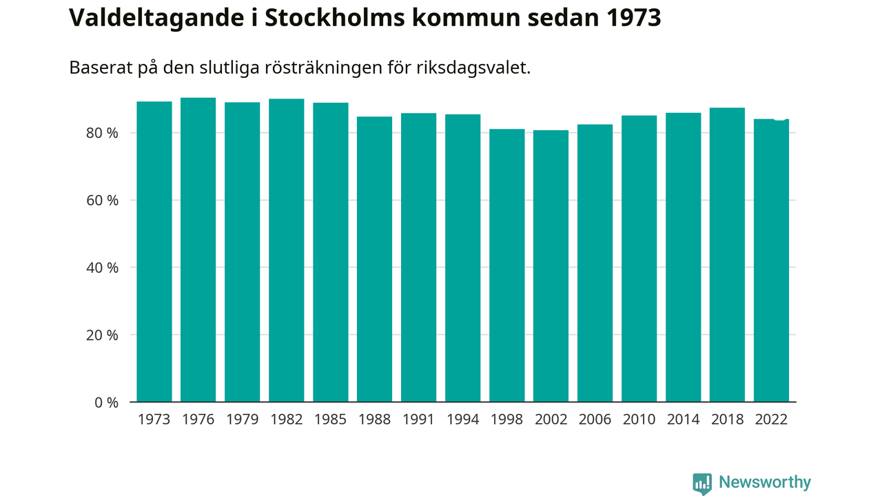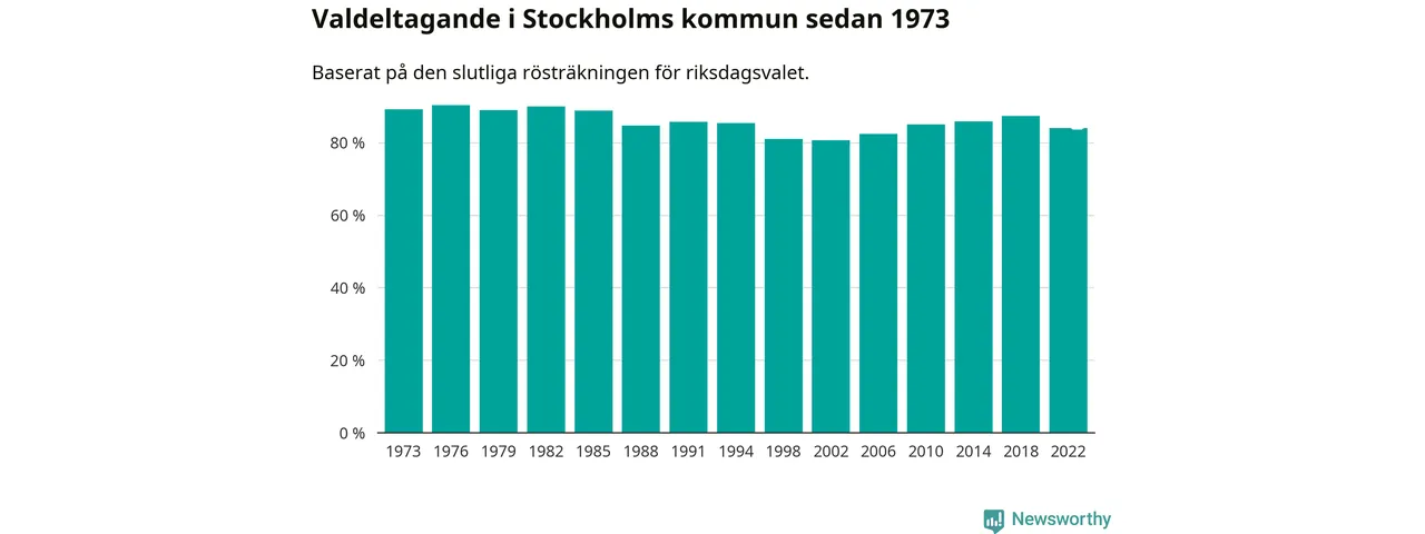 I höst går 757 415 stockholmare till val. Sist landade valdeltagandet på 84 procent, en minskning för första gången sedan 2002 i kommunen.