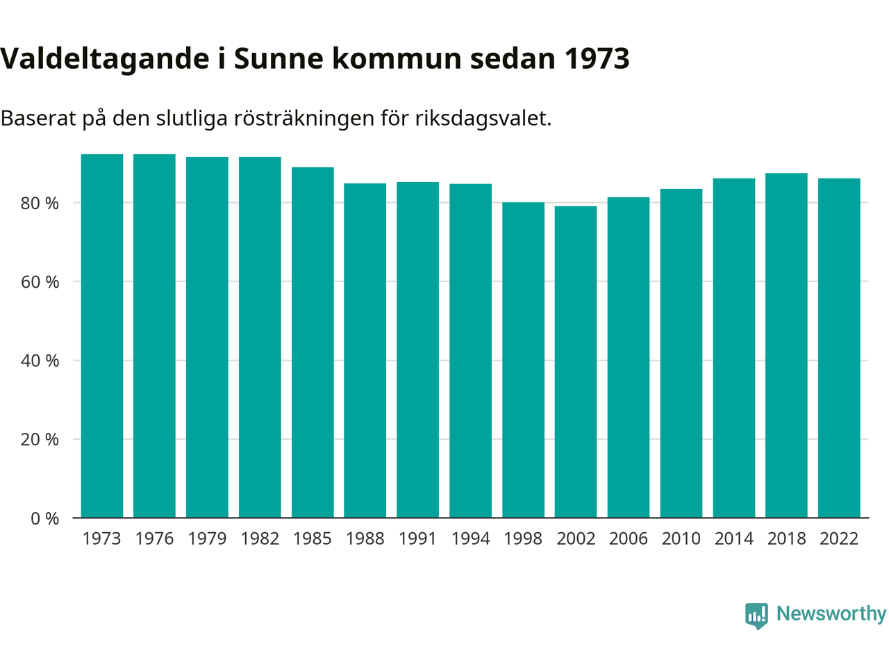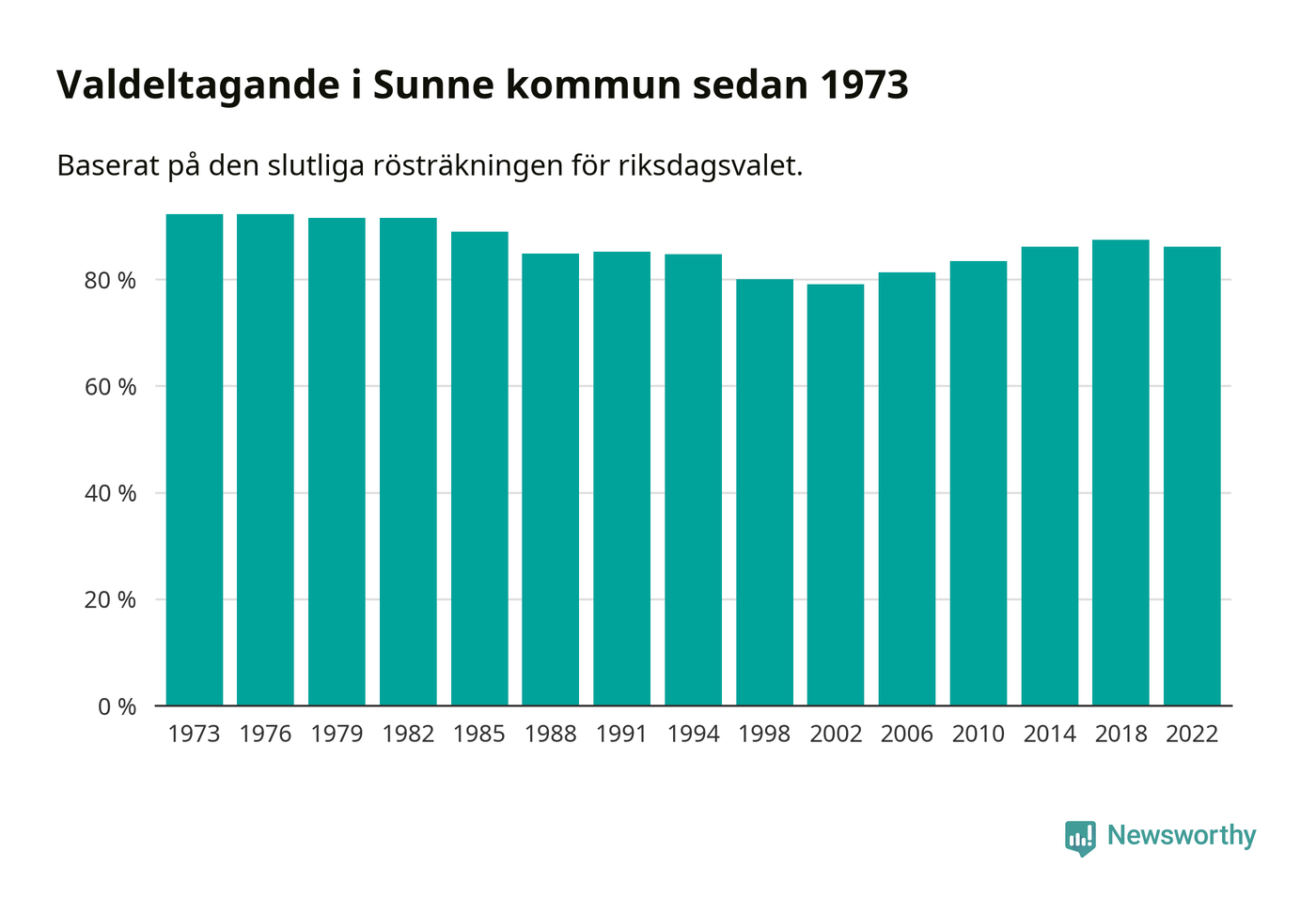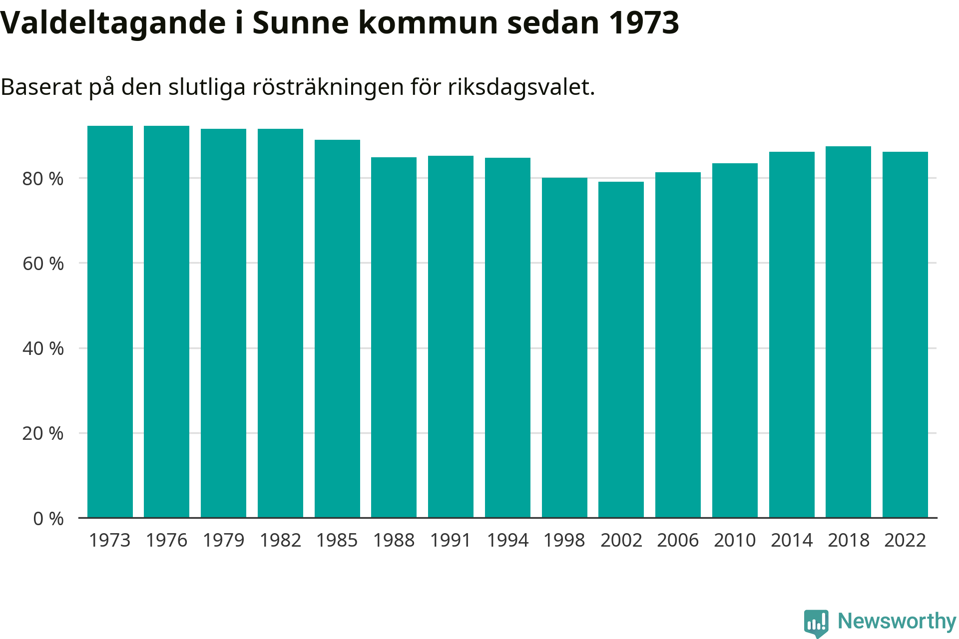 Sunne tillhör Värmlands läns valkrets. Där var valdeltagandet förra valet 85,2 procent. I hela riket landade valdeltagandet 2022 på 84,21 procent, att jämföra med 87,18 procent 2018.