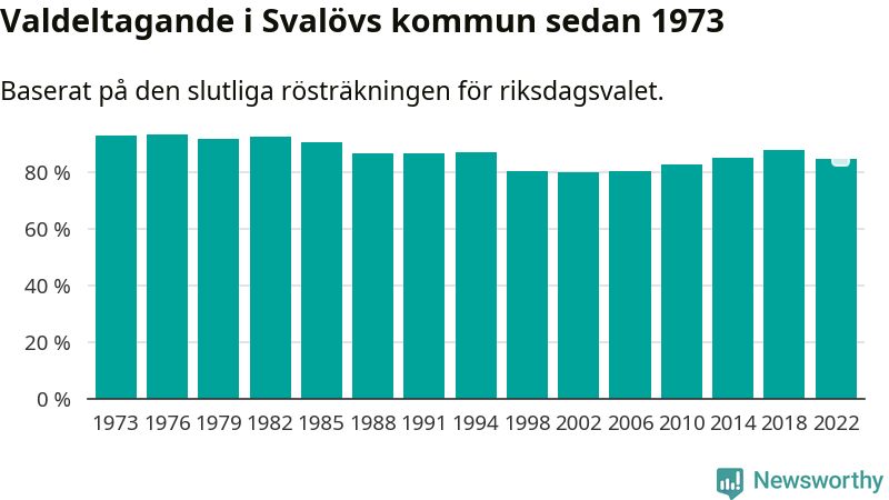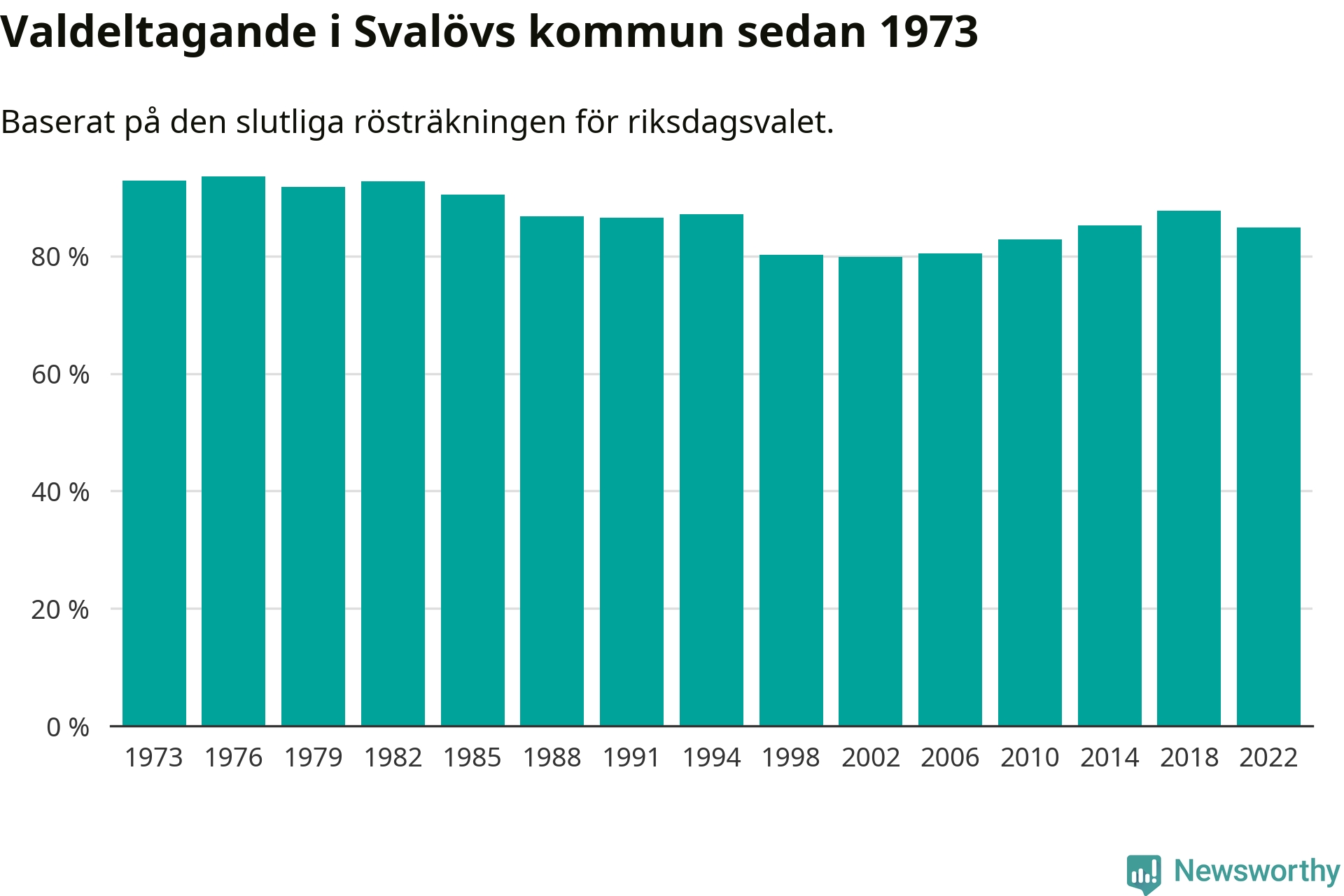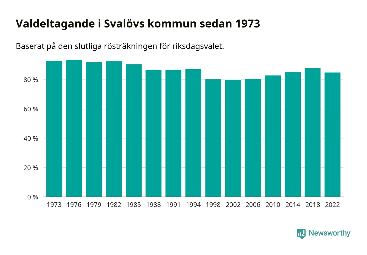 Svalöv tillhör Skåne läns västra valkrets. Där var valdeltagandet förra valet 81,9 procent. I hela riket landade valdeltagandet 2022 på 84,21 procent, att jämföra med 87,18 procent 2018.
