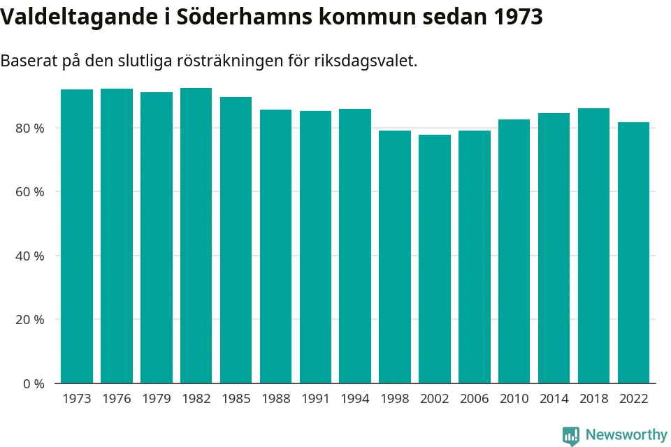 Söderhamn tillhör Gävleborgs läns valkrets. Där var valdeltagandet förra valet 83,5 procent. I hela riket landade valdeltagandet 2022 på 84,21 procent, att jämföra med 87,18 procent 2018.